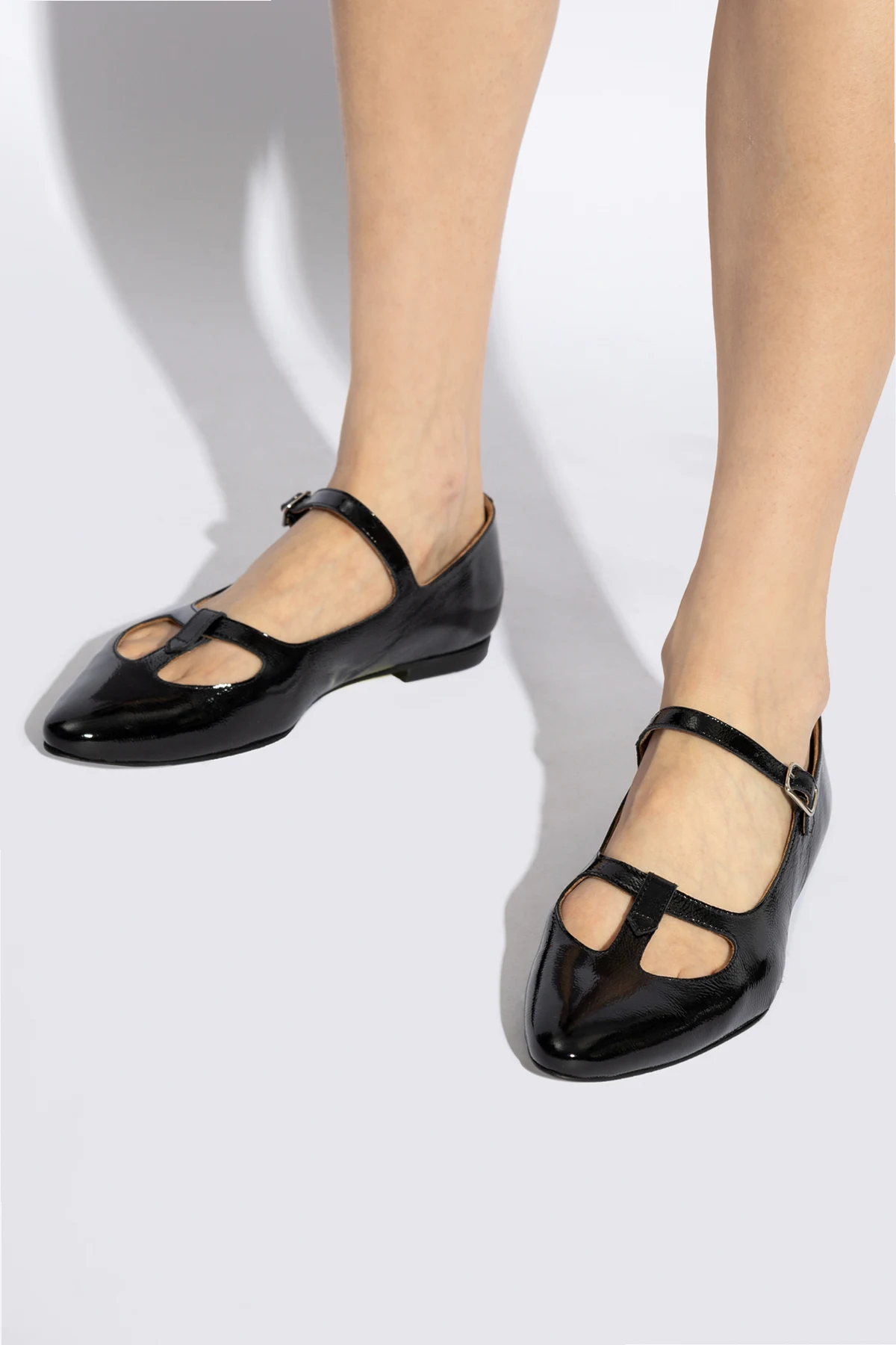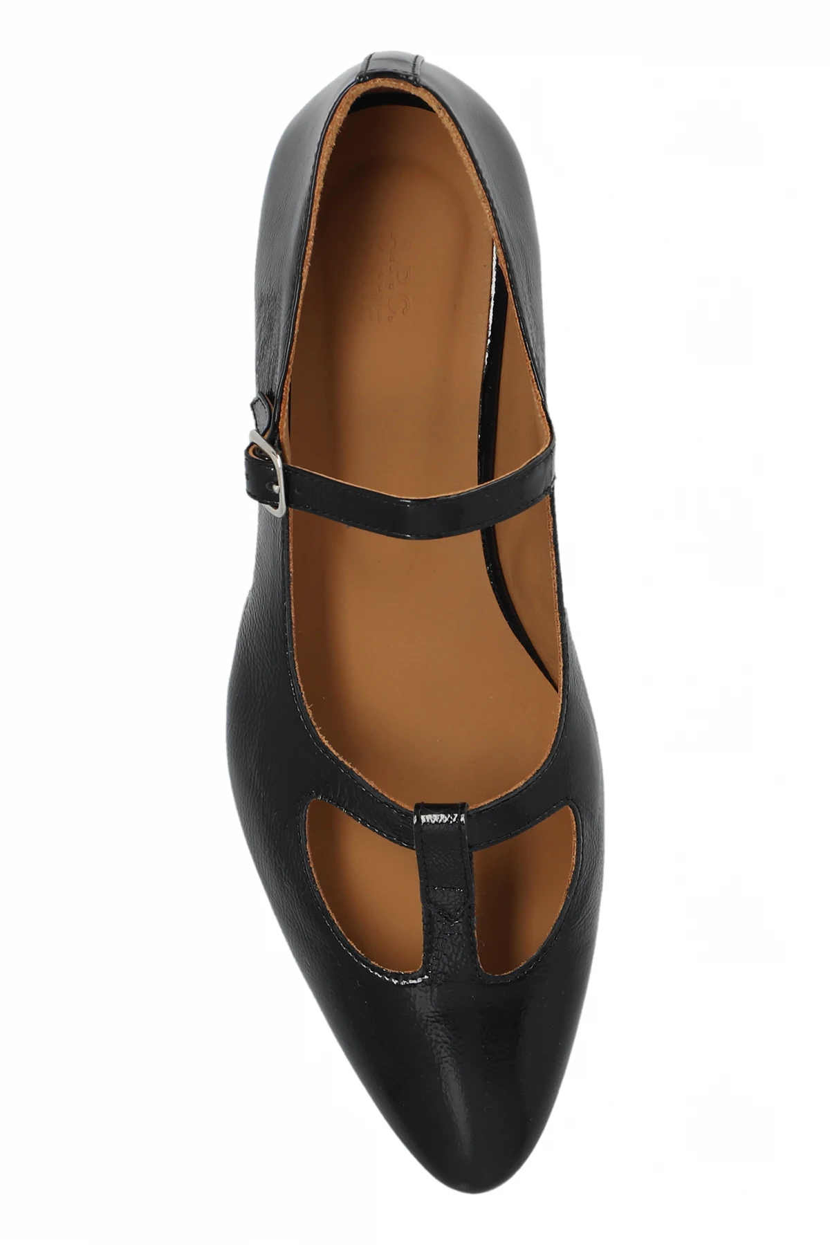 Introducing the Katie Flats by A.P.C., an embodiment of minimalist elegance and refined taste. Crafted with impeccable precision, these ballet flats boast a sleek black leather exterior, complemented by a glossy, lacquered finish on the rounded toe, which adds a touch of sophistication to their classic silhouette. The distinctive mid-foot strap, fastened with a subtle buckle on the side, enhances their unique charm and ensures a snug fit. The interior, lined with a smooth, light brown leather, contrasts beautifully with the shoe's outer elegance, promising unparalleled comfort and a luxurious feel against the skin. The slim, flat sole is designed to provide a graceful and grounded walking experience, making these flats a perfect choice for both formal and casual occasions. Devoid of any overt branding, the Katie Flats speak volumes through their quality and design, making them a must-have in any discerning wardrobe. Their versatile style and color make them an ideal complement to a myriad of outfits, elevating any ensemble with an air of understated sophistication. Why Purchase the Katie Flats? Elegant design with a glossy lacquered finish for a refined look. High-quality black leather construction ensures durability and class. Comfortable fit with a smooth, light brown interior leather lining. Versatile and timeless, perfect for both formal occasions and everyday wear. Exquisite craftsmanship from the renowned designer A.P.C., known for exclusive collections.