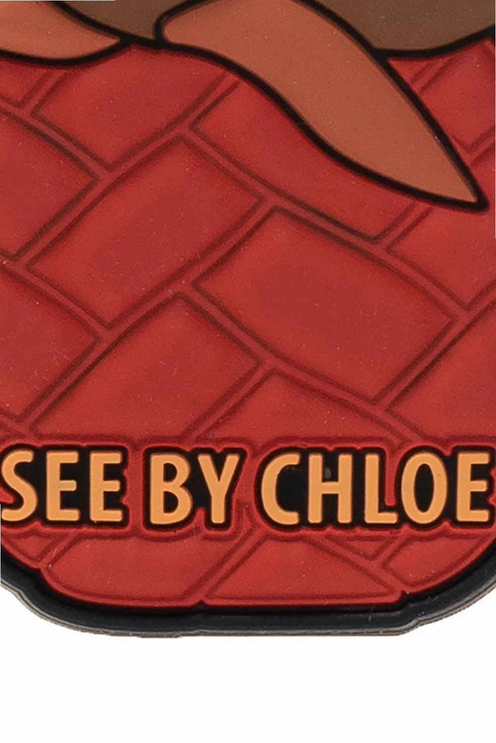 Red, pink and black phone holder with a pineapple motif and logo from See by Chloé.