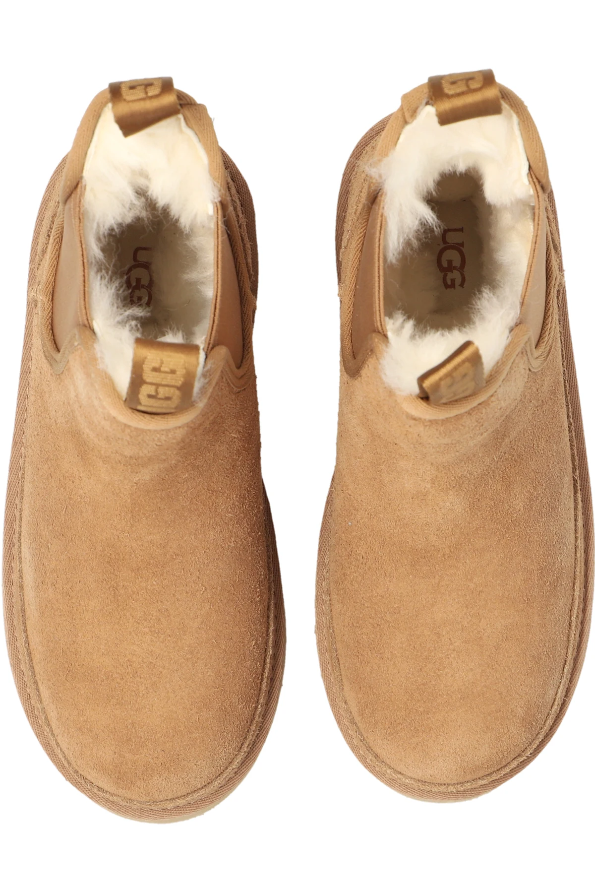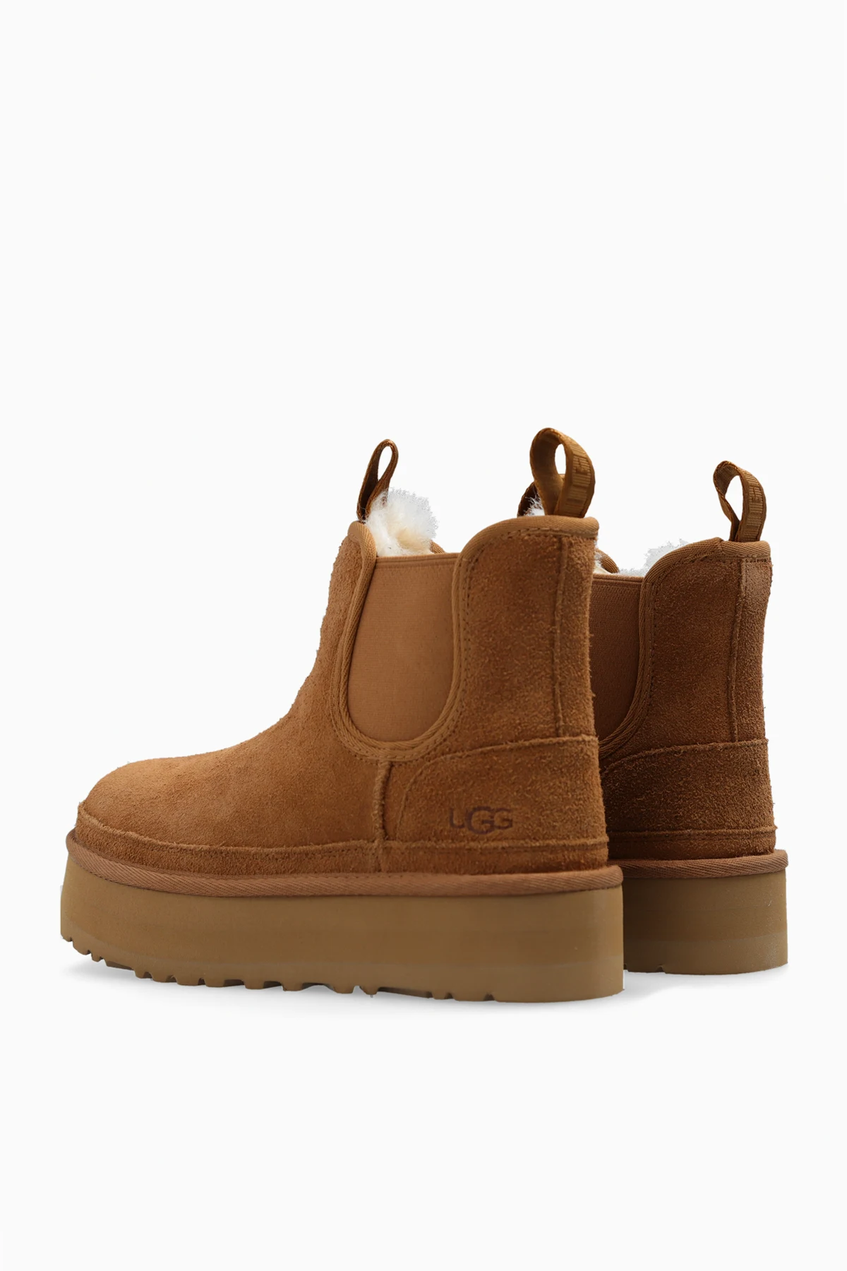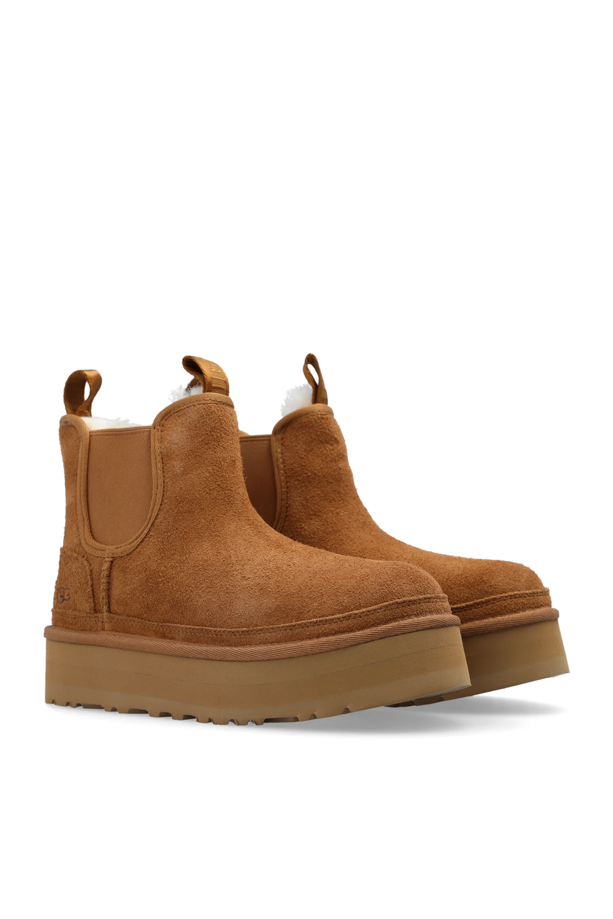 Beige ‘Neumel’ platform Chelsea boots from UGG. Made of suede and lined with UGGplush™, this model features an EVA midsole and outsole, elastic panels on the sides and an embossed logo.