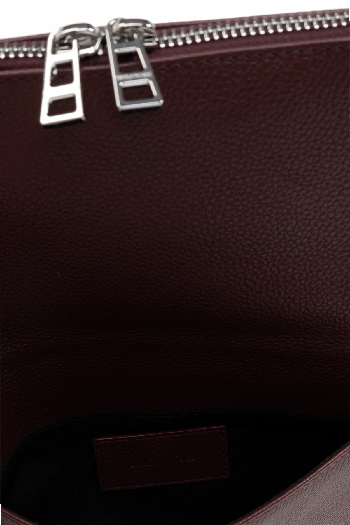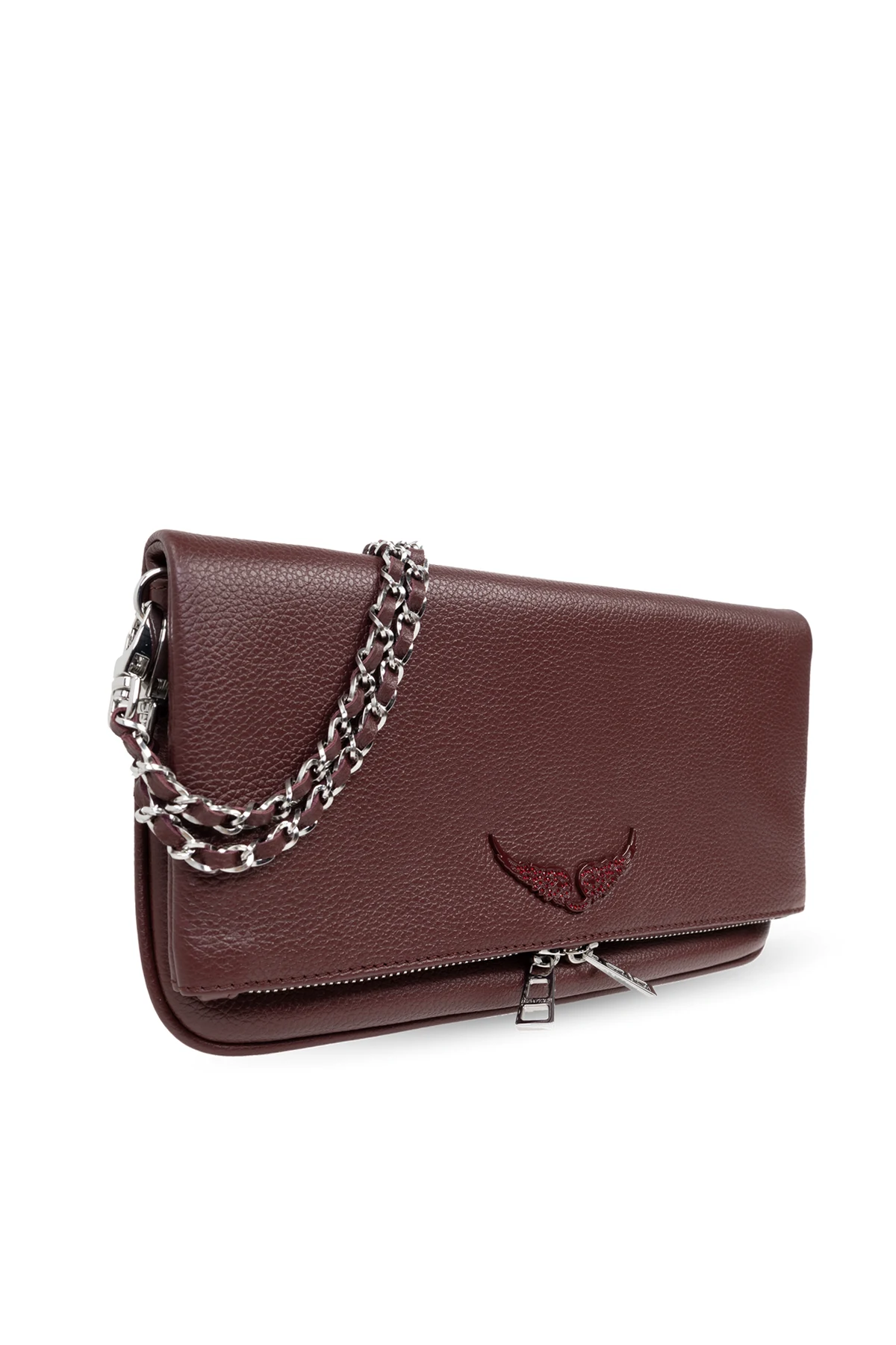 Introducing the `Rock` Shoulder Bag by Zadig & Voltaire, a quintessential expression of refined taste and functional luxury. This exquisite piece, presented in a deep, captivating burgundy, is meticulously crafted from premium grain leather, ensuring both durability and a luxuriously tactile experience. The `Rock` bag boasts a rectangular silhouette with gently rounded edges, encapsulating modern elegance. The front panel is adorned with a distinctive wing-shaped embellishment, set with burgundy stones and framed by metallic edges, likely silver or chrome, adding a touch of sophistication and serving as the hallmark of the designer's flair. The bag's allure is further enhanced by a silver chain shoulder strap, blending functionality with a dash of opulence. Functionality meets finesse with the bag's metal clasp closure, harmonizing with the chain and decorative elements, while the rear features a smooth exterior with a horizontal zippered compartment for additional storage. The interior reveals a meticulous attention to detail with its lining, two compartments, and two slip pockets, ensuring your essentials are both secure and easily accessible. Why Purchase This Product? Luxurious, high-quality grain leather construction for durability and elegance. Unique wing-shaped embellishment with burgundy stones for distinctive sophistication. Practical elegance with a silver chain strap and functional interior compartments. Discreet branding by Zadig & Voltaire inside, ensuring exclusivity and elegance.