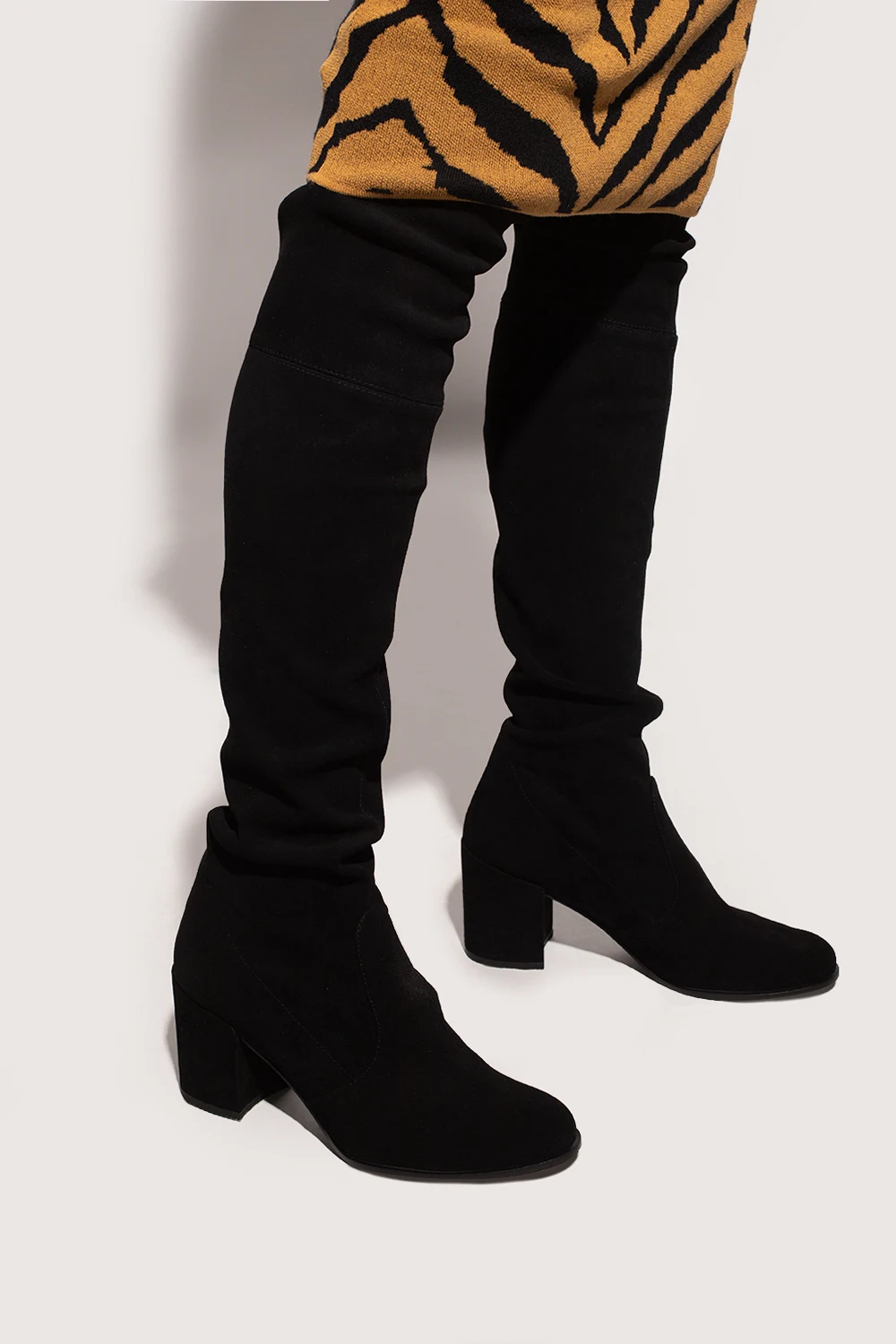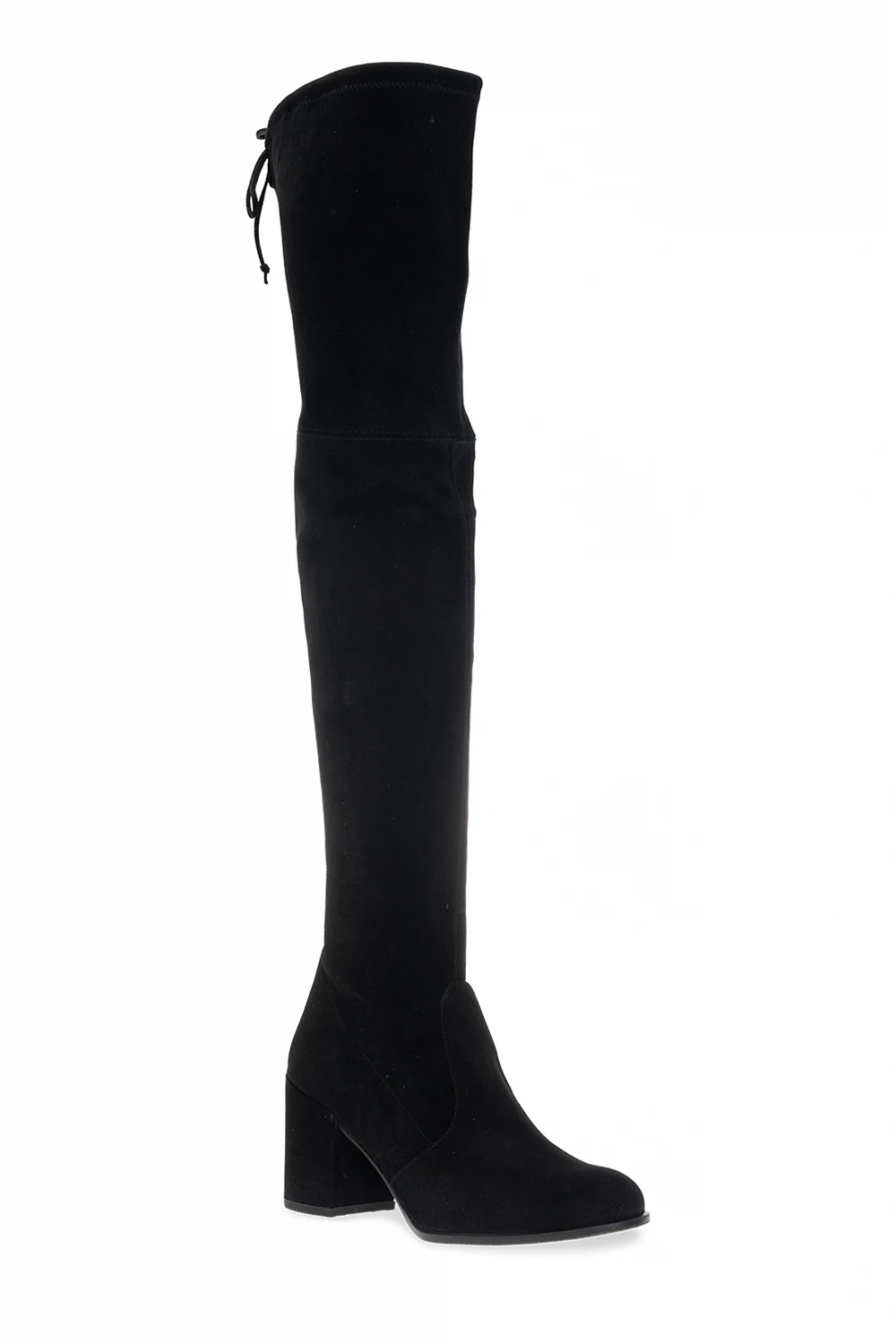 Black ‘Tieland’ over-the-knee boots from Stuart Weitzman. Crafted from leather, this model sits on a black rubber sole and features a drawstring closure at the hem.