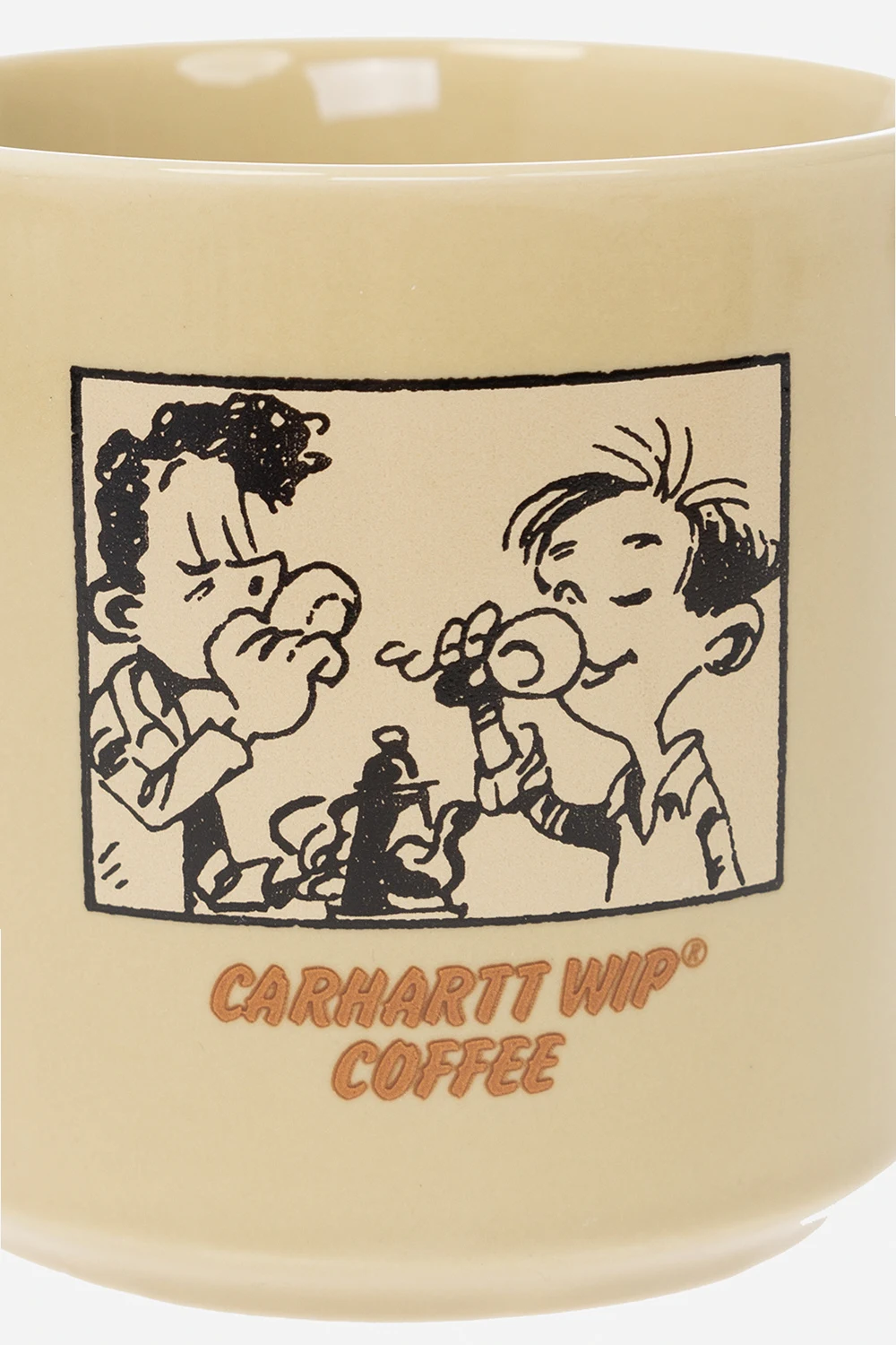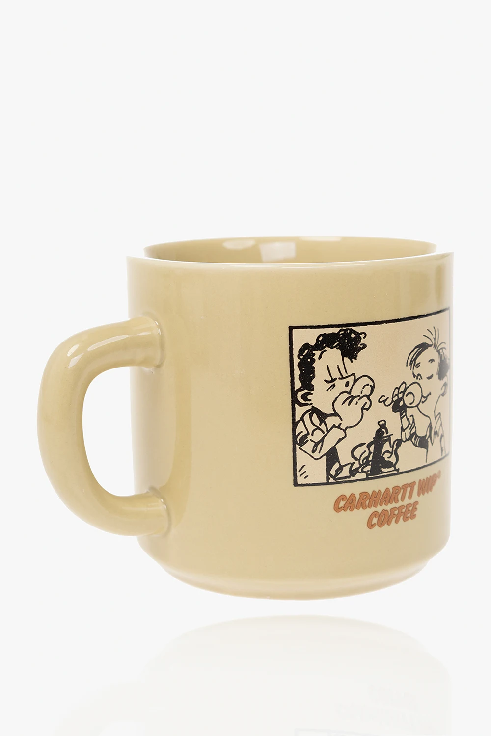 Yellowish beige mug from Carhartt WIP. Made of porcelain, this item is decorated with a multicolored pattern.