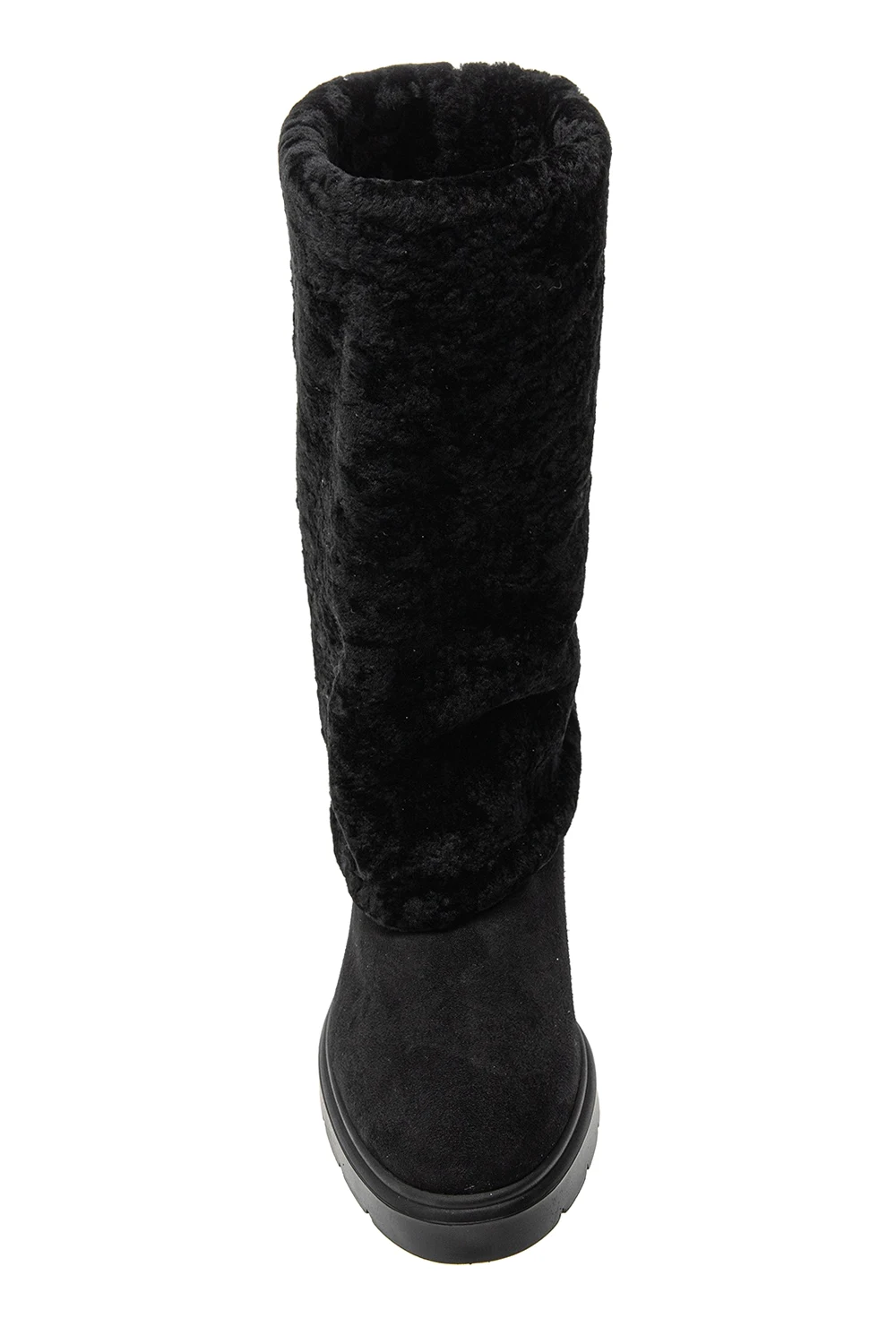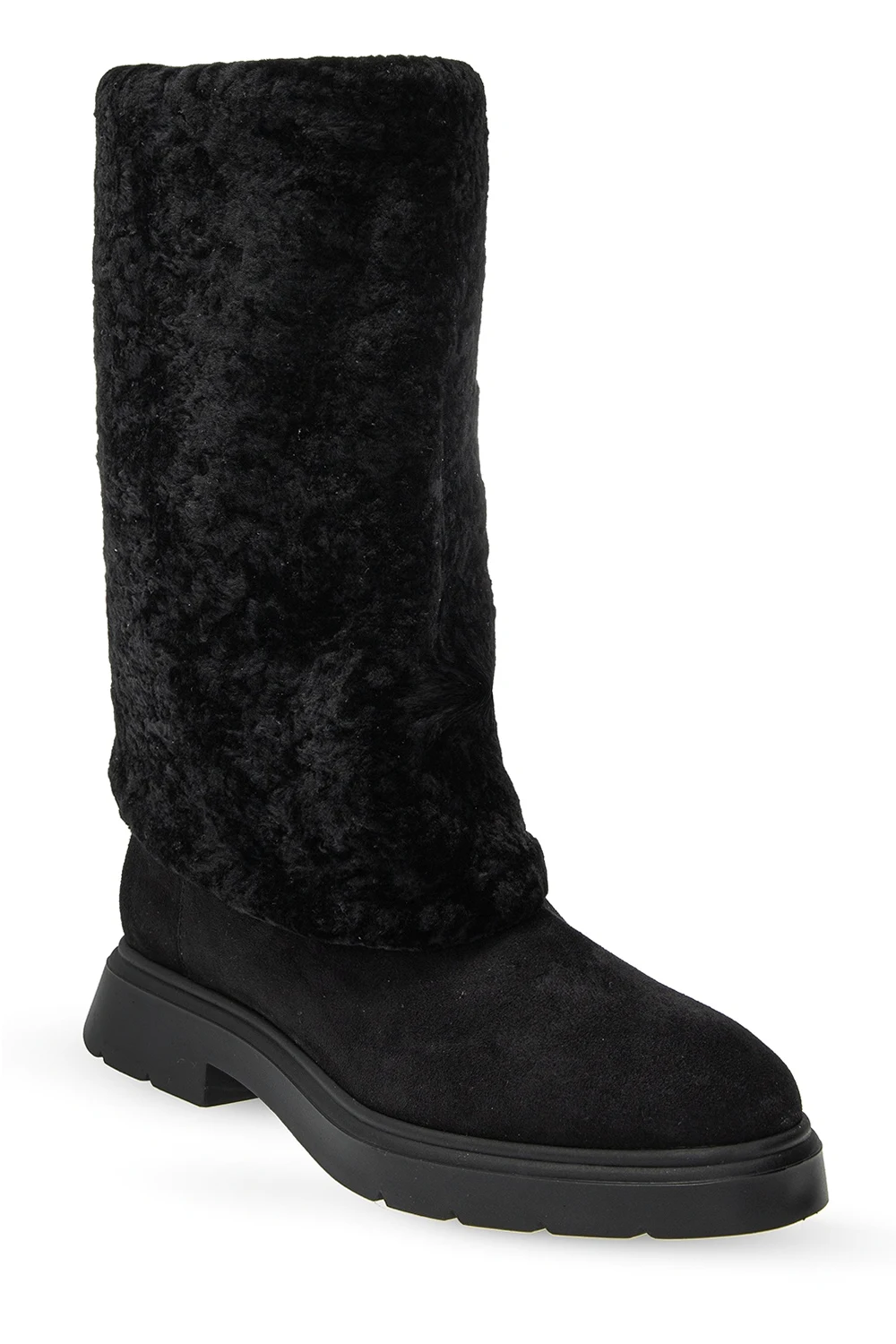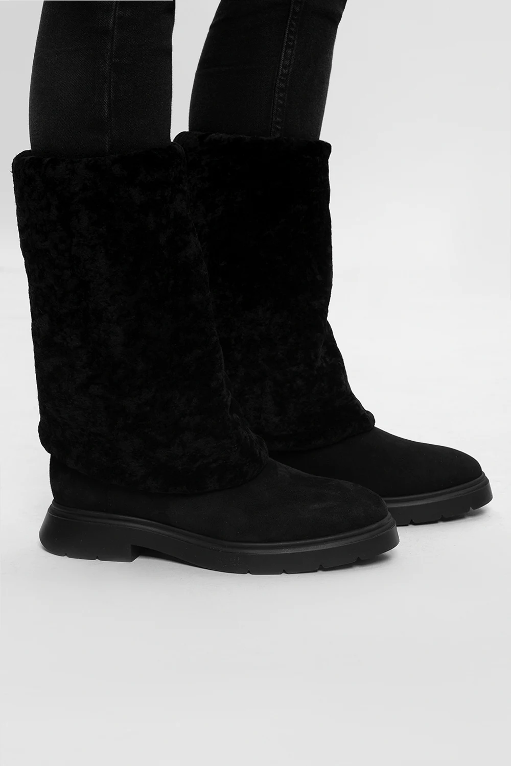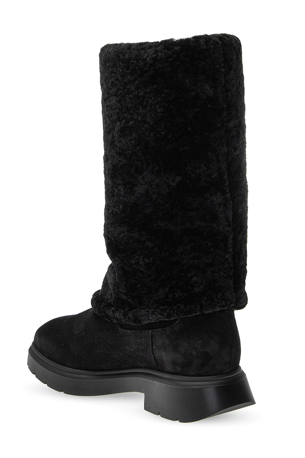 Black ‘Luiza Chill’ boots from Stuart Weitzman. Crafted from suede, this slip-on design is lined with lamb fur and set on a black rubber sole.