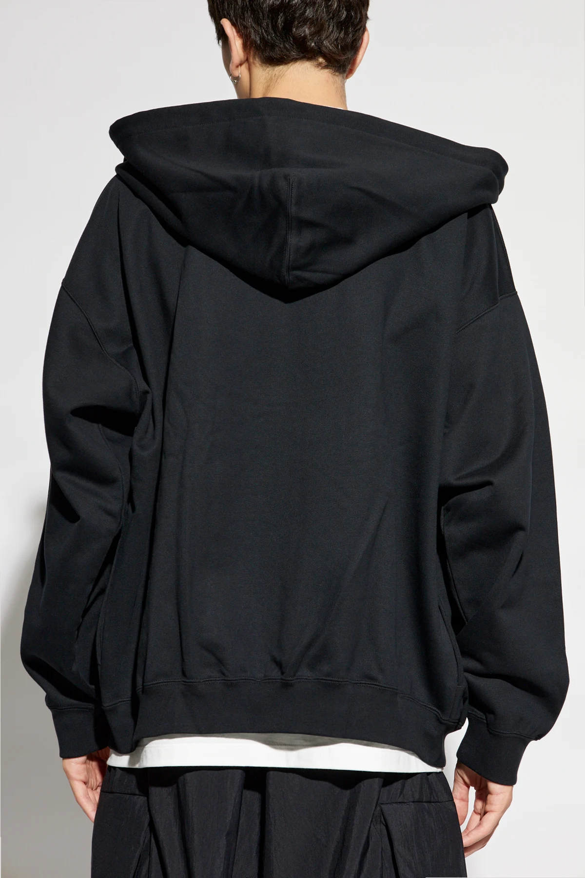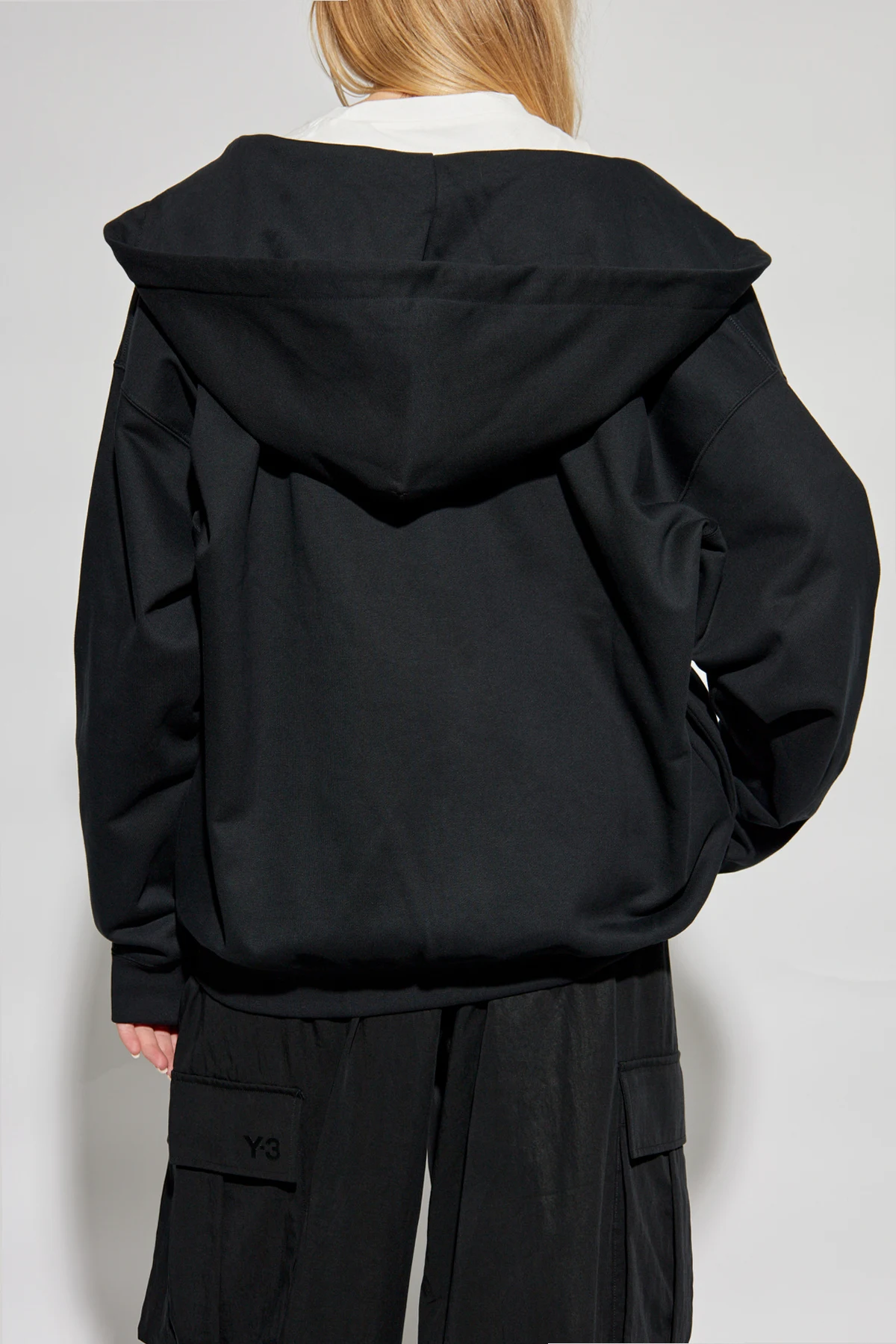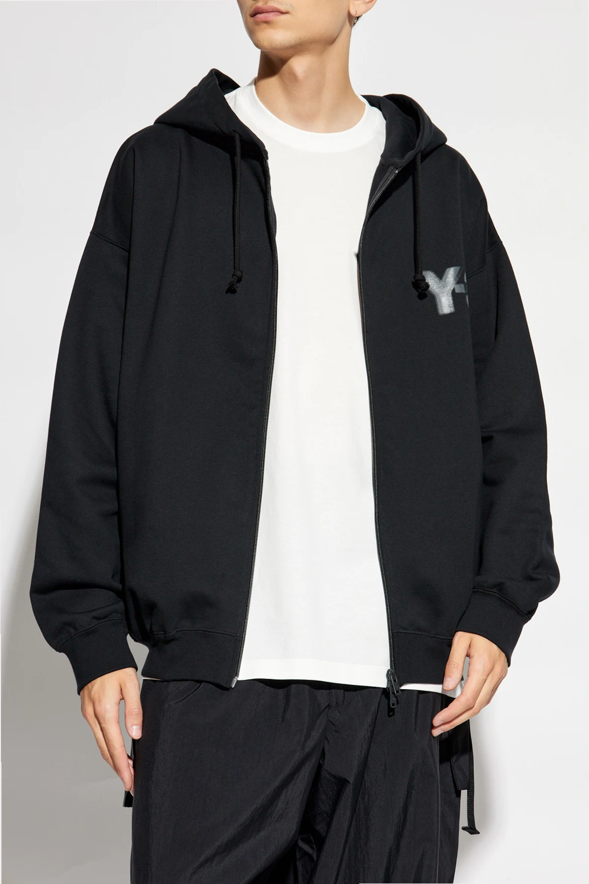 Experience the epitome of luxury with the exquisite Y-3 Yohji Yamamoto Zip-Up Hoodie. This masterpiece from renowned fashion brand Y-3 exudes sophistication and style, making it an essential addition to your wardrobe. Crafted from the finest quality cotton, this hoodie features a classic, relaxed fit with long sleeves. It boasts a full-length zipper, allowing for effortless wear and versatility. The large, adjustable hood with drawstrings adds an extra layer of comfort and style, perfect for any casual or upscale occasion. The distinctive "Y-3" logo prominently displayed on the left chest serves as a mark of authenticity and exclusivity. Additionally, the elegant black color of the hoodie ensures it remains a timeless and versatile piece in your collection. Why Choose This Product? High-Quality Material: Made from 100% premium cotton for ultimate comfort and durability. Designer Appeal: Features the iconic "Y-3" logo by Yohji Yamamoto, symbolizing high fashion and exclusivity. Functional Design: Includes a full-length zipper and two front pockets for added convenience. Comfortable Fit: Elastic cuffs and waistband ensure a snug and flattering fit. Versatile Style: The elegant black color and sleek design make it suitable for both sporty and refined looks.