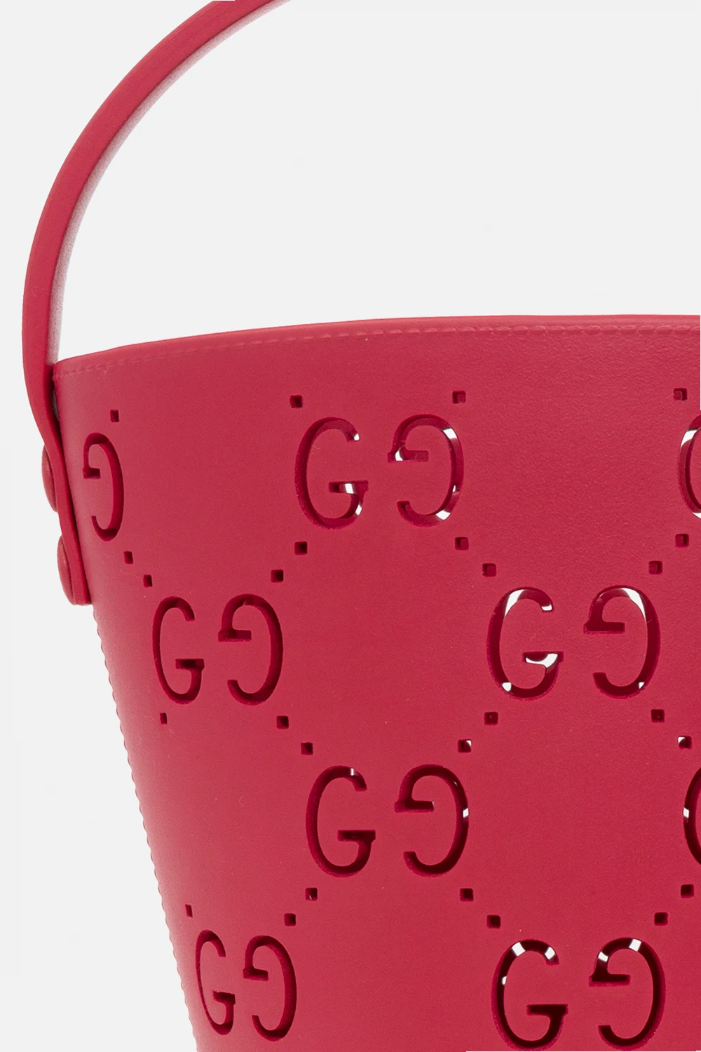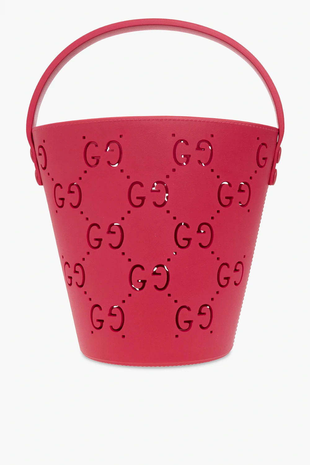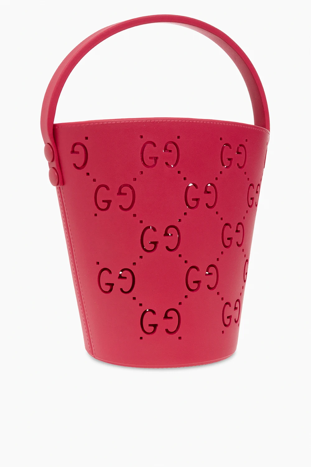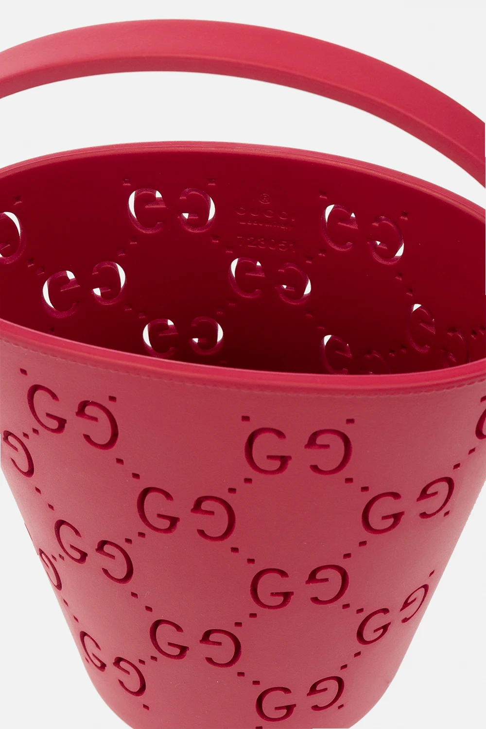 Dark pink handbag from Gucci Kids. Made of rubber, this model features a cut-out monogram pattern and half-round handle.