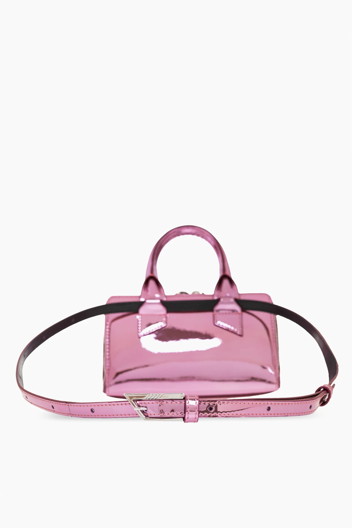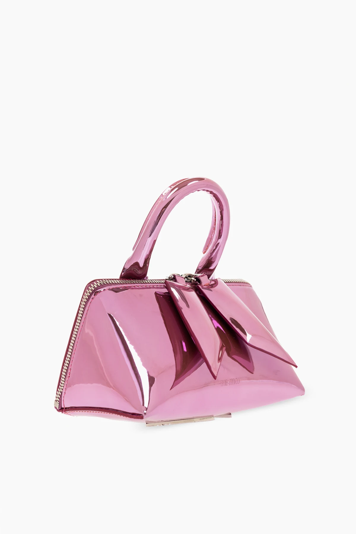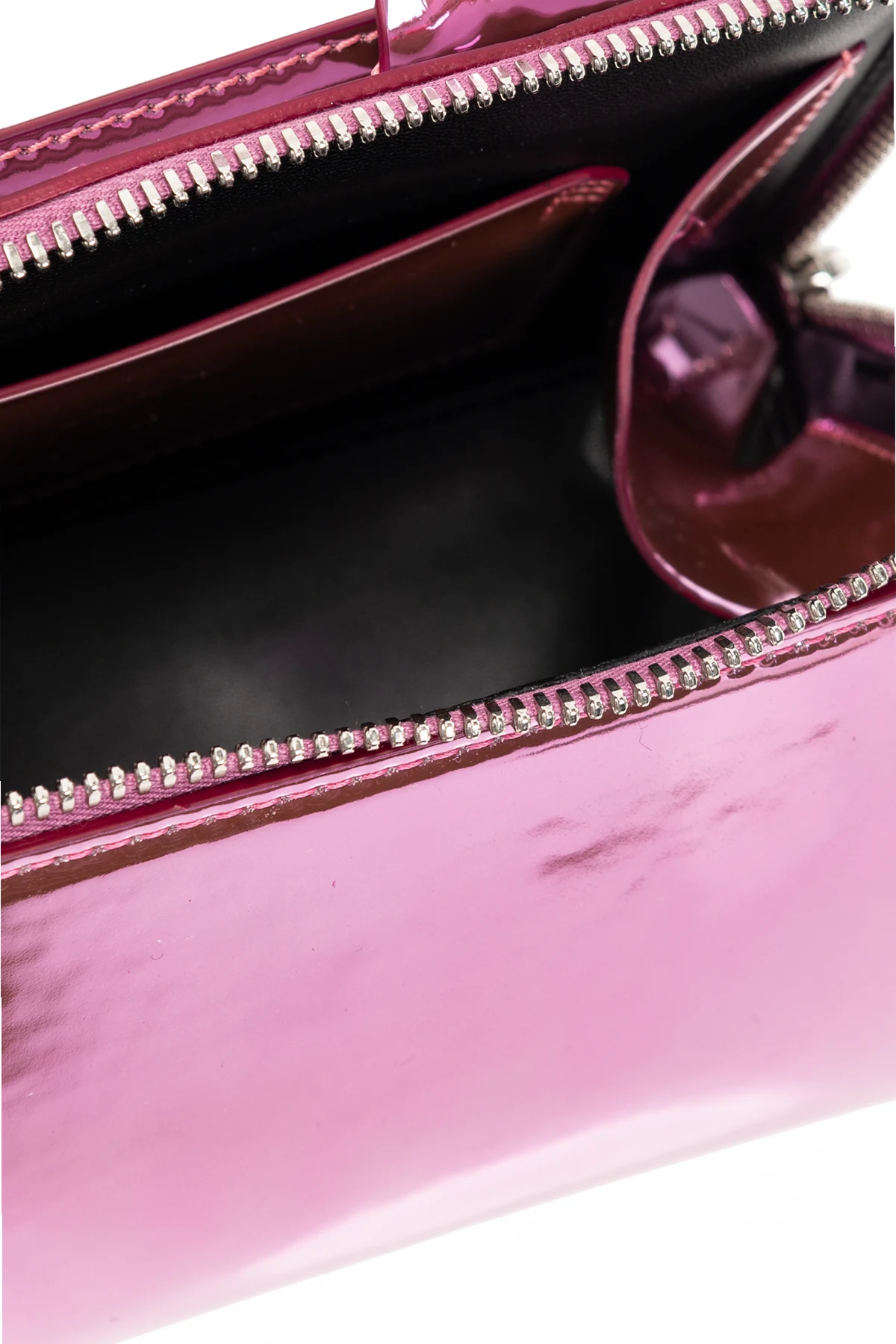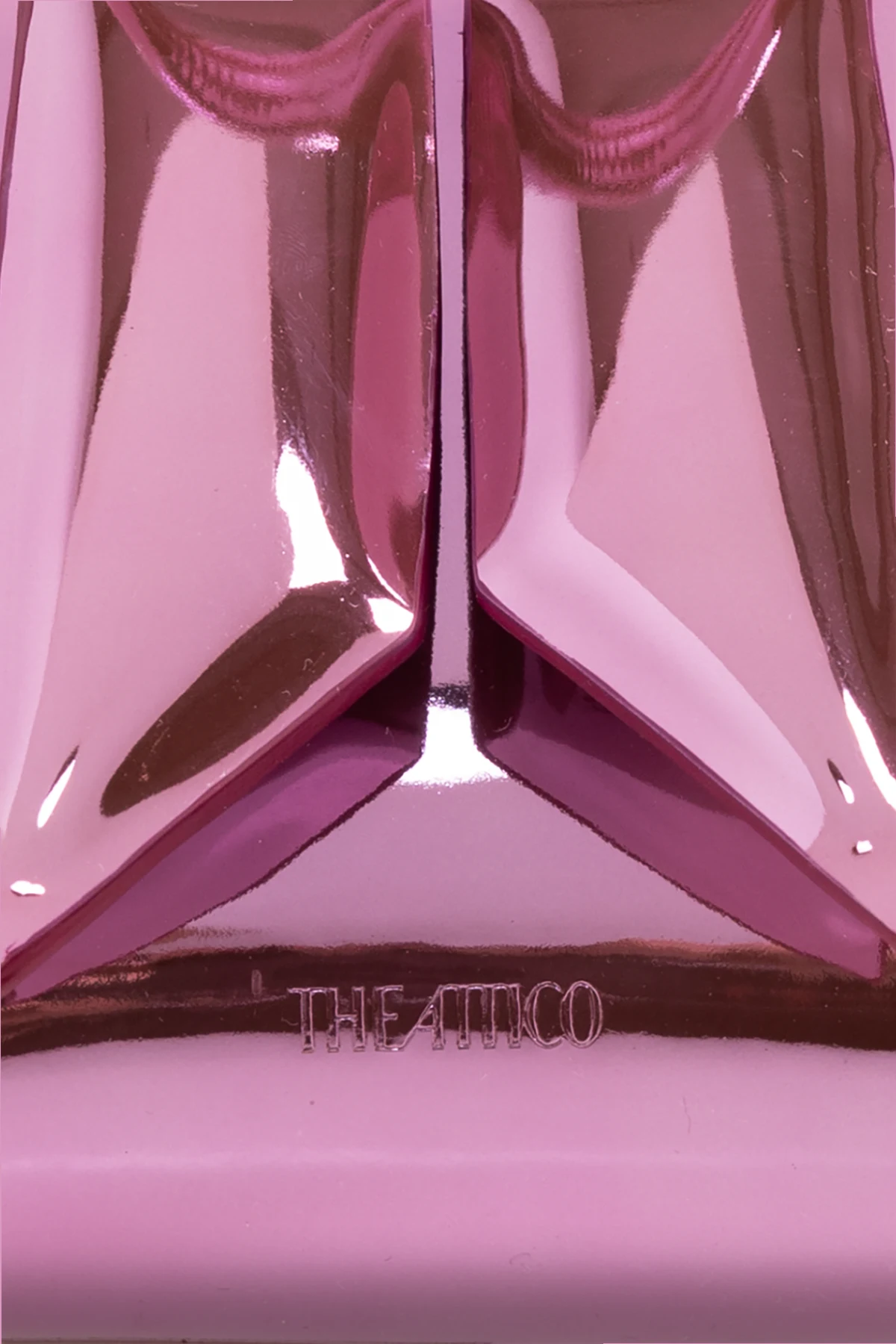 Introducing the "Friday" handbag by The Attico, a symbol of luxury and modern elegance. Crafted from 100% genuine leather, this exquisite piece boasts a shimmering pink hue with a lacquered finish that captures the essence of exclusive accessories. Its rectangular shape with slightly rounded sides presents a sleek and contemporary silhouette that is both sophisticated and versatile. Designed for adaptability, the "Friday" features two handles for hand-carrying and comes with detachable straps for those who prefer an over-the-shoulder look. Noteworthy are the large decorative zipper, intricate stitching along the edges, and contrasting pink trim that add a touch of glamour. The bag's clasp, adorned with sparkling zirconias, elevates its luxurious appeal, while the embossed "THE ATTICO" logo on the front panel signifies its esteemed origin. Why Purchase This Product? Exquisite Material: Made of 100% high-quality leather for durability and elegance. Unique Design: Its lacquered pink color and decorative elements offer a standout fashion statement. Versatility: Equipped with both handles and a detachable strap for multiple carrying options. Luxurious Details: Enhanced with a decorative zipper, zirconias, and the prestigious "THE ATTICO" branding.