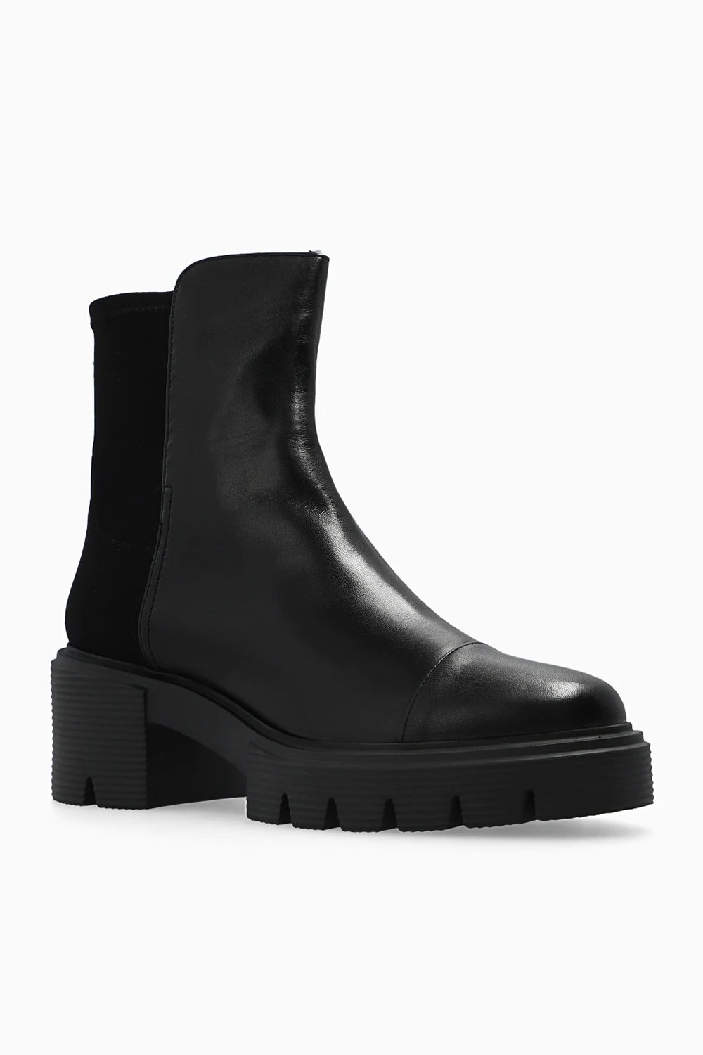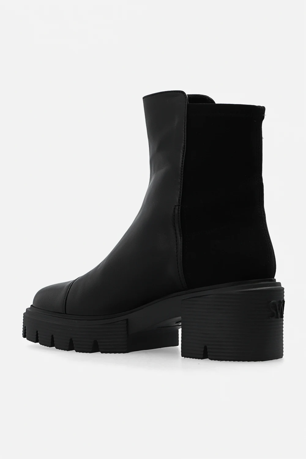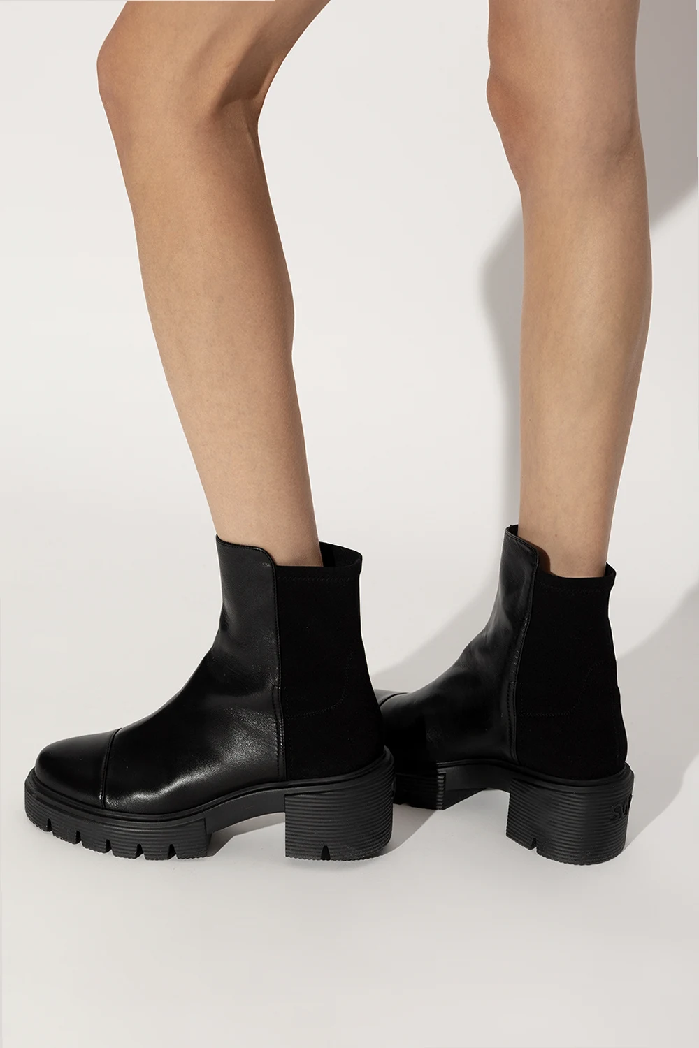 Black ‘5050 Soho’ heeled ankle boots from Stuart Weitzman. Crafted from leather and finished with elastic material at the back, this model features a round toe and a black rubber sole accentuated with a tactile logo.