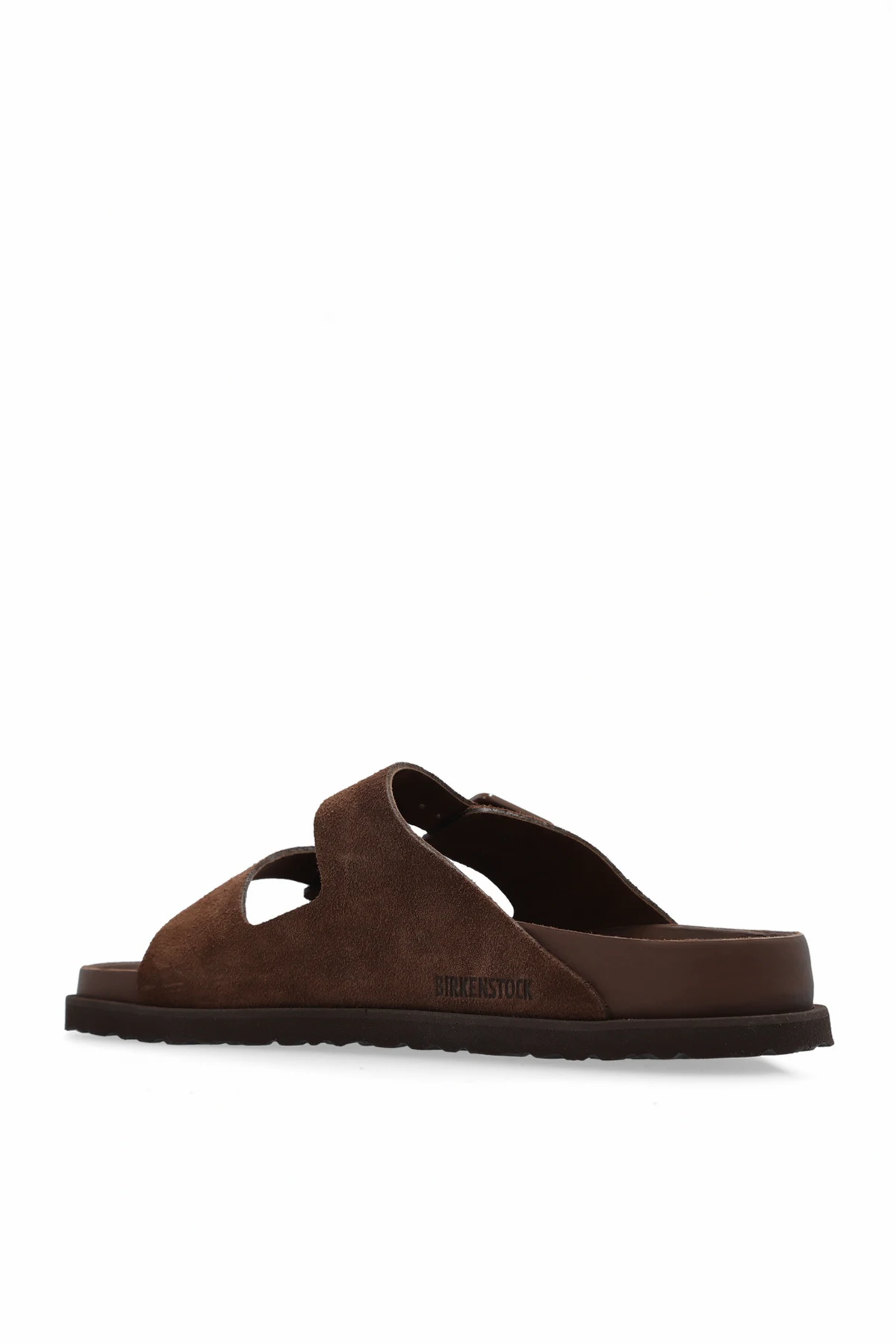 Introducing the 'Arizona Avantgarde' slides, a distinguished piece from the esteemed Birkenstock 1774 collection, designed with the modern man in mind. Crafted with a keen eye for detail, these slides boast a luxurious, suede upper in a rich, brown hue that gracefully transitions from a darker sole to a lighter, more supple texture. The dual adjustable straps, each fastened with a buckle, offer a bespoke fit, melding comfort with unmatched style. The sole is a meticulous blend of natural cork and EVA foam, ensuring both grip and ease with every step. The interior of these slides is lined with leather, promising durability and a gentle caress against the skin. Notably, the embossed details inside the strap not only signify authenticity but also serve as a testament to the meticulous craftsmanship that defines the Birkenstock legacy. Why Purchase the 'Arizona Avantgarde' Slides? Exquisite Material: Superior suede and leather construction offers both luxury and longevity. Adjustable Comfort: Dual straps with buckle closures allow for a tailored fit to your foot. Elegant Design: The nuanced brown palette and refined texture elevate any ensemble. Premium Craftsmanship: Embossed details and a blend of natural cork and EVA foam in the sole showcase the Birkenstock commitment to quality.
