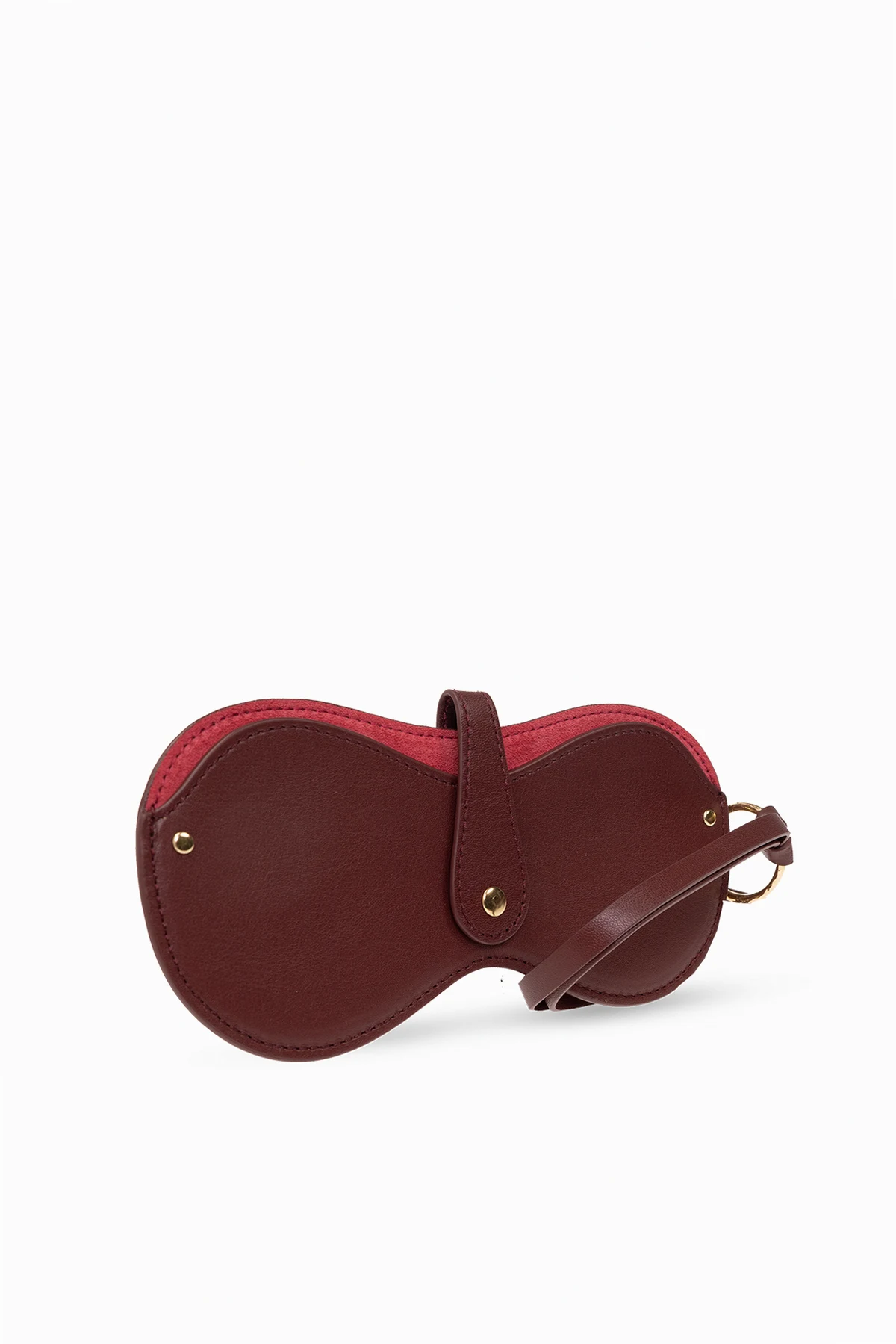 Maroon and pink ‘Alvie’ sunglasses case from Ulla Johnson. Made of leather and suede, this item features a snap fastening and embossed logo at the back. Comes with a strap with a metal keyring in gold-tone.