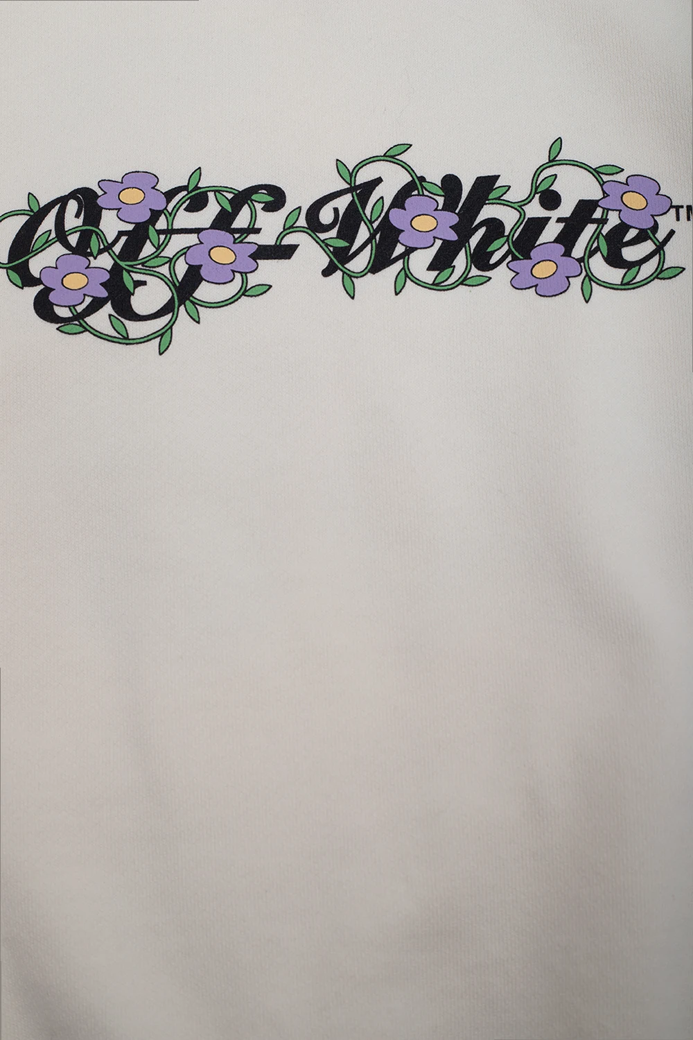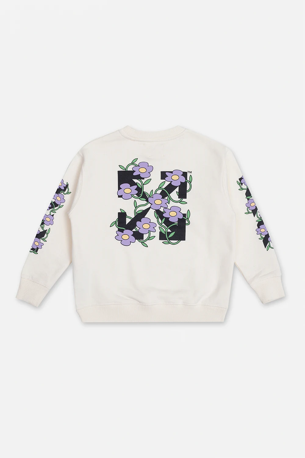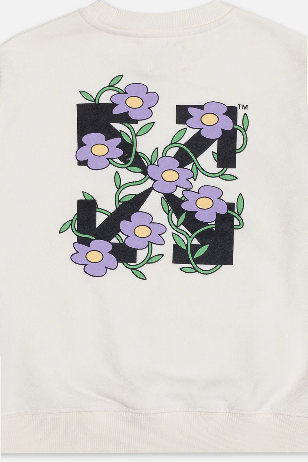 Cream crewneck sweatshirt from Off-White Kids. Crafted from cotton, this style features a colourful graphic print with a floral motif and the brand's logo and ribbed trims on the bottom hem and long sleeves.
