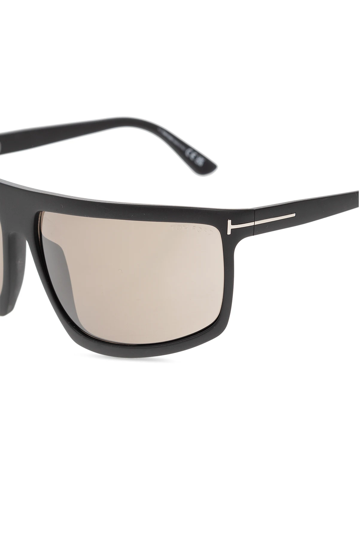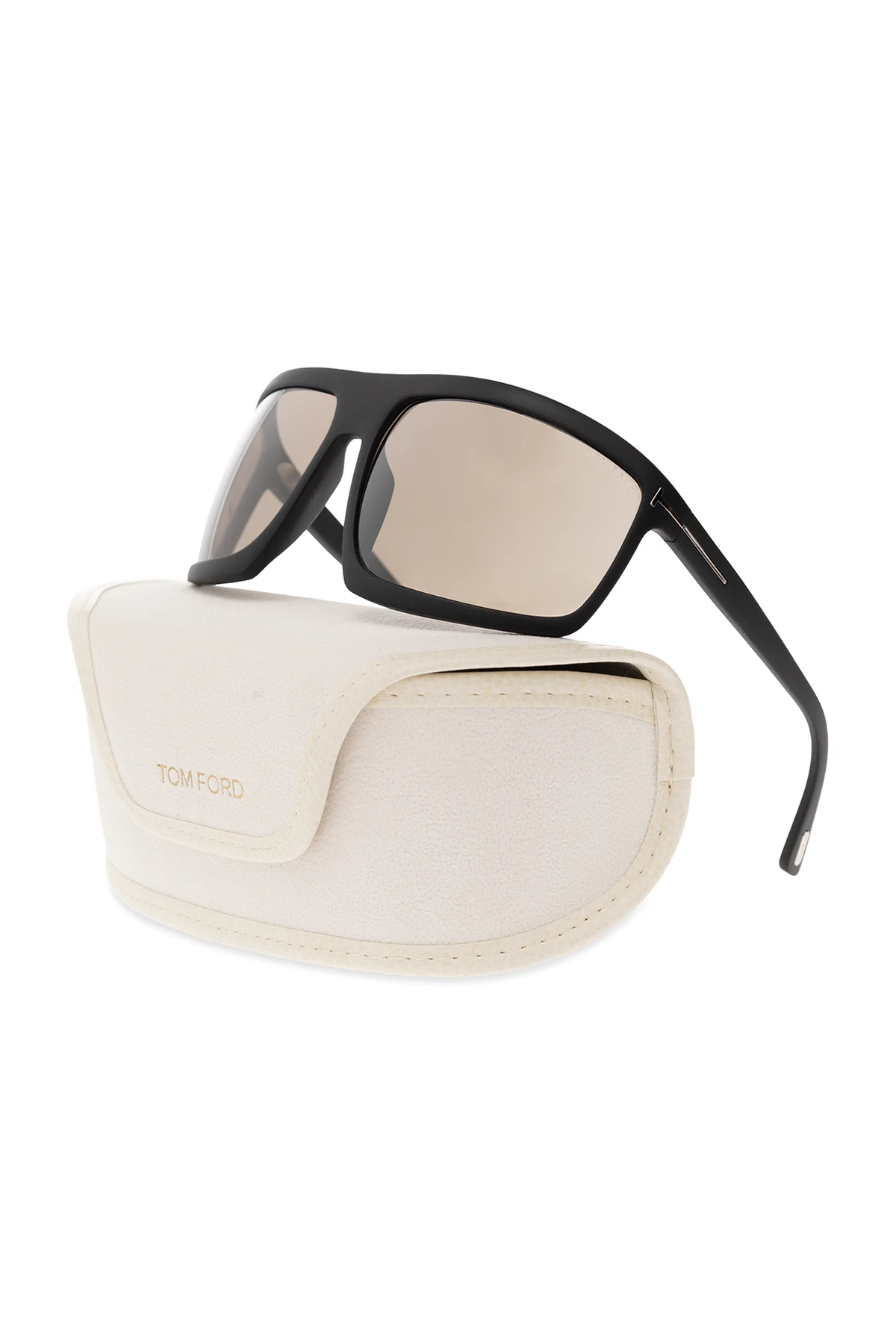 Black ‘Clint’ sunglasses from Tom Ford. This matte model features silver-tone metal elements and the designer's logo on the temples and grey lenses with UV protection (cat. 2). Case included.