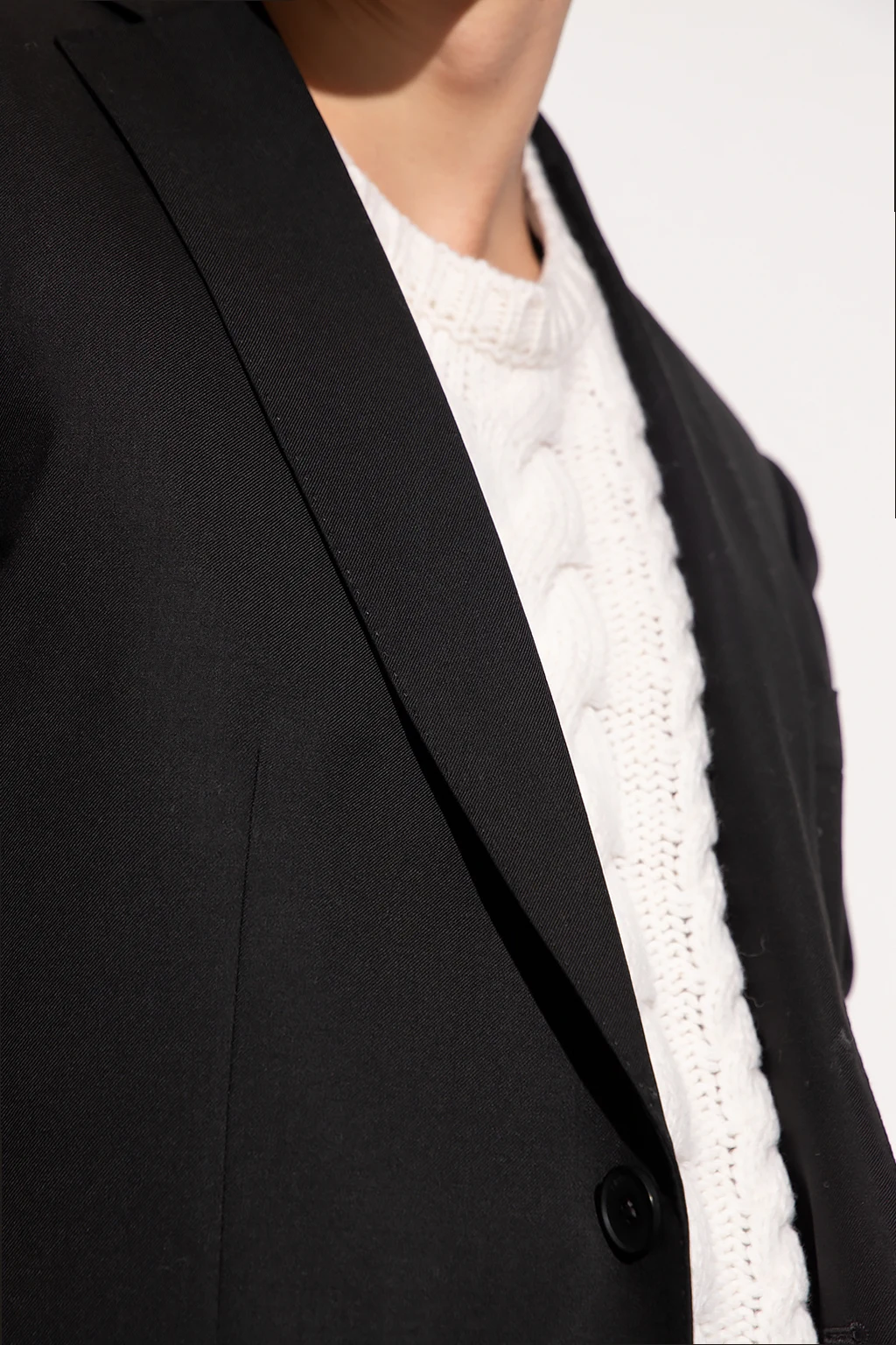 Black ‘Ulric’ single-breasted blazer from Iro. Made of wool, this design features button fastenings, notch lapels, two flap pockets, one slip pocket, single rear vent and long sleeves with buttoned cuffs.