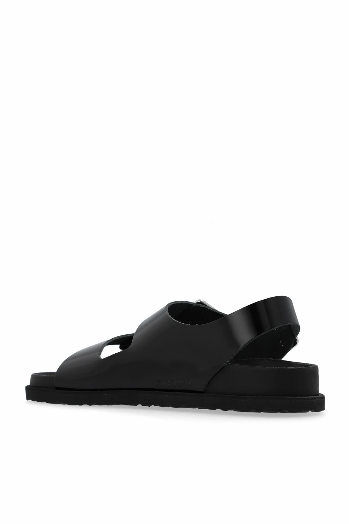 Introducing the ‘Milano Avantgarde’ sandals by Birkenstock 1774, a synthesis of minimalist elegance and unparalleled comfort. Crafted with precision, these sandals are a testament to the timeless appeal of black, ensuring versatility across your wardrobe. The dual-section design features adjustable straps with buckle fastenings, meticulously constructed from the finest leather, offering a bespoke fit that cradles your feet in luxury. The interior, also lined in supple leather, promises a seamless touch against the skin, while the sole, a blend of natural cork and EVA foam, provides exceptional grip and enduring wear. Marked by their sleek silhouette, the ‘Milano Avantgarde’ sandals exhibit a flat 2cm sole profile, marrying aesthetic grace with practicality. Their understated elegance is complemented by functional elements, such as the easy-to-adjust straps, making them a perfect choice for both casual and more formal ensembles. Why Purchase This Product? Versatile Design: Effortlessly pairs with any outfit, enhancing both casual and formal looks. Premium Materials: Exclusively crafted from high-quality leather and a durable natural cork and EVA sole. Adjustable Comfort: Features dual adjustable straps for a perfectly snug fit. Exquisite Craftsmanship: Represents the distinguished Birkenstock 1774 heritage of quality and style.