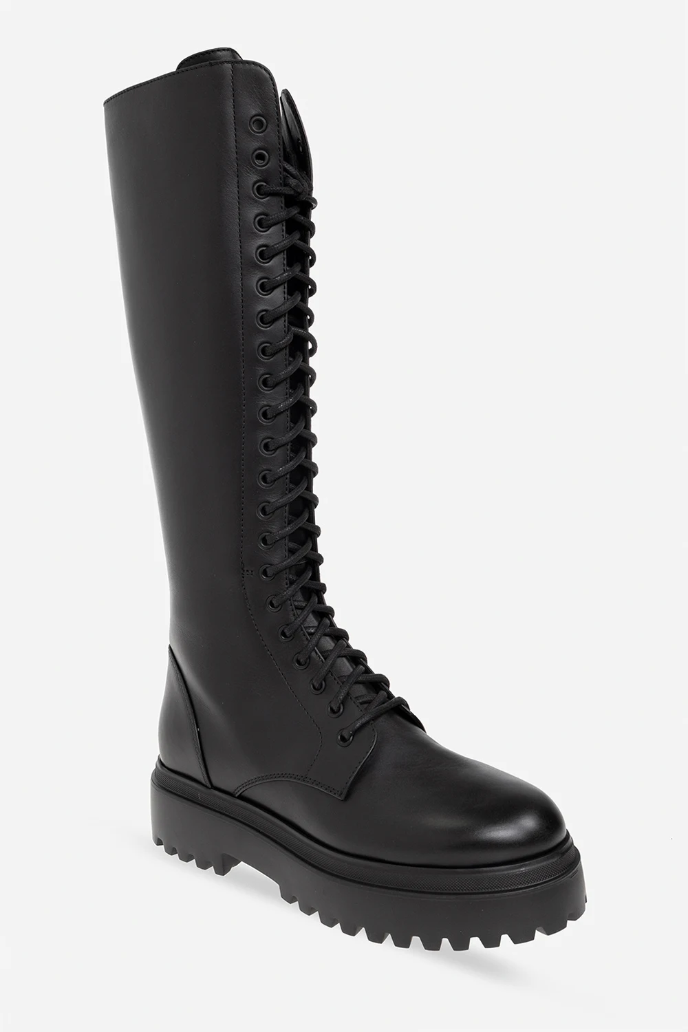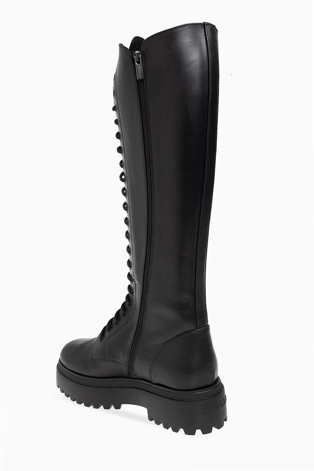 Black ‘Ranger’ knee-high boots from Le Silla. Crafted from calf leather, this lace-up model sits on a black rubber sole and features a side zip fastening.