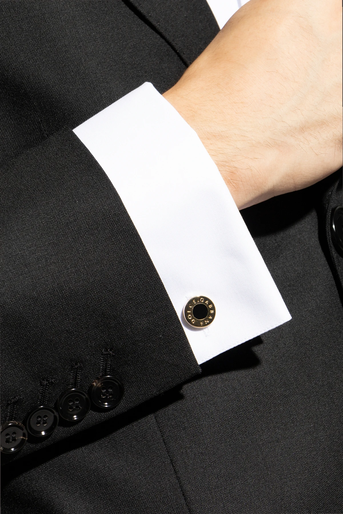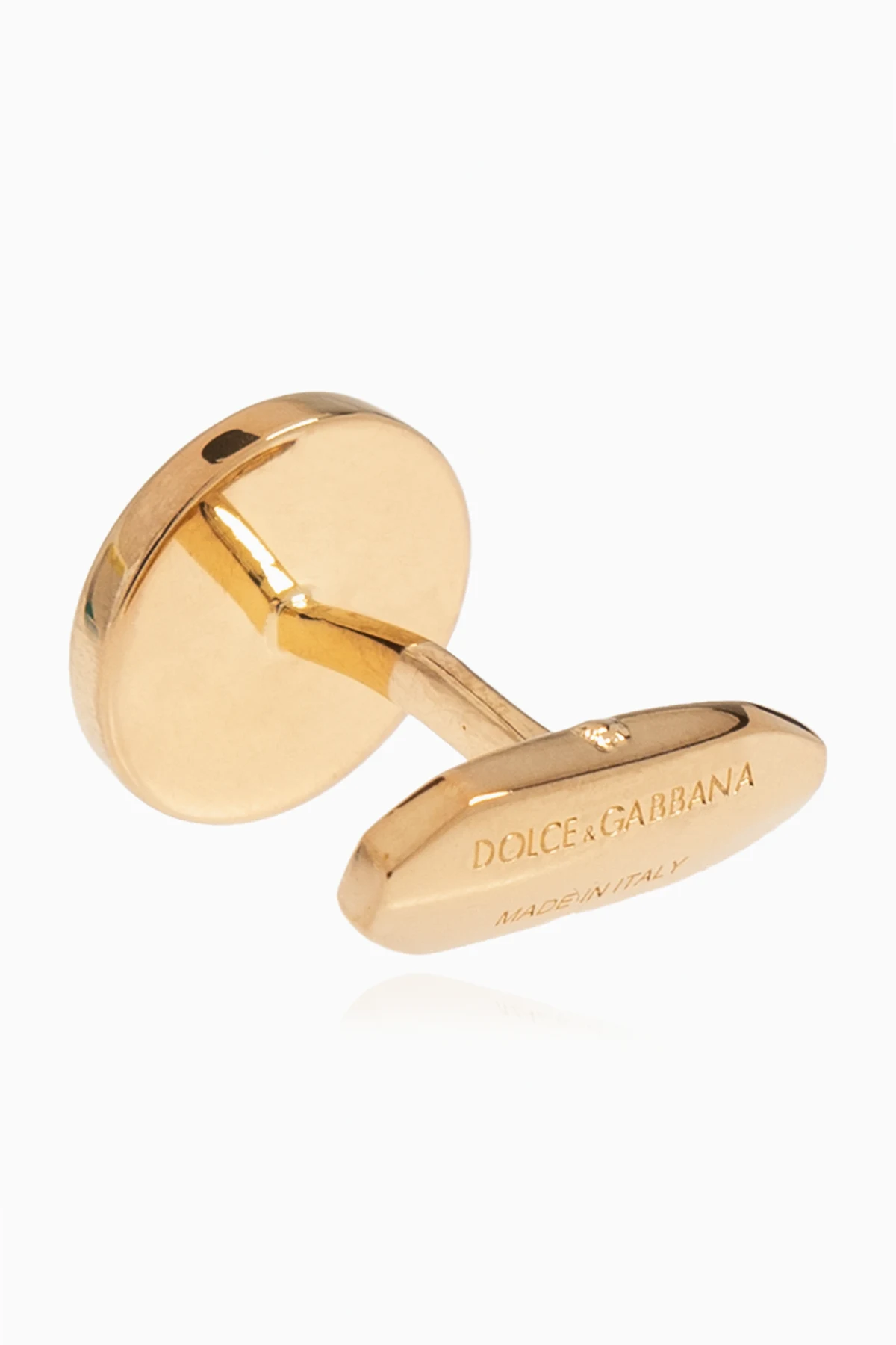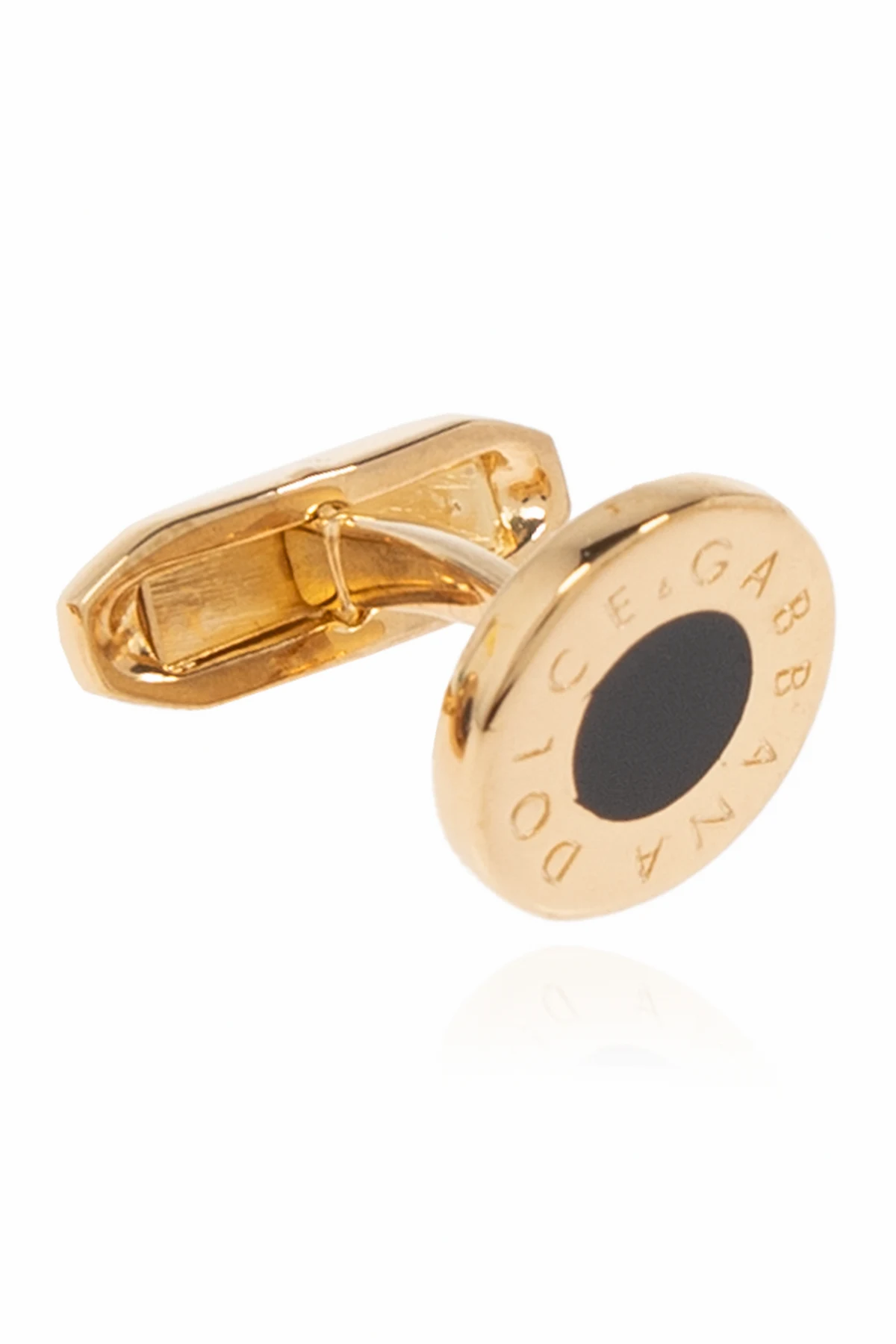 Experience the epitome of sophistication with these exclusive cufflinks by the renowned designer Dolce & Gabbana. A true testament to Italian craftsmanship, these cufflinks are a quintessential addition to any gentleman's collection. Featuring a round shape with a striking black circle at its center, these cufflinks are elegantly encased in a luxurious gold frame. The iconic "DOLCE & GABBANA" engraving encircles the black centerpiece, adding a touch of unmistakable prestige. Made from high-quality materials with a gold finish, these cufflinks are both durable and timeless. On the reverse side, the "DOLCE & GABBANA" engraving reaffirms the authenticity and exclusivity of this piece. The standard cufflink mechanism ensures easy attachment and a secure fit, making these an effortless yet elegant choice for any formal attire. Why Choose These Cufflinks? Timeless Design: The classic round shape and gold-black contrast exude elegance. Premium Materials: Crafted from high-quality brass with a gold finish for lasting durability. Iconic Branding: Features the distinguished "DOLCE & GABBANA" engraving. Secure Fit: Standard cufflink mechanism ensures ease of use and a secure hold.