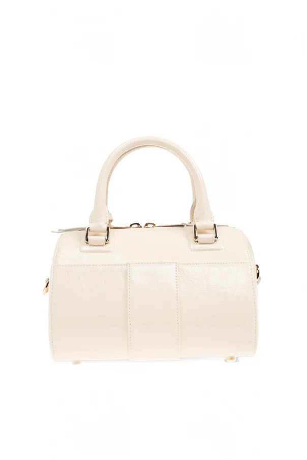 The juxtaposition of the brown leather handles and base imbues the bag with both elegance and durability. This versatile accessory features two short hand-held straps and an adjustable shoulder strap, offering both style and convenience. The interior, lined with pristine white fabric, enhances its airy and fresh allure, perfectly aligning with contemporary fashion sensibilities.