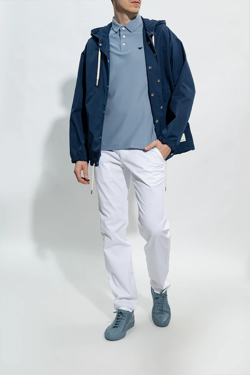 Blue ‘Original Achilles Low’ sneakers from Common Projects. Crafted from leather, this lace-up model sits on a blue rubber and showcases a signature gold-tone serial number stamped on the side.