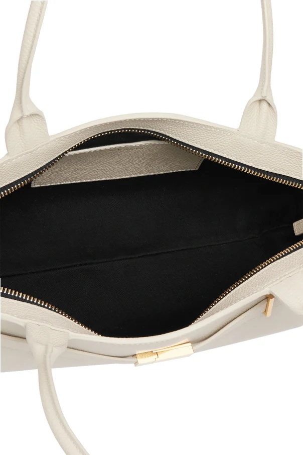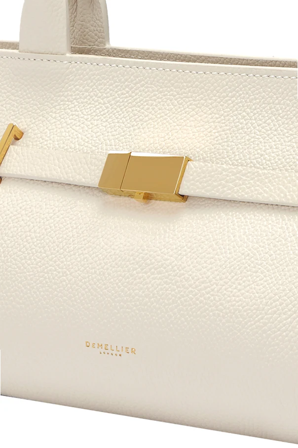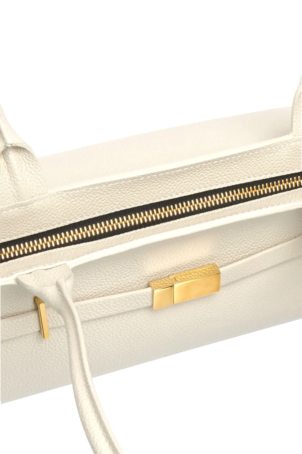 The minimalist exterior is punctuated by a bold, geometric gold-toned clasp, exuding understated glamour. The contrast of supple materials highlights meticulous craftsmanship, while the fully cotton-lined interior offers a luxurious touch, balancing style with everyday practicality.