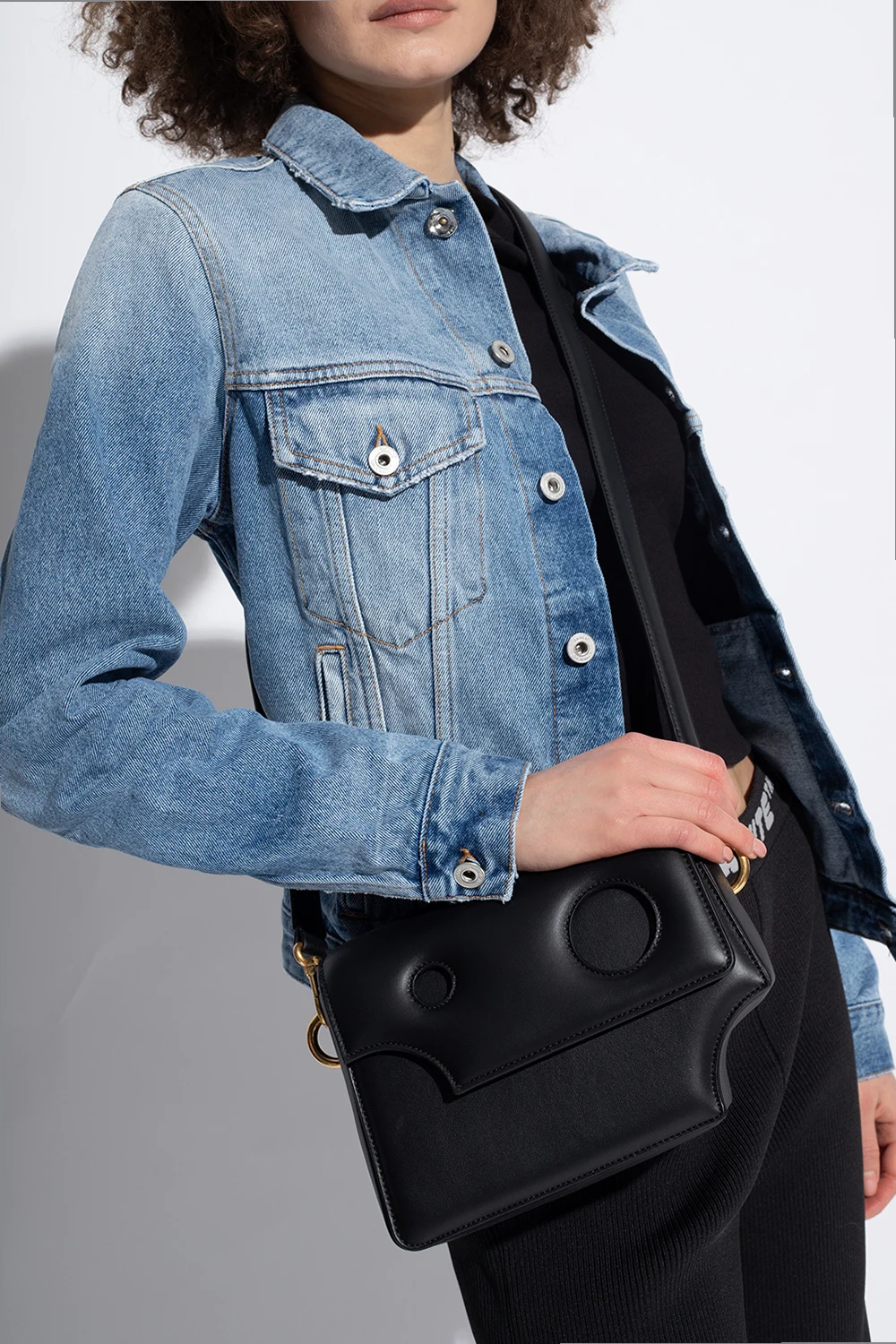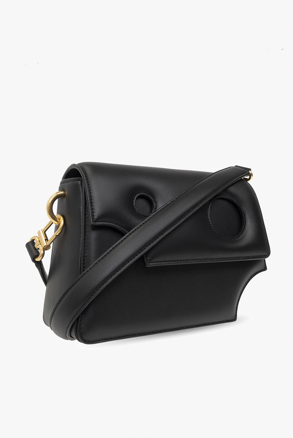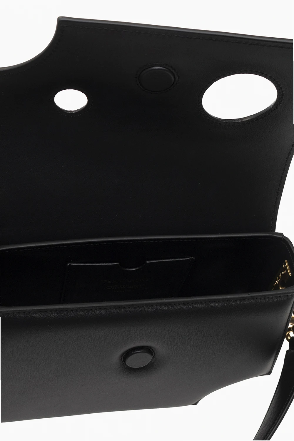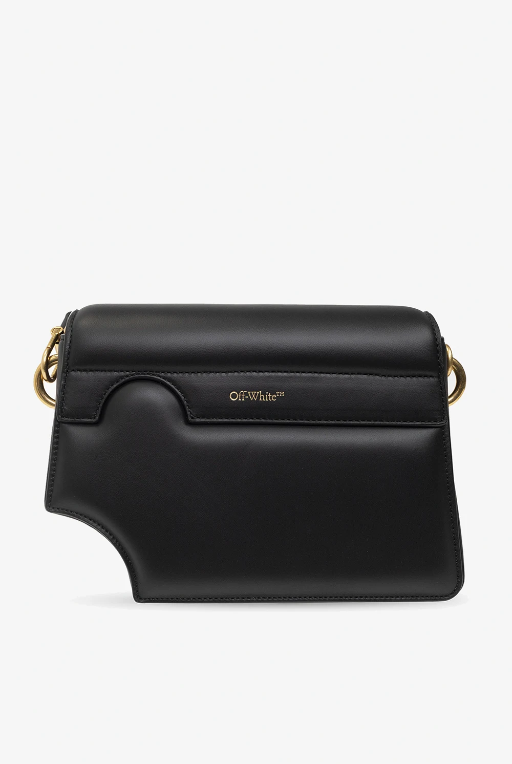 Black ‘Burrow 24' shoulder bag from Off-White. Crafted from leather, this model features a flap with a magnetic snap, decorative cut-outs, gold-tone logo print at the back, detachable chain, adjustable, detachable shoulder strap, antique gold-tone metal hardware and one internal compartment with one card slot.
