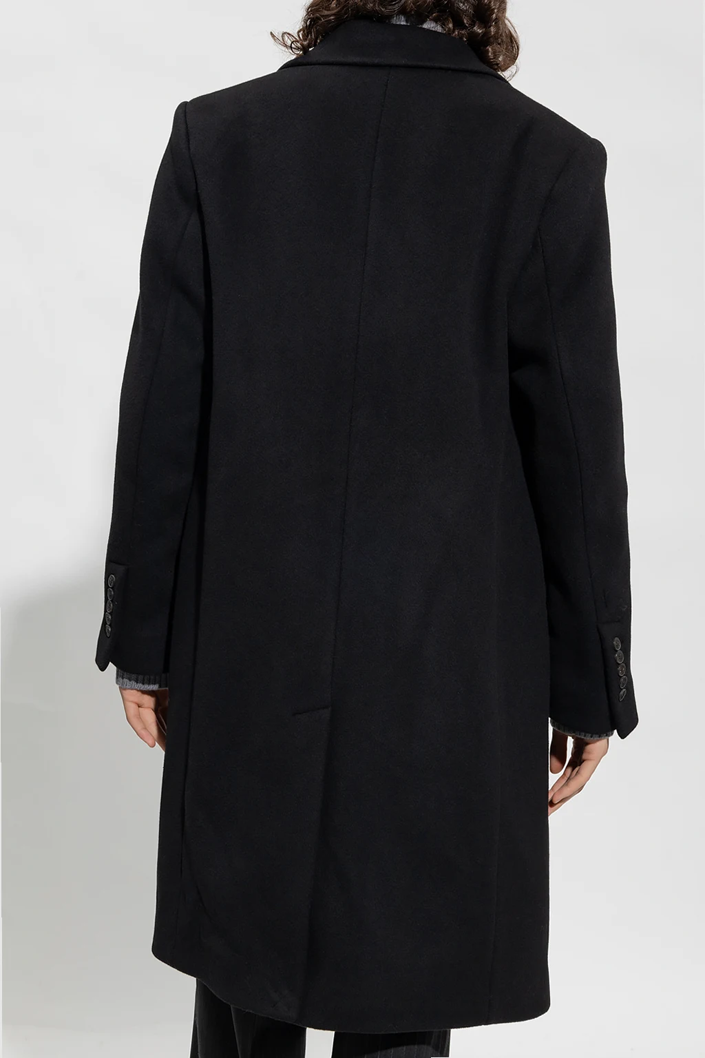 Black ‘Mackaye’ coat from Iro. Crafted from wool, this design features button fastenings, two flap pockets, one slip pocket, single rear vent, notch lapels and long sleeves with buttoned cuffs.