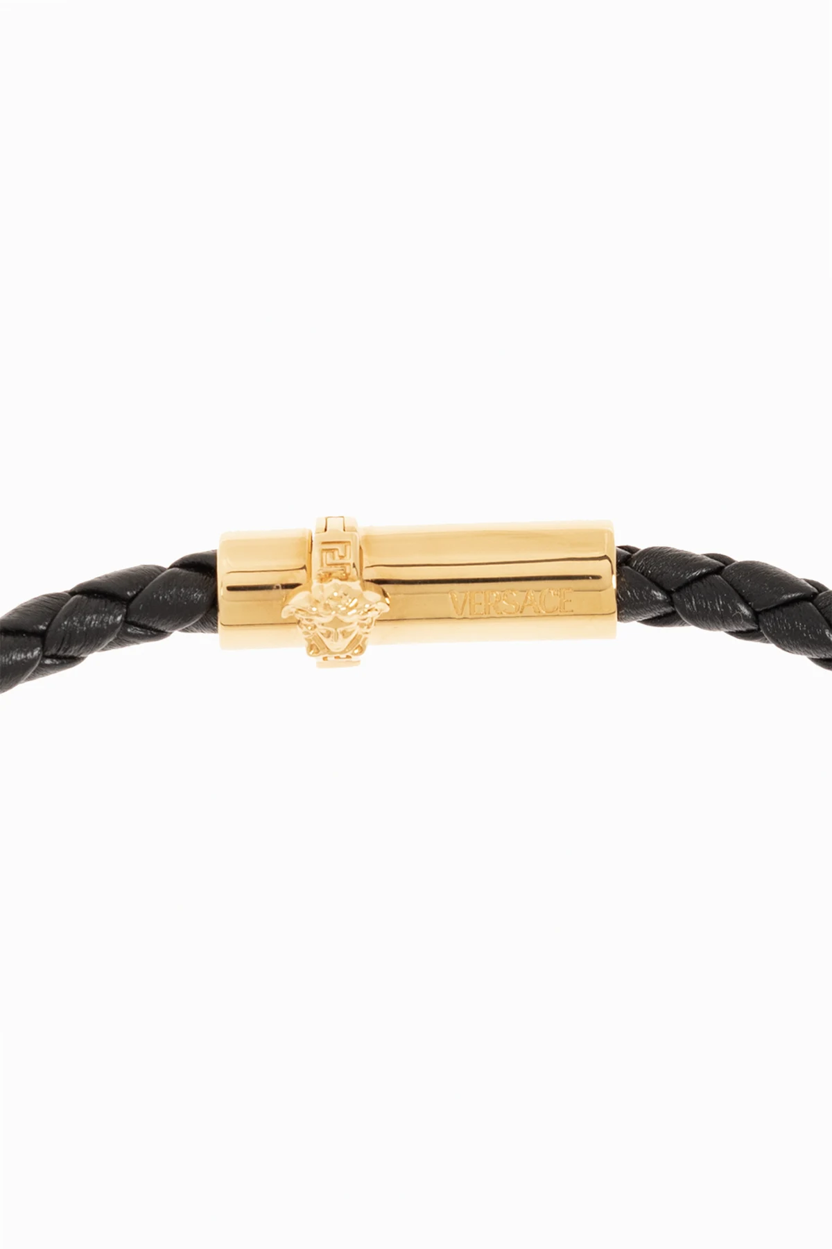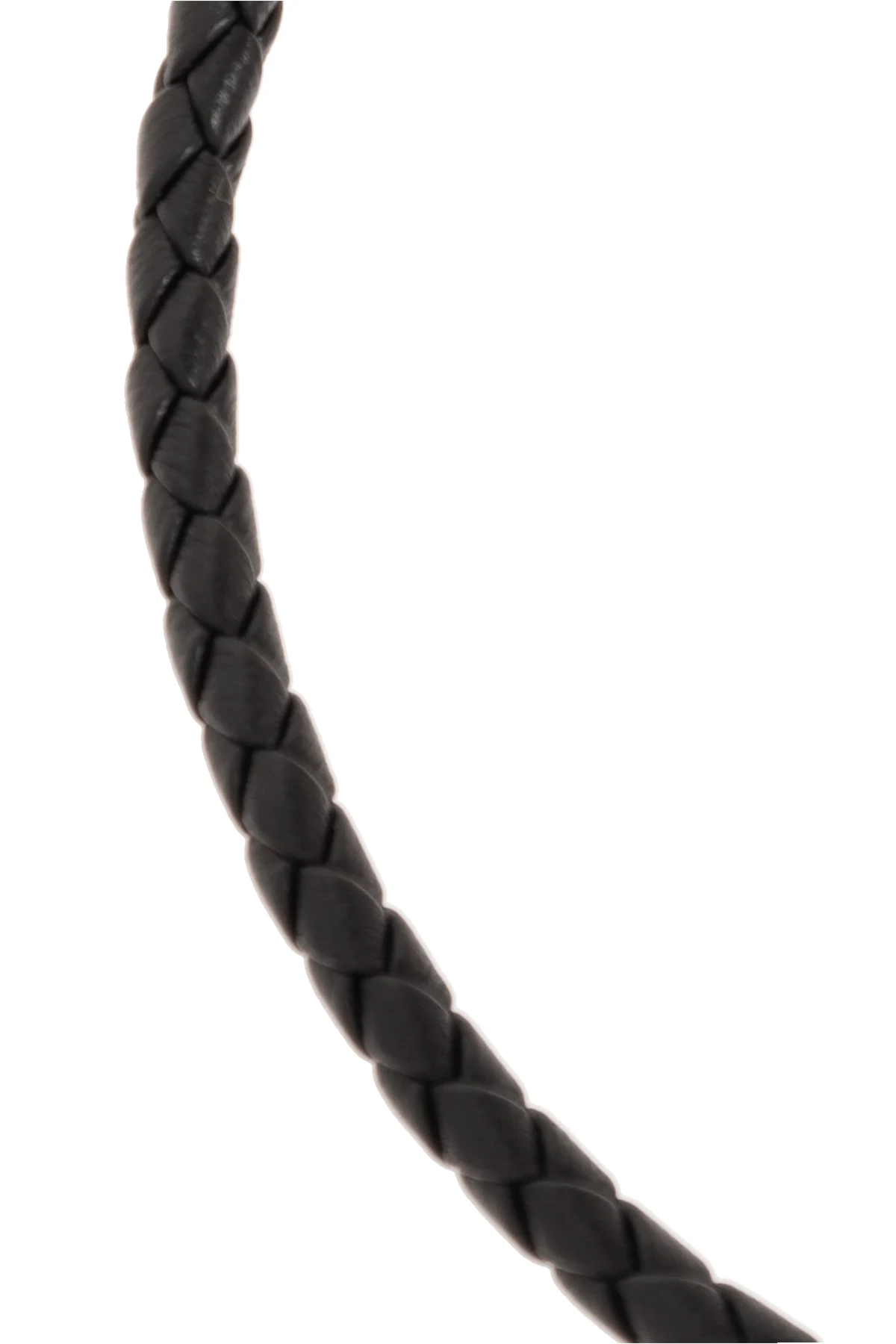 Black woven necklace from Versace. Made of leather, this item features a clasp closure with the brand’s signature Medusa head.