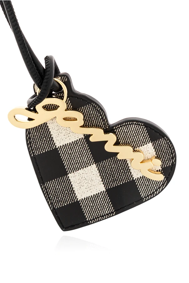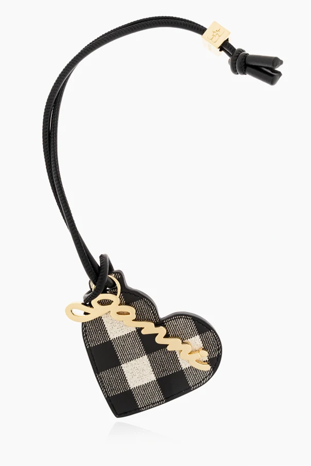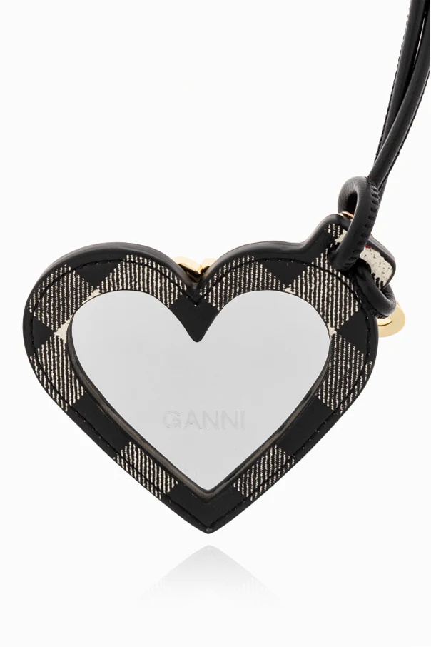 Introducing the Heart-Shaped Pendant with Mirror from GANNI's luxurious collection—a statement piece that exudes elegance and distinction. This exquisite pendant features a classic black and white checkered textile border that beautifully contrasts against its smooth, reflective mirrored center. The center bears the subtle signature of “GANNI,” a nod to its prestigious designer origin. Crafted with a thoughtful blend of materials, the piece combines refined glass with eco-conscious recycled leather, while its dominant black hue, accented with pristine white checks, and gilded details, imbue a sense of luxury. An accommodating black cord, finished with a knot and a petite gold detail, allows for versatile display options. GANNI, a renowned Danish brand, is celebrated for redefining Scandinavian fashion with timeless designs infused with a playful, bold spirit. This pendant, complete with a gold-plated logo on the back, is an embodiment of their visionary aesthetic. Why Choose This Product? Unique heart-shaped design for a sophisticated appeal Luxurious material blend including recycled leather Iconic branding with GANNI’s subtle signature Versatile display with an elegant black cord