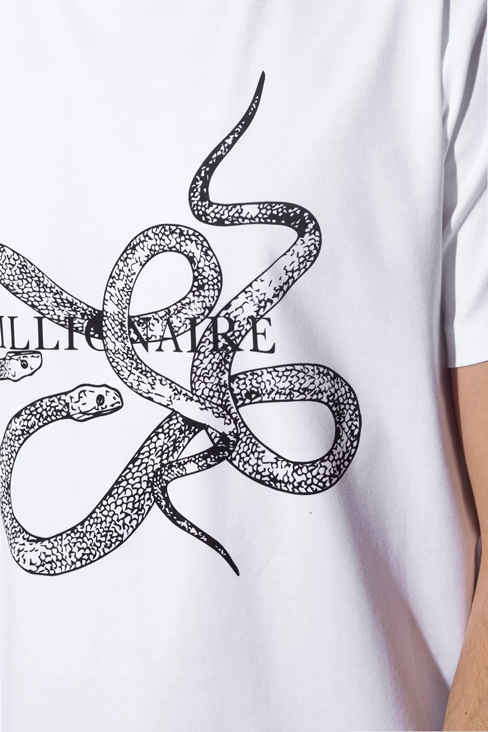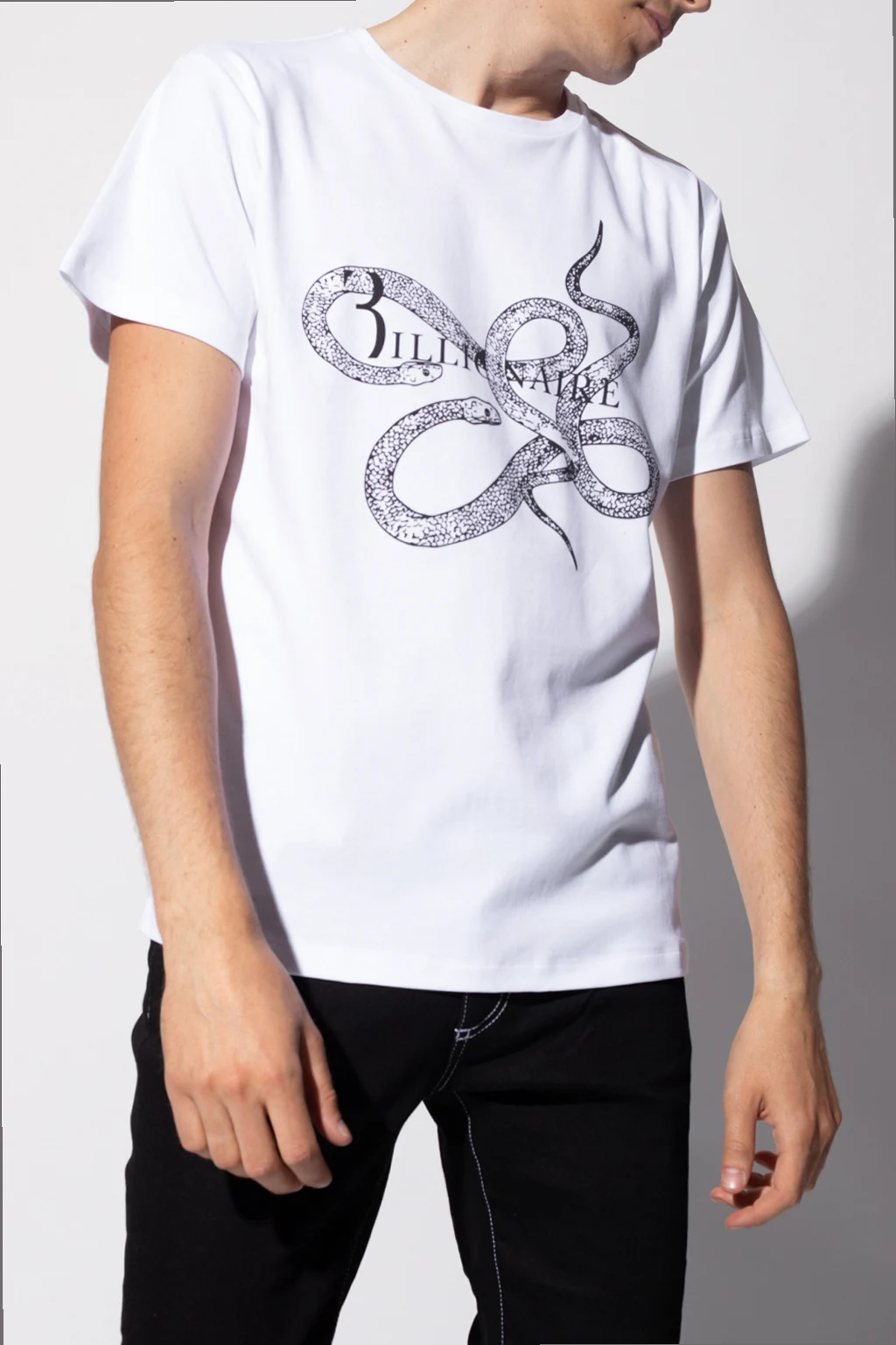 White crewneck T-shirt from Billionaire. Crafted from cotton, this style features short sleeves, rib detailing on the collar and a black graphic print with the brand's logo and an animalistic motif.