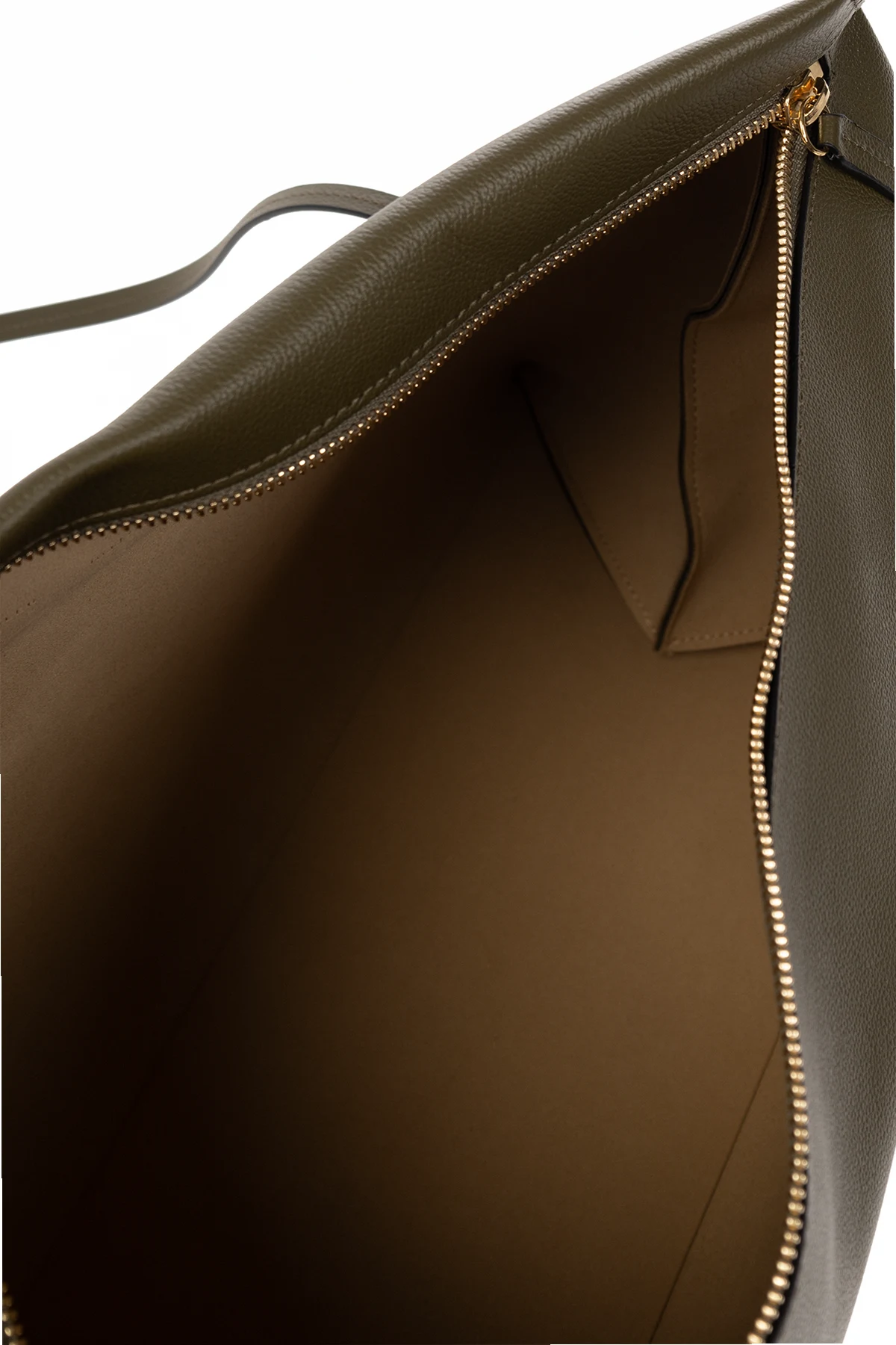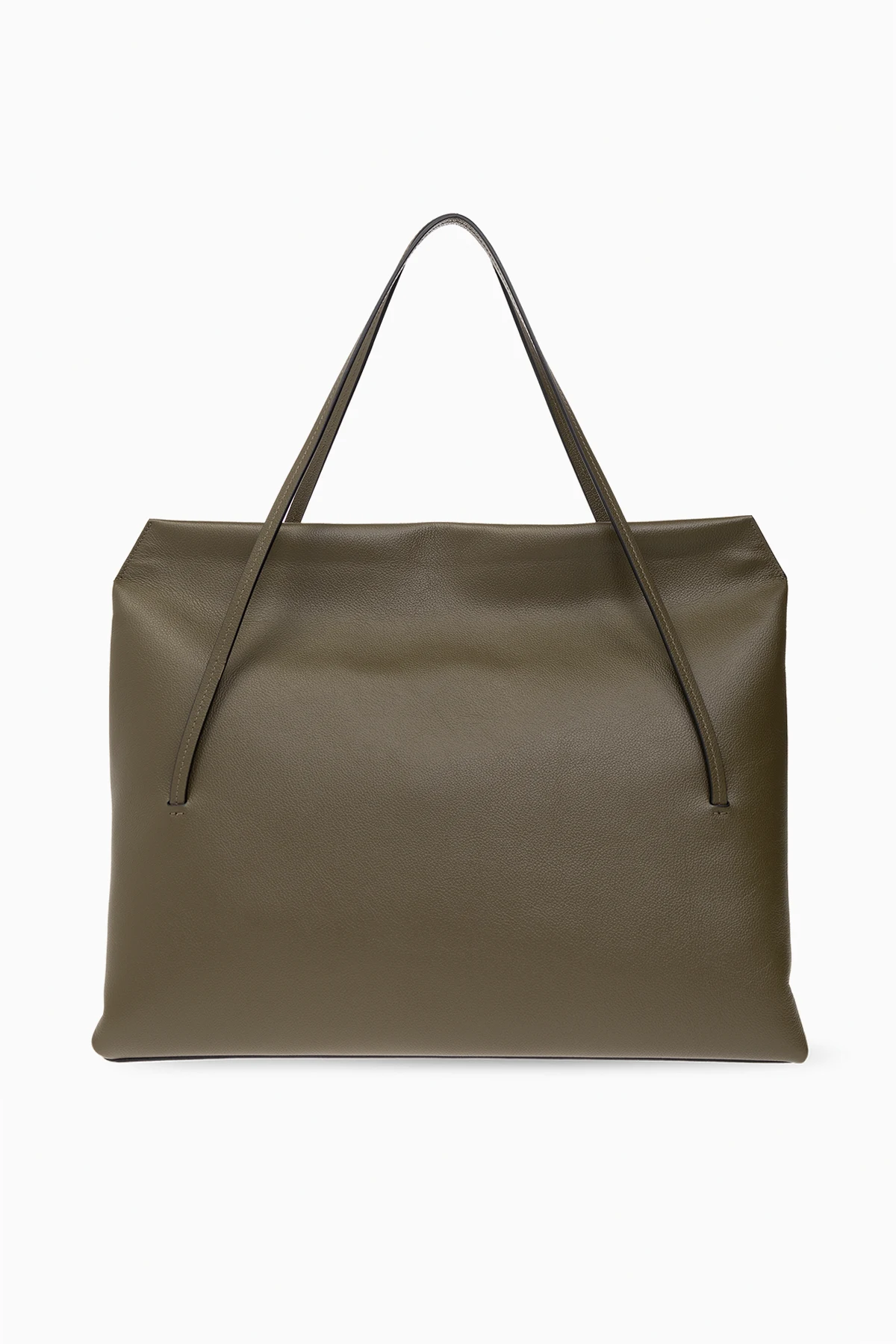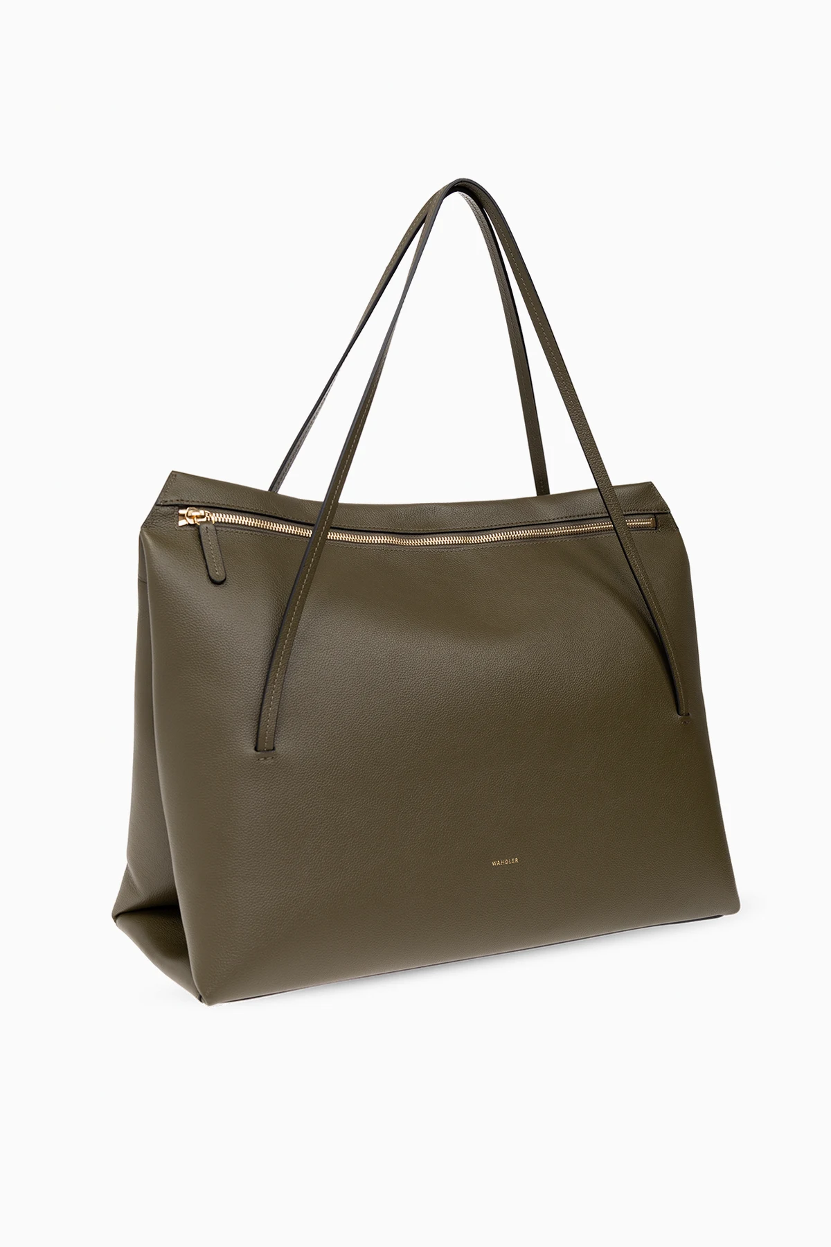 Dark green 'Joanna Big' shopper bag from Wandler. Crafted from calf leather, this design secures with a zipper and magnet and features a printed logo on the front, two half-round handles, gold-tone metal hardware and one internal compartment.