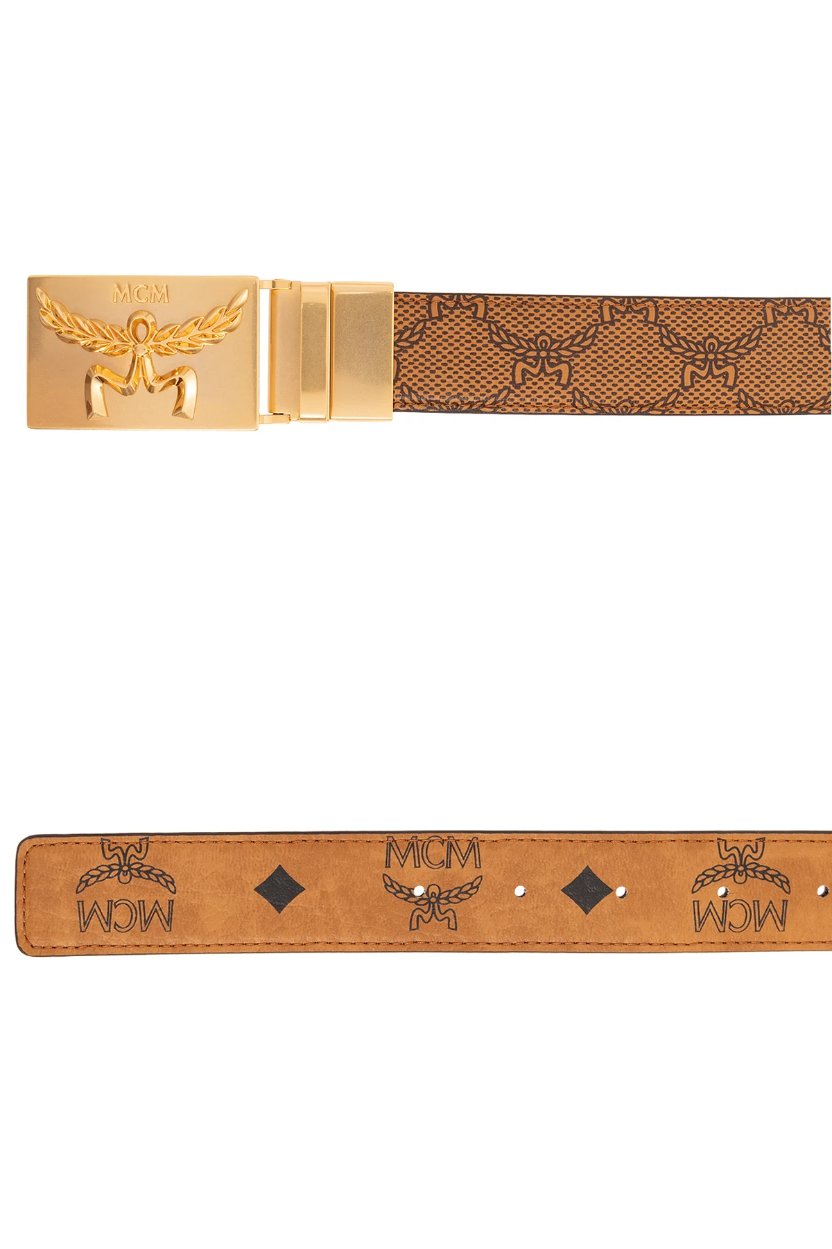 Reversible ‘Himmel’ belt in brown and black from MCM. Made of coated canvas, this item fastens with a black logo buckle. One side is decorated with the Visetos monogram, the other with the Lauretos monogram.