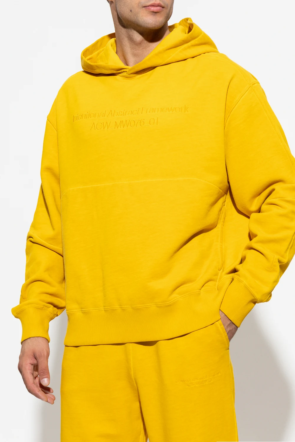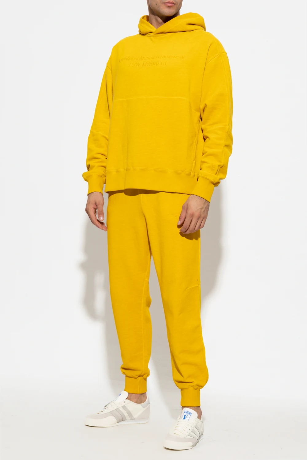Yellow hoodie from A-COLD-WALL*. Crafted from cotton jersey, this style features a logo graphic, a kangaroo pocket and a ribbed bottom hem and cuffs.