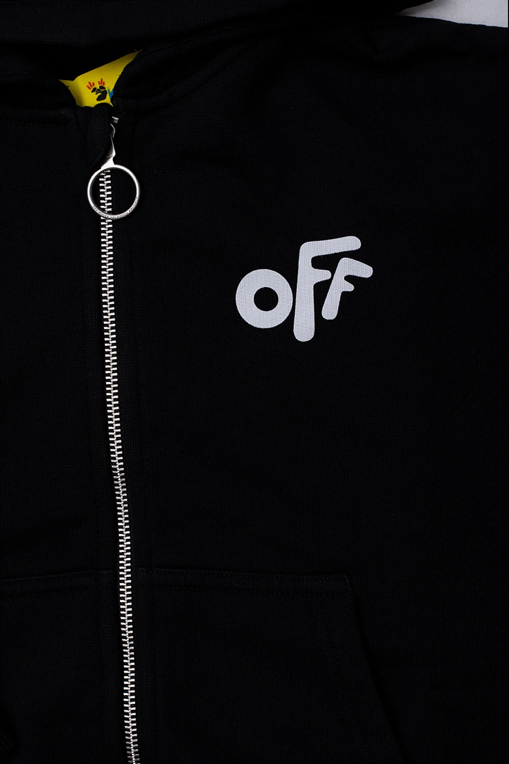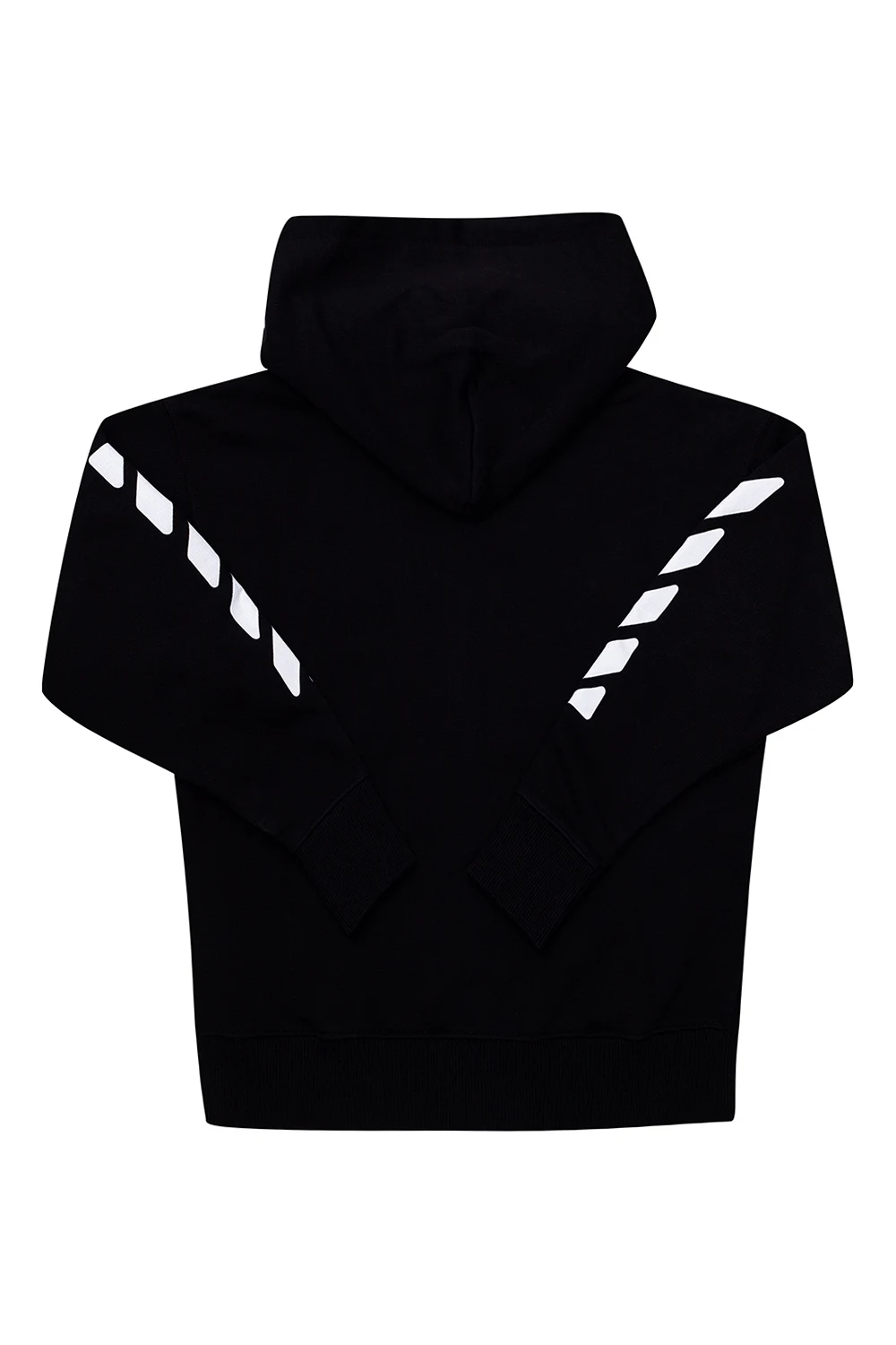 Black hoodie from Off-White Kids. Made of cotton, this garment features a zip fastening, logo print, white pattern and ribbed trims at the hem and cuffs.