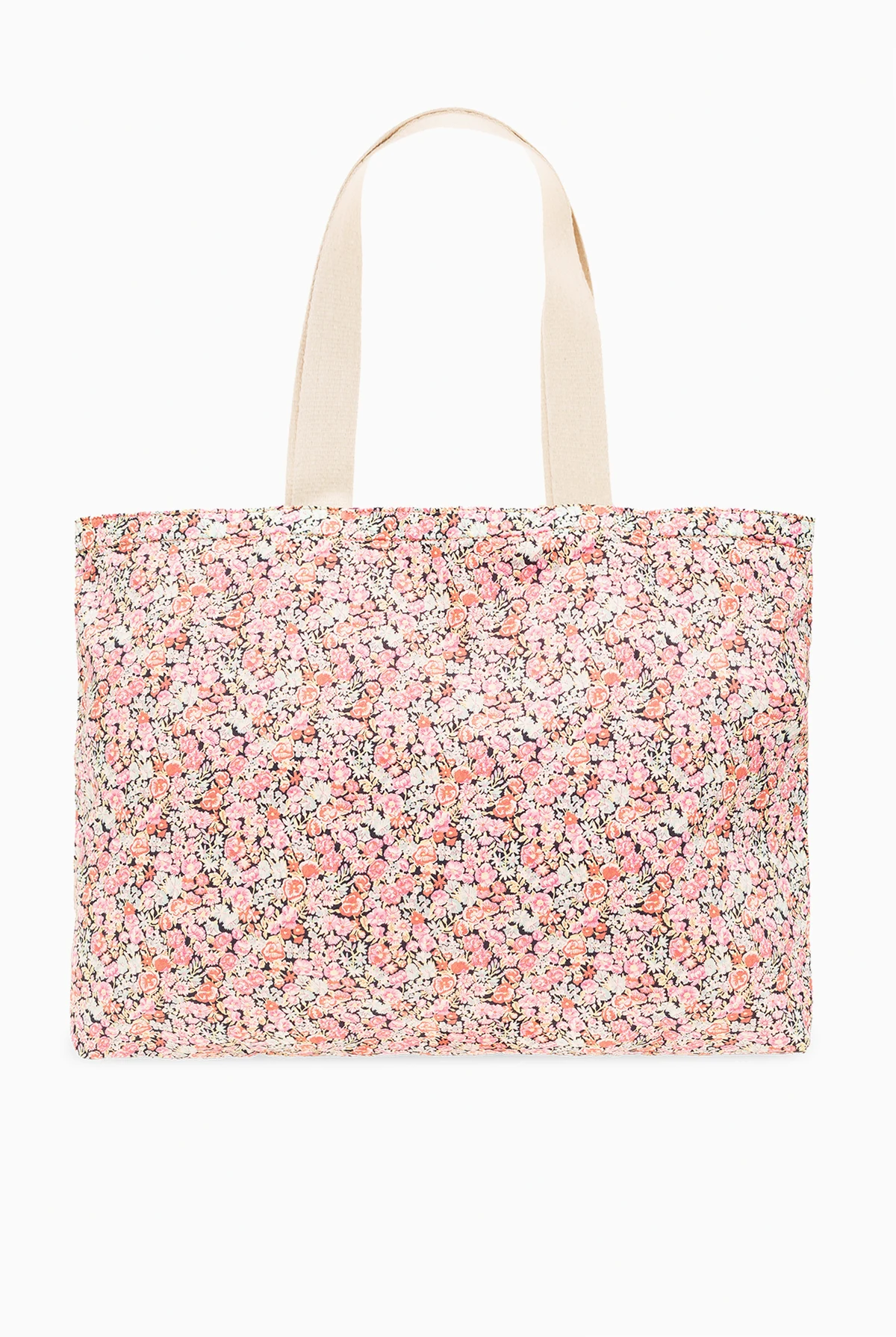 Multicoloured ‘Diba’ reversible shopper bag from Bonpoint. Made from Liberty® cotton, this item features two handles and one internal compartment. One side is embellished with a floral motif and a printed white logo. The other side is plain pink with the brand's logo on the front.