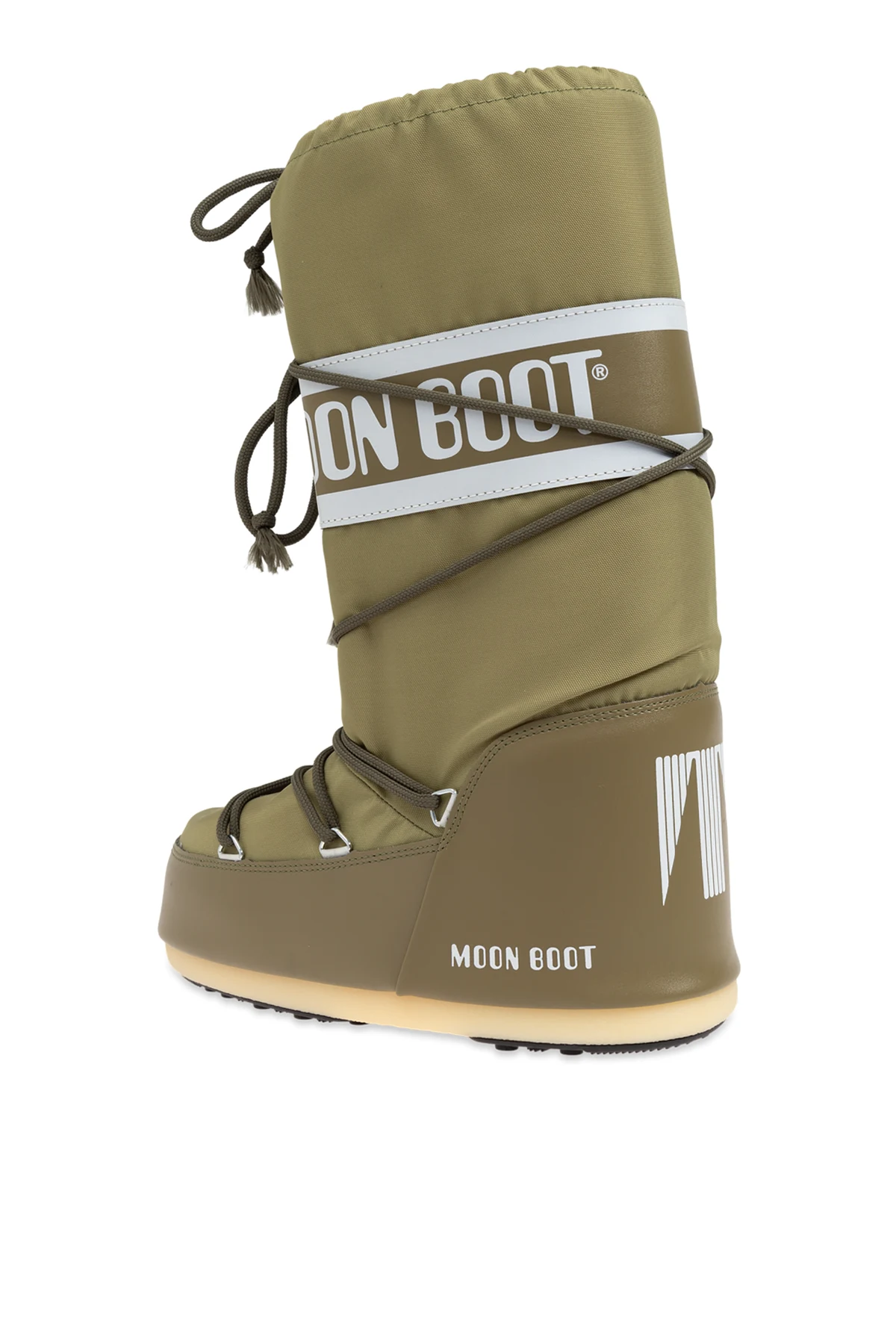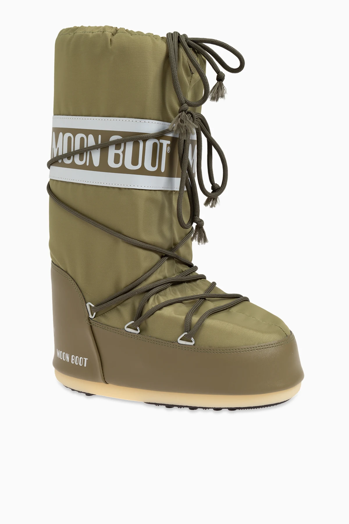 Introducing the exclusive Icon Nylon Snow Boots, a masterpiece from the esteemed MOON BOOT collection. These high-top snow boots, extending above the ankle, feature a sophisticated green hue with elegant white accents. The prominent white stripe, adorned with the green "MOON BOOT" logo, adds a touch of distinction and style. Crafted from premium waterproof nylon and synthetic leather, these boots offer unparalleled protection and durability. The rubber outsole ensures exceptional grip on snow and ice, making them ideal for winter escapades. Green laces crisscross the boots, providing a secure and customizable fit, while reinforced heel and toe areas enhance longevity and protection. These snow boots are not only stylish but also functional, offering thermal insulation and moisture defense in harsh winter conditions. The modern, sporty design makes them a versatile choice for both outdoor adventures and everyday wear. Why Buy This Product? High-top design for superior ankle support and warmth. Waterproof materials to keep your feet dry. Durable rubber sole for excellent traction. Elegant green color with eye-catching white accents. Iconic MOON BOOT branding for a touch of luxury. Ideal for both winter sports and urban use.