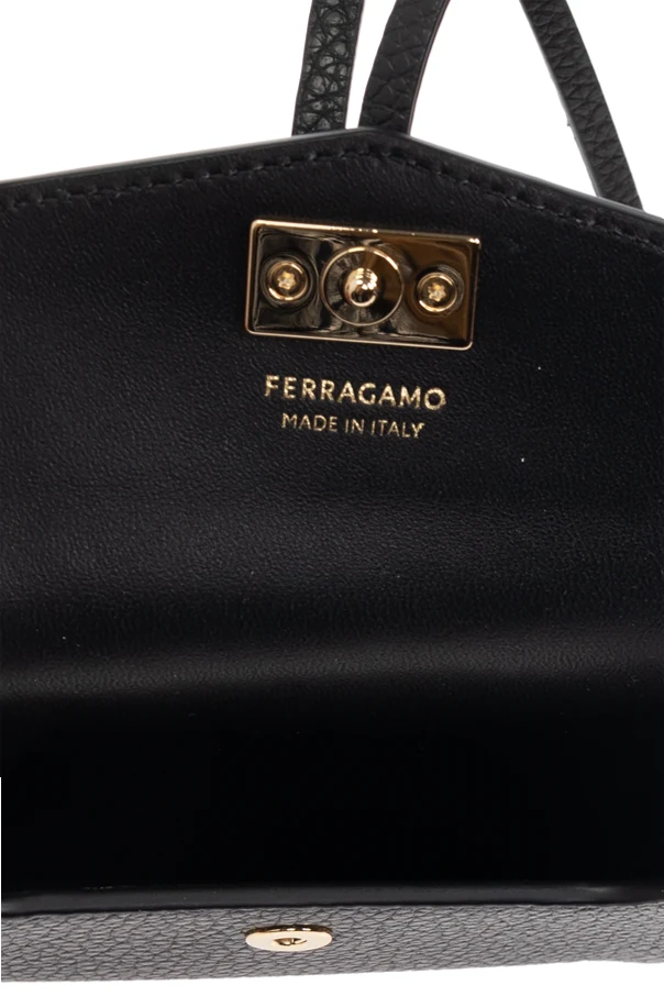The Ferragamo Belt Pouch epitomizes understated sophistication and timeless allure. Its rectangular, compact silhouette is accentuated by a sharply angled flap, presenting an effortless blend of modern minimalism and classic elegance. Crafted from premium, grain-textured calfskin leather , this pouch boasts a smooth, refined surface that radiates both durability and discerning taste. Distinctive design elements include the iconic gold-tone metal closure featuring Ferragamo’s signature horseshoe motif, and the delicately embossed “FERRAGAMO MADE IN ITALY” branding within—a hallmark of authenticity and premium Italian craftsmanship. The subtle, polished logo and restrained profile make this piece an instantly recognizable accessory within the realm of exclusive leather goods. Why Choose This Product? Exquisite grain-textured calfskin for enduring elegance Iconic Ferragamo gold hardware and distinguished branding Practical, compact design ideal for essentials A statement of expert Italian craftsmanship and heritage