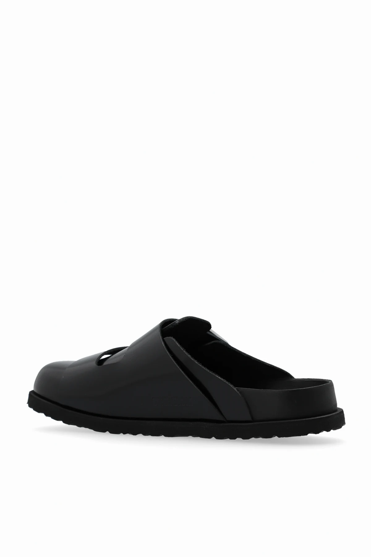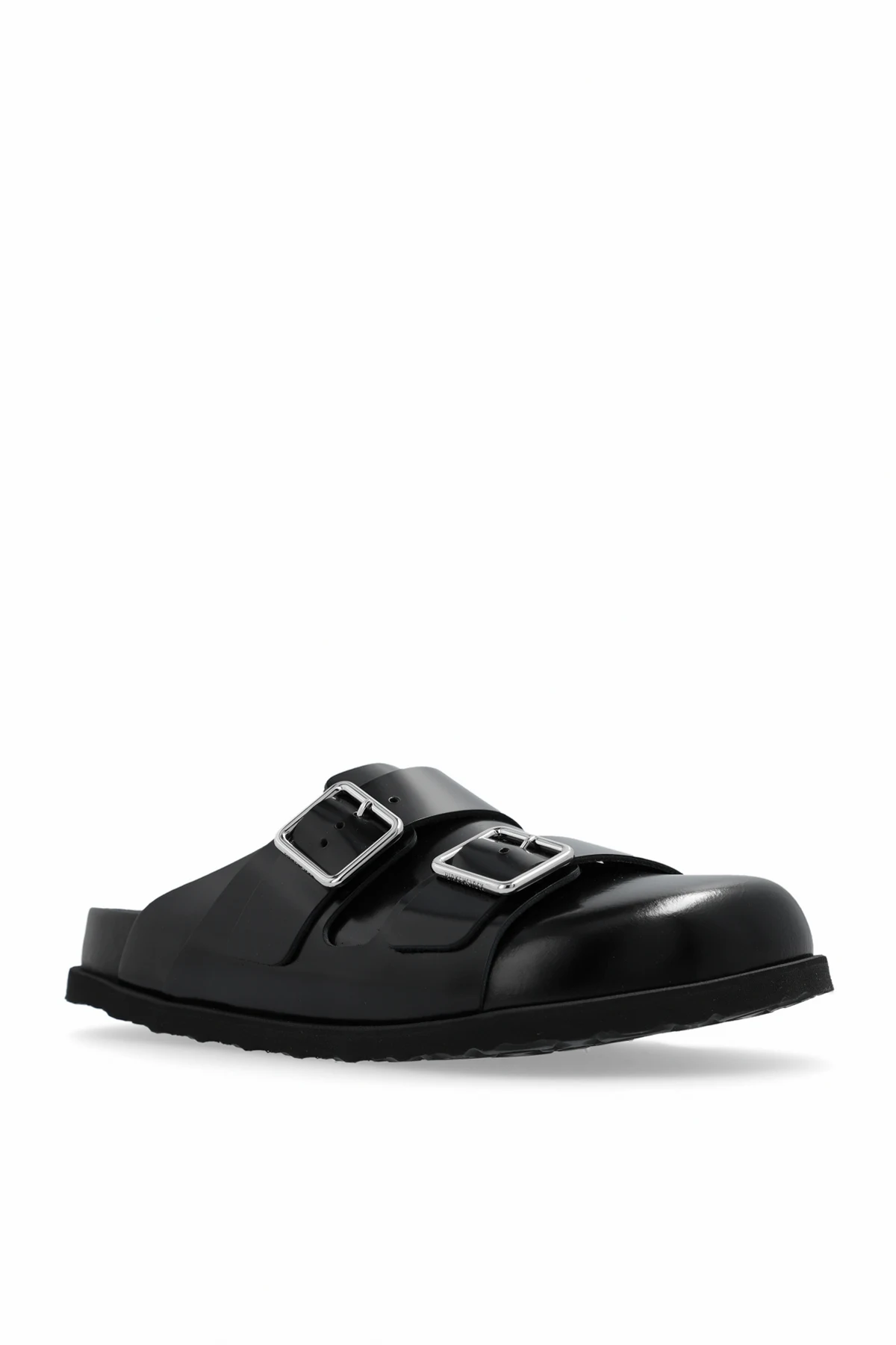 Introducing the "222 West" Slides by the esteemed Birkenstock 1774 – a testament to minimalist luxury and impeccable craftsmanship. Dominated by a sophisticated matte black hue, these slides are crafted from the finest leather, ensuring both durability and a plush feel against the skin. The design features two adjustable straps, each fastened with lustrous, metal buckles that provide a striking contrast to the understated elegance of the footwear. The sole, a harmonious blend of natural cork and EVA foam, promises unwavering stability and comfort, making these slides a paragon of functional fashion. Their flat silhouette not only epitomizes the luxury of simplicity but also ensures a solid foundation with every step. Paired with sleek, black trousers and a relaxed shirt, the "222 West" slides accentuate an outfit with an air of exclusivity and refined taste. Why Purchase the "222 West" Slides? Exquisite Materials: Premium leather construction for supreme quality and comfort. Distinctive Design: Gleaming metal buckles set against matte black leather for a striking, luxurious appearance. Unmatched Comfort: A blend of natural cork and EVA foam in the sole offers stability and ease for all-day wear. Minimalist Elegance: The epitome of understated luxury, perfect for those who value subtlety and sophistication in their wardrobe.