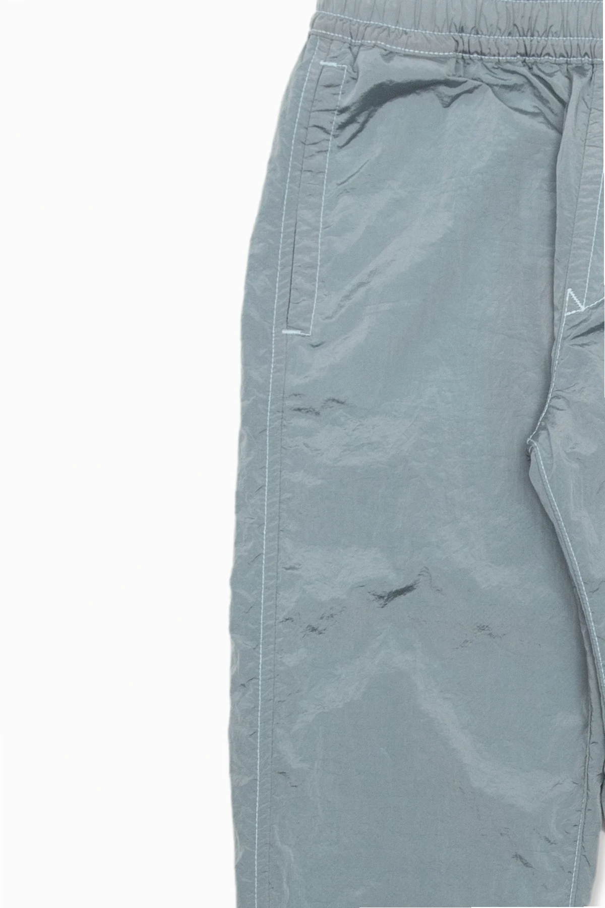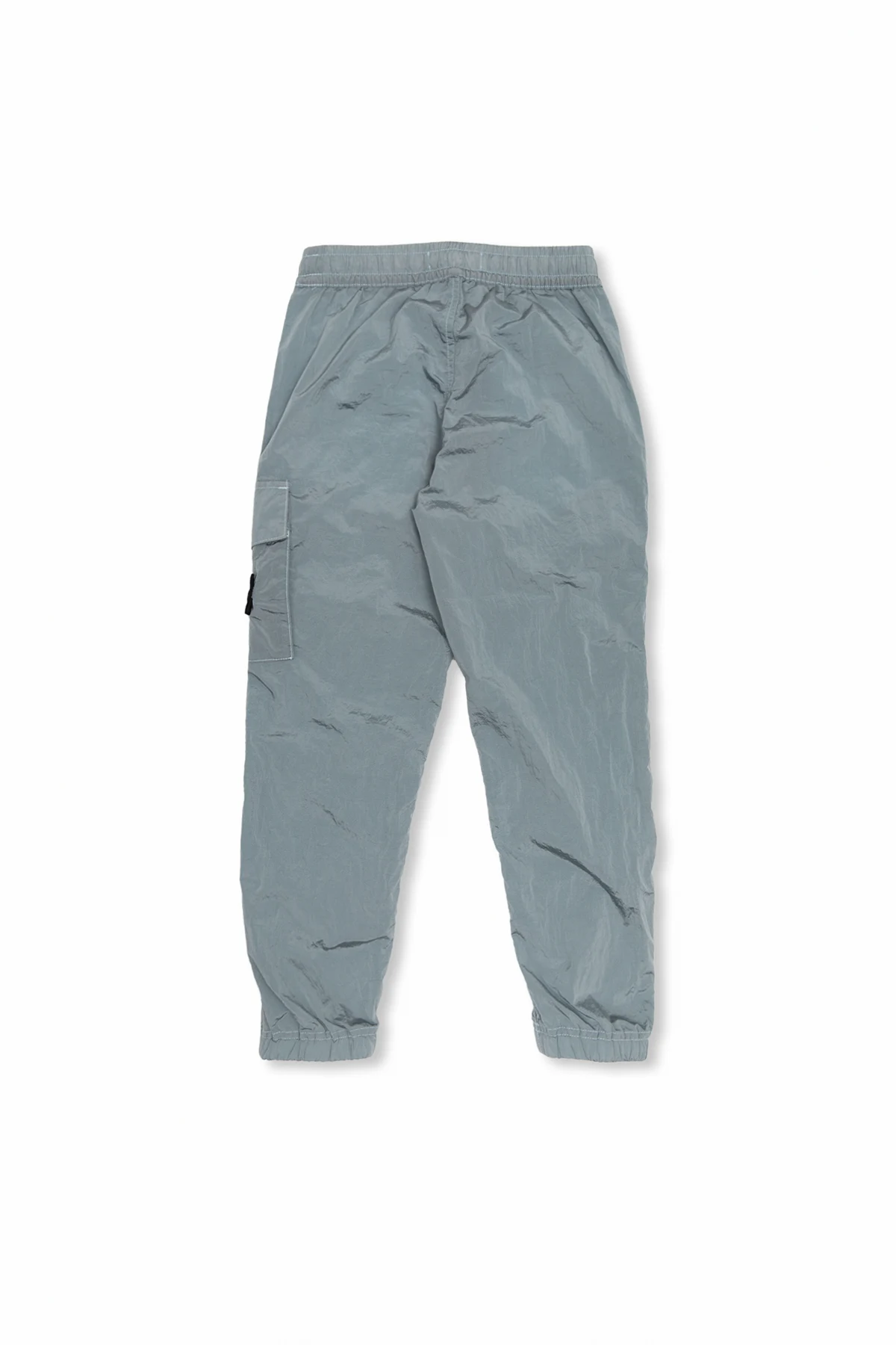 Bluish grey trousers from Stone Island Kids. This pair features an elastic drawstring waistband, logo patch, multiple pockets and ribbed cuffs.