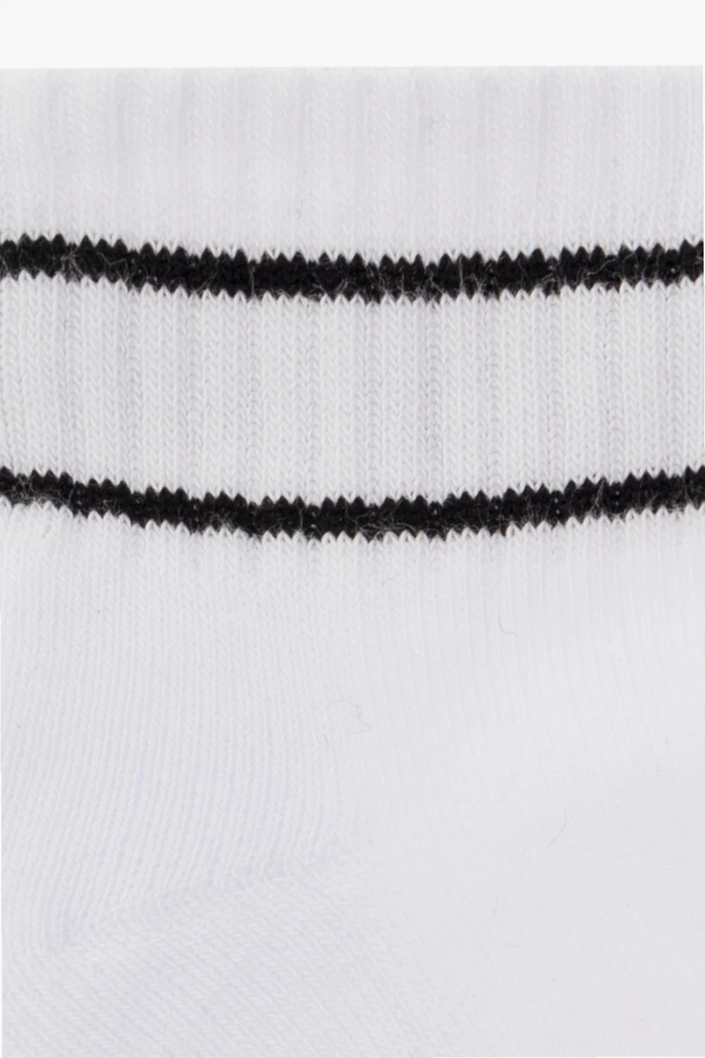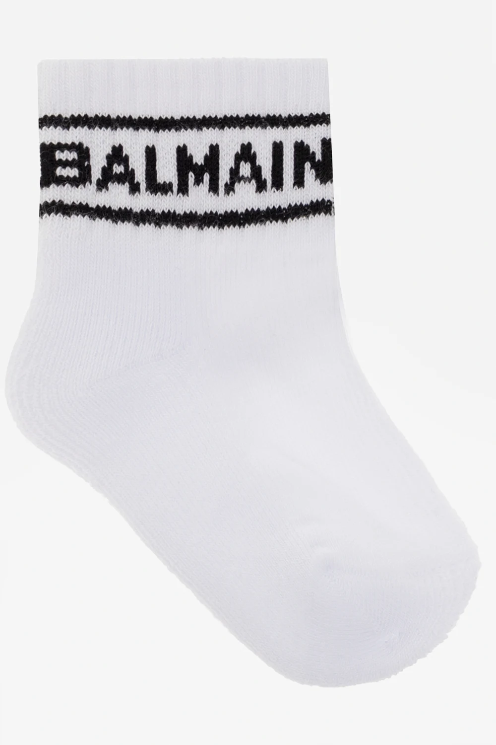 White socks from Balmain Kids. Made of cotton, this pair features a black logo embroidery and ribbed cuffs.
