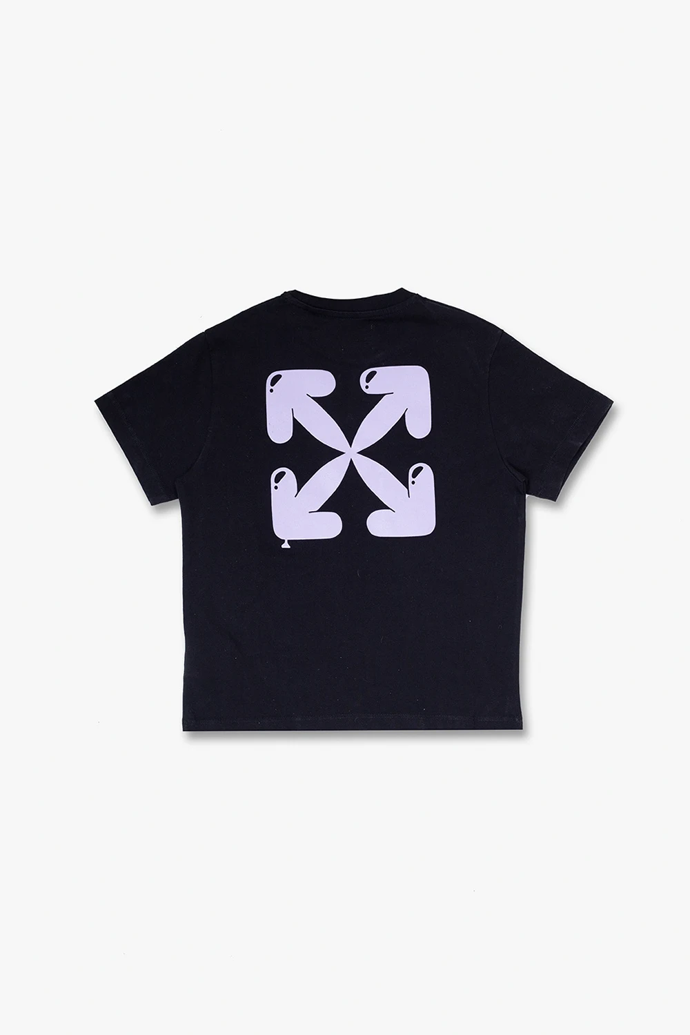 Black crewneck T-shirt from Off-White Kids. Crafted from cotton, this style features short sleeves, an elasticated collar and a purple graphic print with the brand's logo.