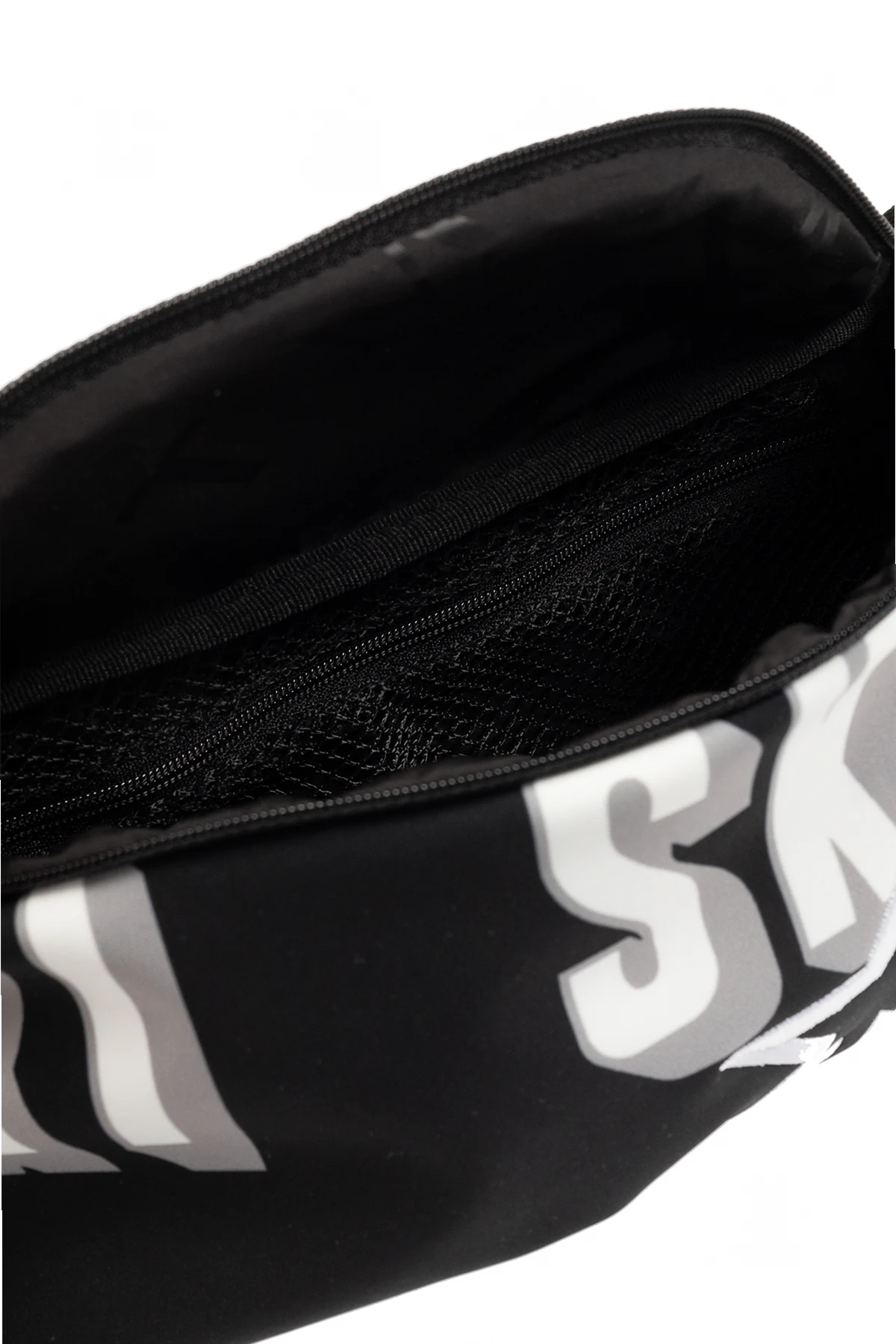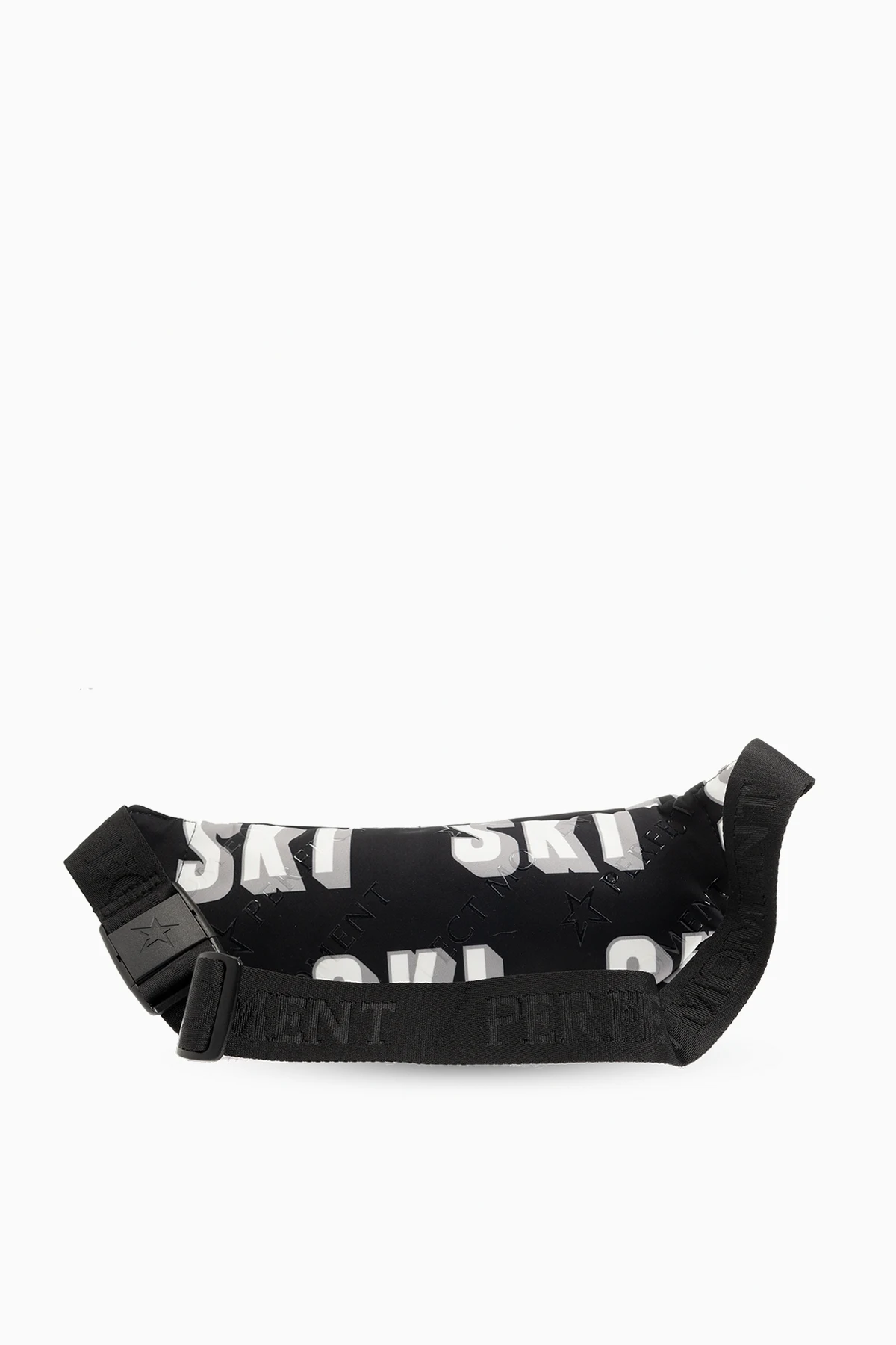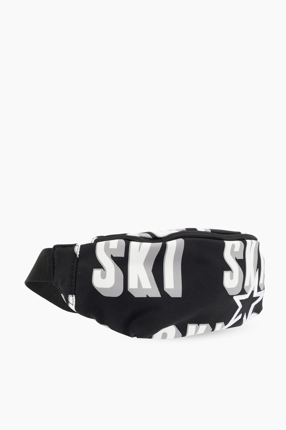 Black belt bag from Perfect Moment. Fastened with a zip, this design features a grey and cream ‘SKI' pattern, the brand's signature white embroidered star pattern, adjustable belt, silver-tone metal hardware and one internal compartment with one zip pocket.