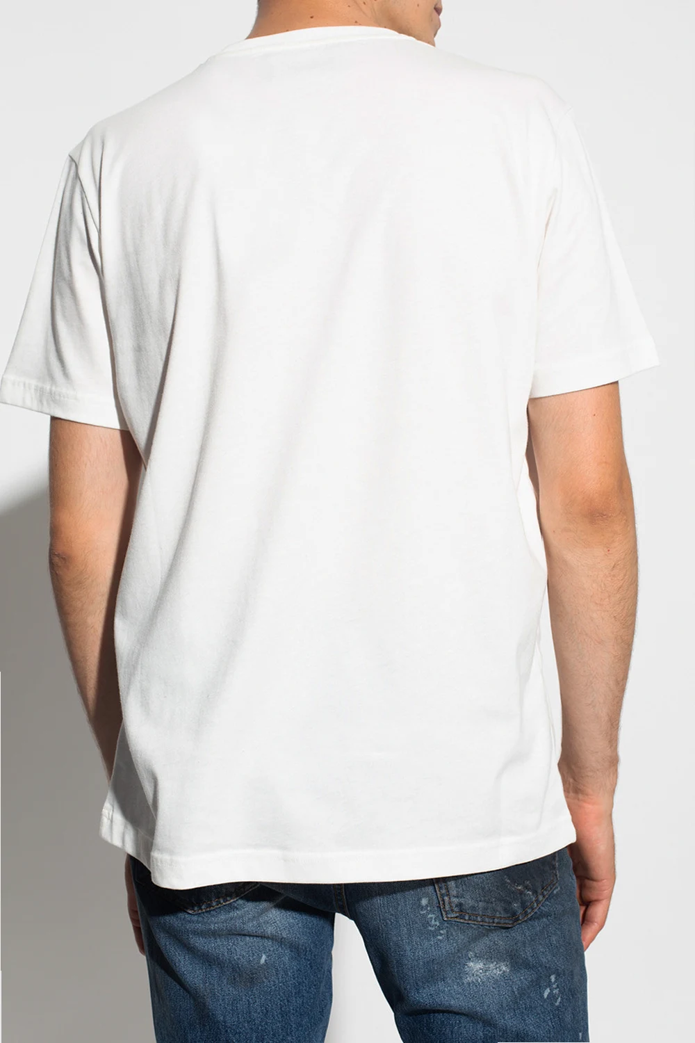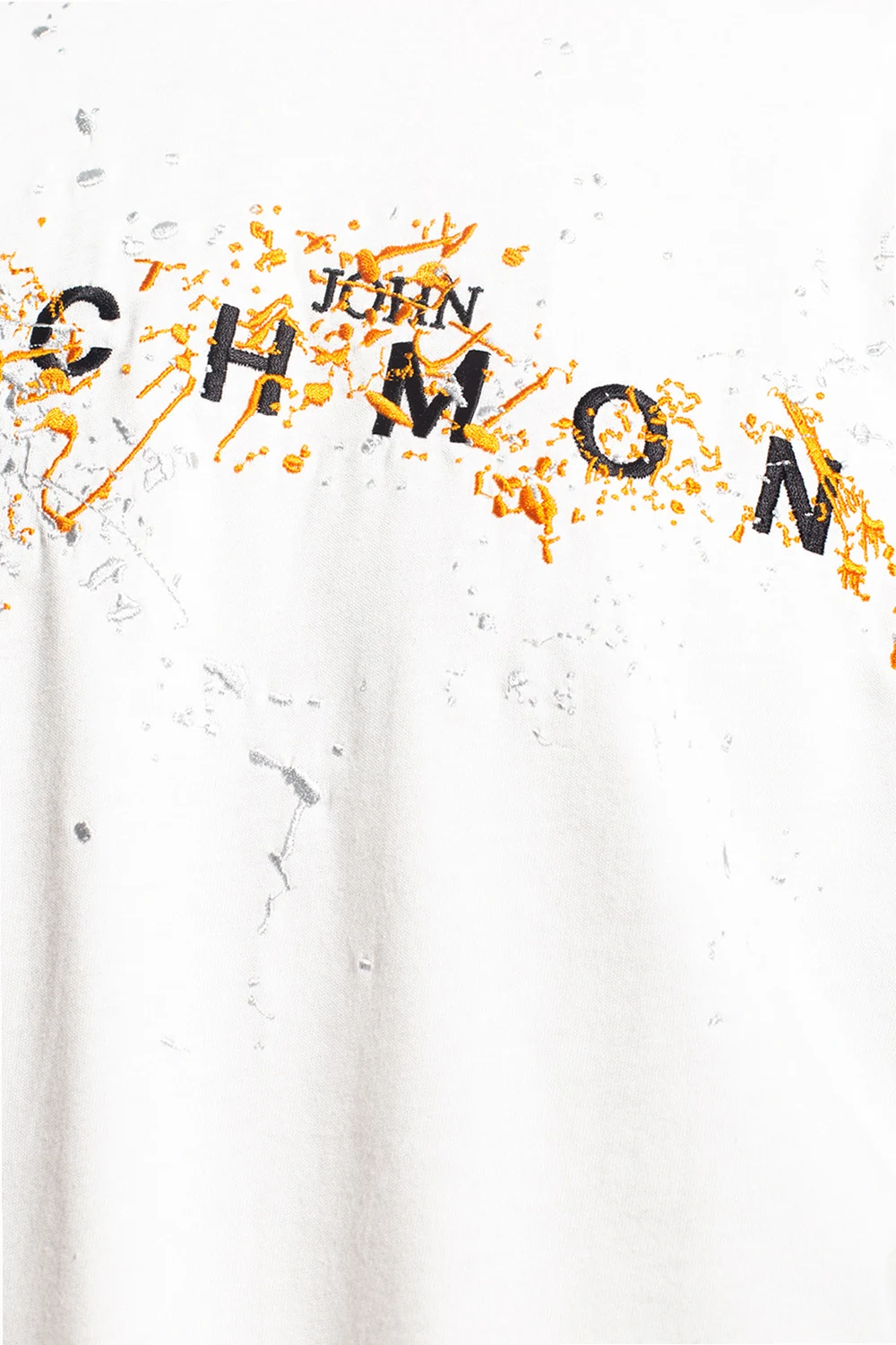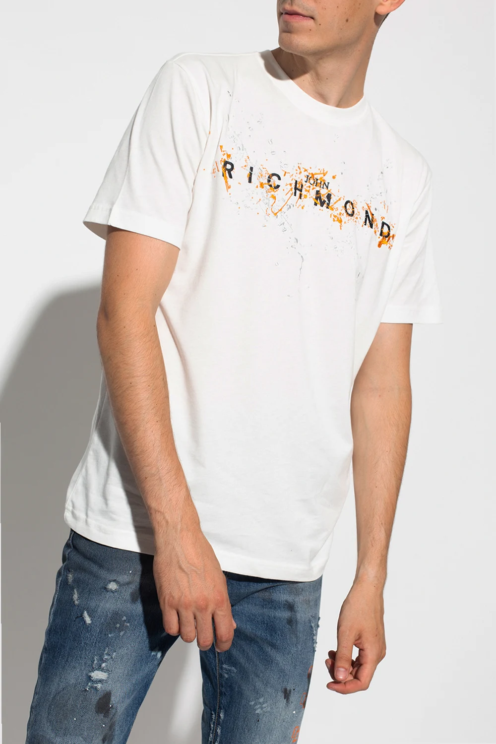 White T-shirt from John Richmond. Crafted from cotton, this short sleeve design features a ribbed round neck and an embroidered logo motif in grey, black and orange.