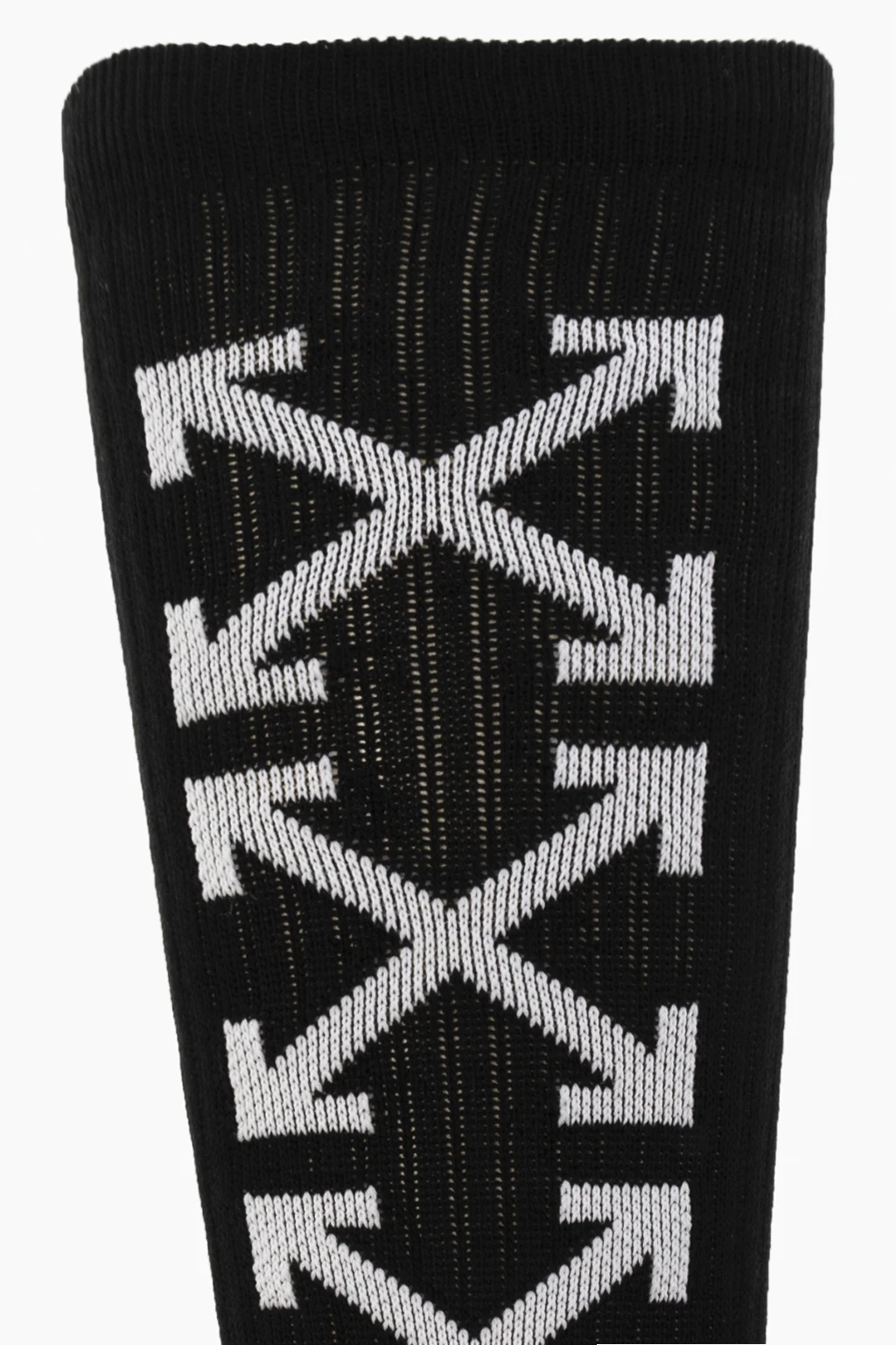 Black socks from Off-White. Crafted from cotton, this pair features an embroidered arrow motif, white logo and ribbed cuffs.