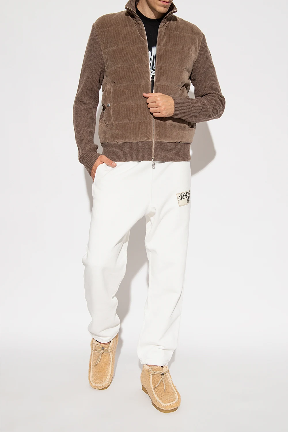 Beige boots from 2 Moncler 1952 x Clarks ® Originals. Made of leather, this design features fur trims, decorative stitching details and beige rubber sole.