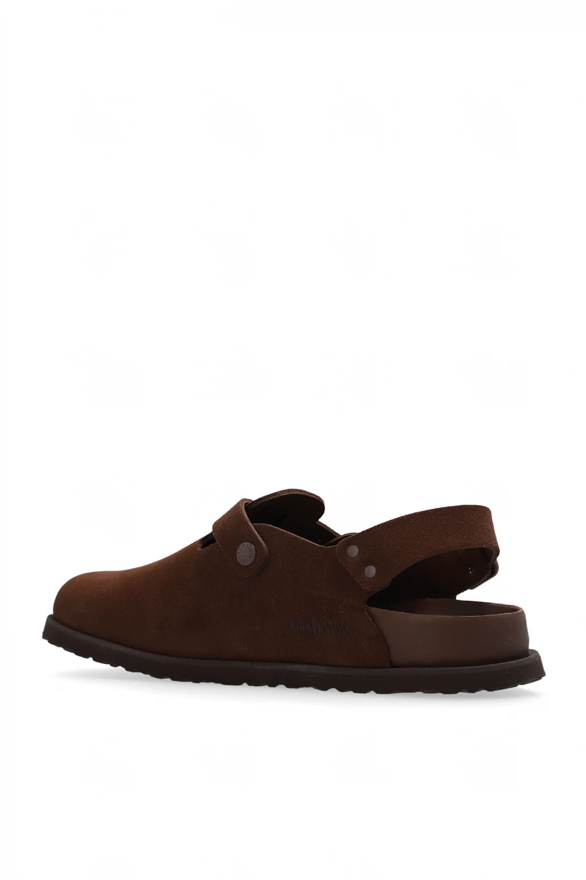 Introducing the 'Tokio II' shoes by Birkenstock 1774, a testament to timeless elegance and unparalleled comfort. Dominated by a deep, uniform shade of brown, these shoes exude a sophisticated aura with their simple, rounded silhouette reminiscent of classic low-top oxfords. Crafted from premium suede with a matte finish, the 'Tokio II' offers a tactile experience that is as pleasing to the touch as it is to the eye. The design is accentuated by two metallic buckles on straps located above the vamp, providing an adjustable fit while adding a touch of modernity. The back strap, likely adjustable as well, ensures a custom and secure fit around the heel. A flat sole made from natural cork and EVA foam contrasts subtly in a darker hue, enhancing the aesthetic while promising durability and comfort. Notably, the absence of external branding emphasizes the shoes' minimalist design, focusing on quality and craftsmanship. Inside, the presence of size markings and possibly a serial number or identification code speaks to the meticulous attention to detail that Birkenstock 1774 dedicates to every pair of shoes, ensuring authenticity and excellence. Why Purchase the 'Tokio II' Shoes? Elegant design with a timeless silhouette and deep brown suede. Adjustable straps for a personalized and secure fit. High-quality materials: suede exterior, leather interior, and a natural cork and EVA foam sole. Minimalist aesthetic with no external branding, focusing on the beauty of the craftsmanship. Exemplifies Birkenstock 1774's commitment to comfort, durability, and style.