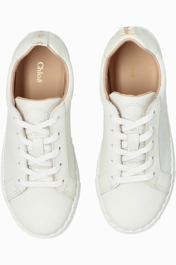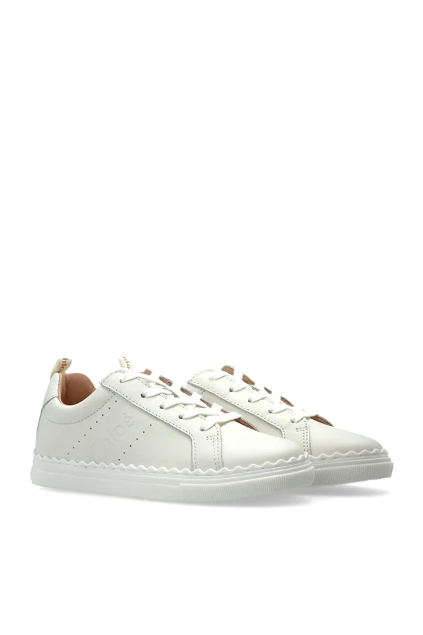 Elevate your child's footwear collection with these refined white sneakers by Chloé Kids. The classic low-profile silhouette, featuring a gently rounded toe and an impeccably balanced shape, ensures a comfortable fit tailored specifically for growing feet. Crafted from premium natural leather , both inside and out, each pair boasts a luxurious feel and enduring quality.