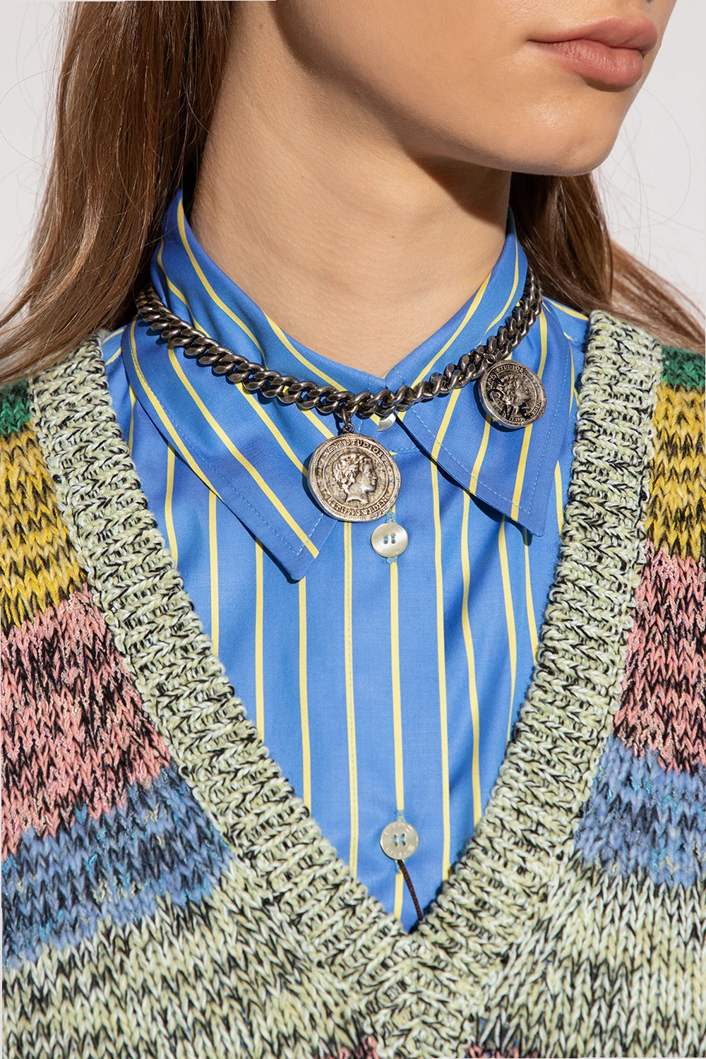Antiqued silver-tone necklace from Acne Studios. Made of brass, this item secures with a lobster clasp fastening and showcases charms engraved with a graphic motif.