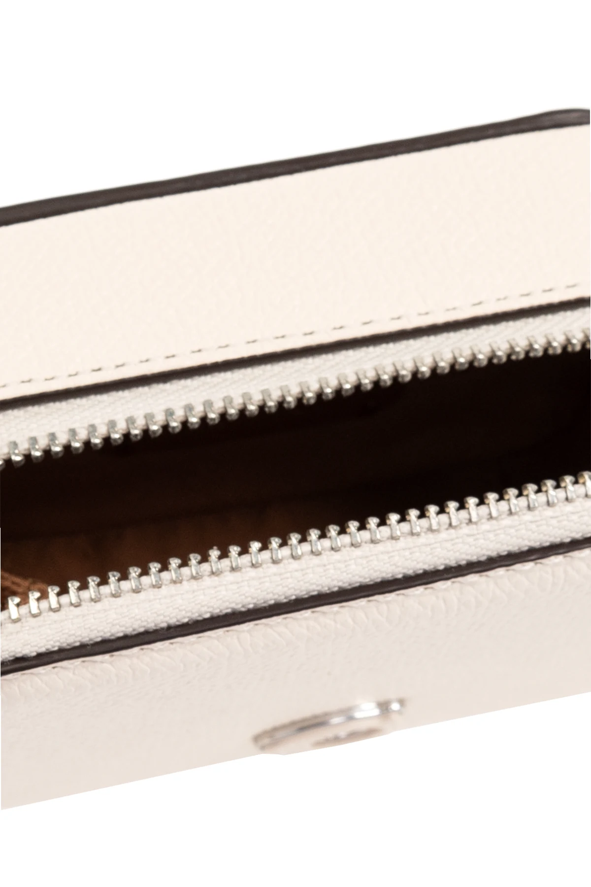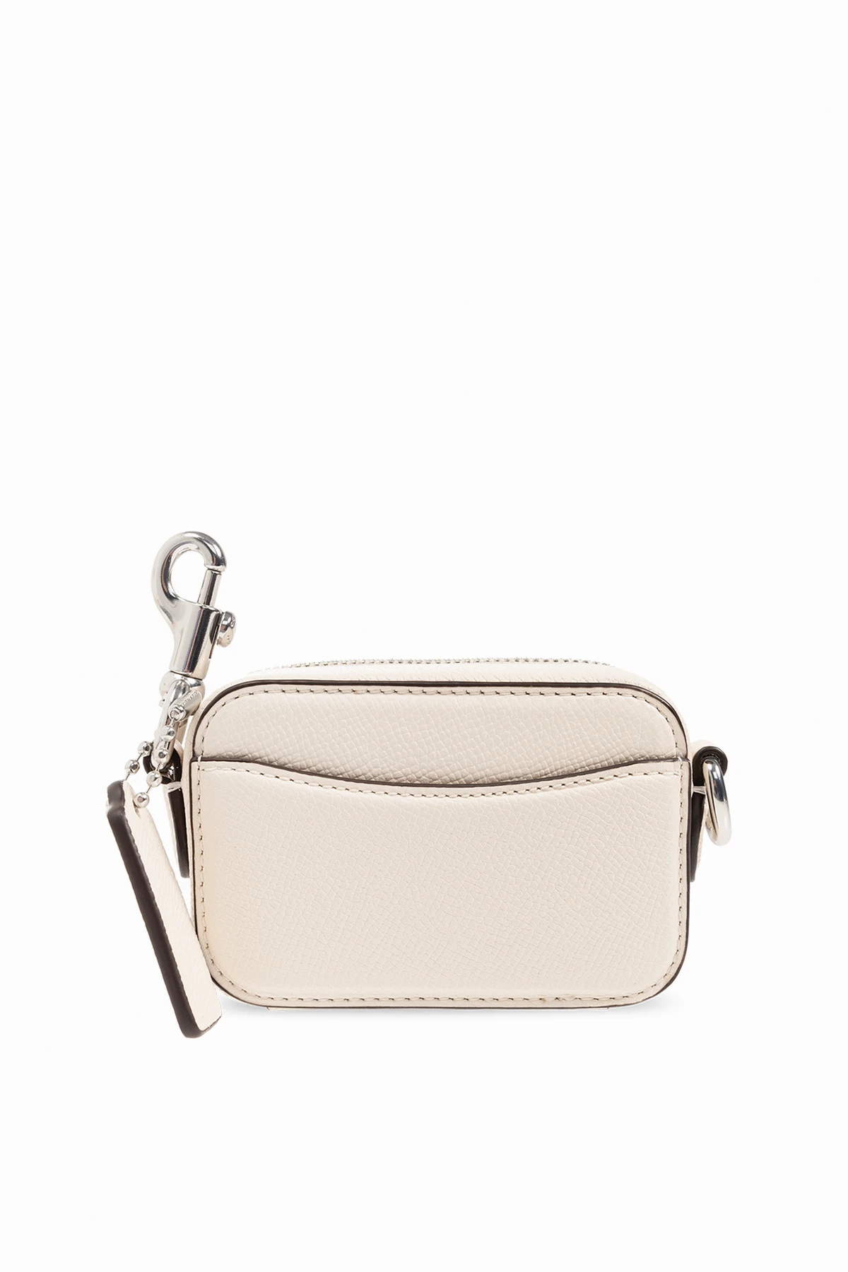 Cream card holder with strap from Coach. Made of leather, this design features zip-around fastening, logo detail, back pocket, detachable and adjustable strap, one internal compartment and silver-tone metal hardware.