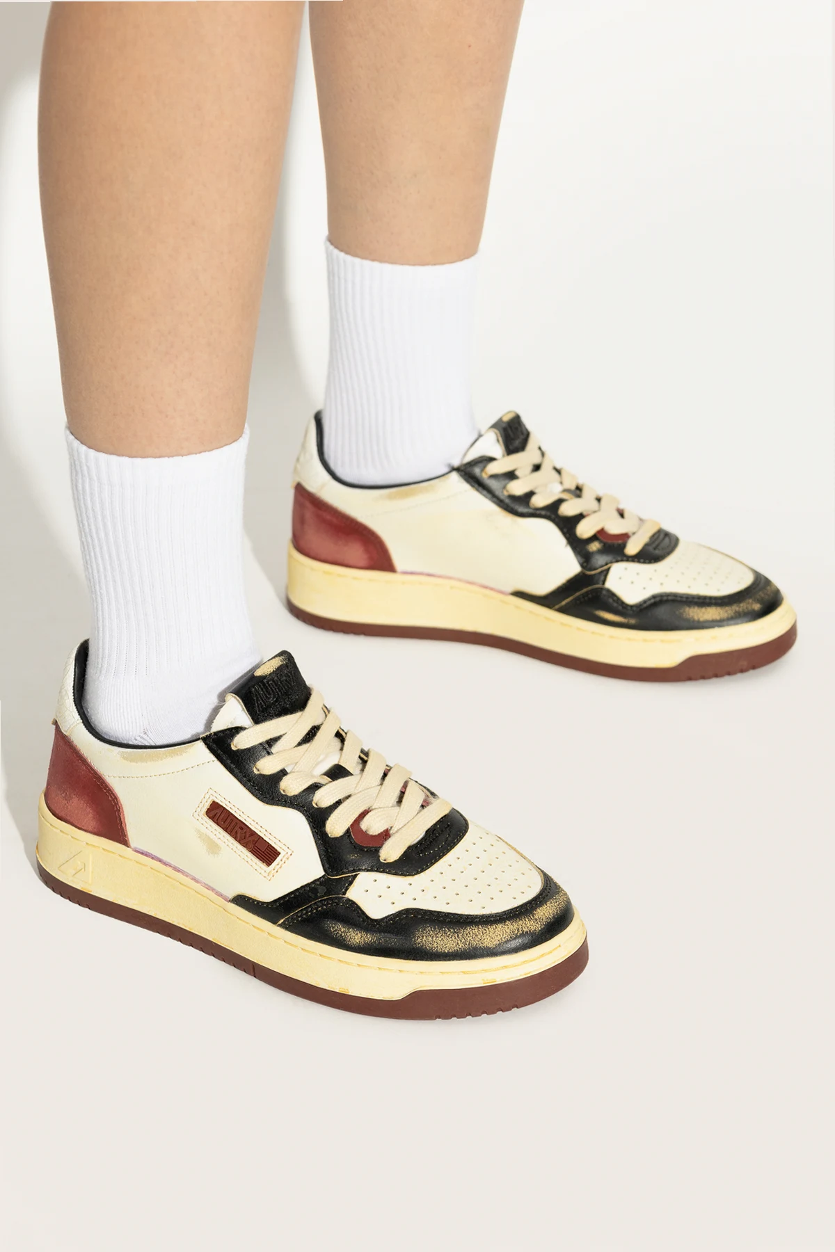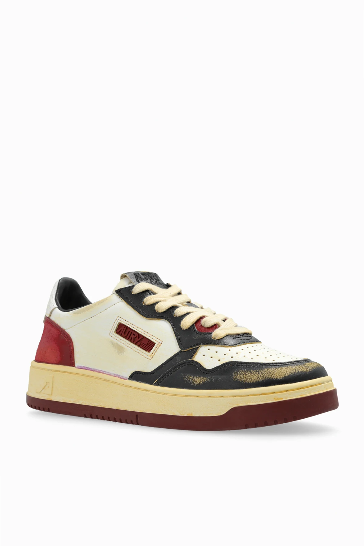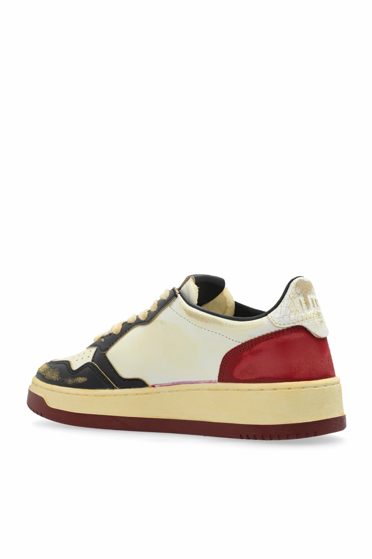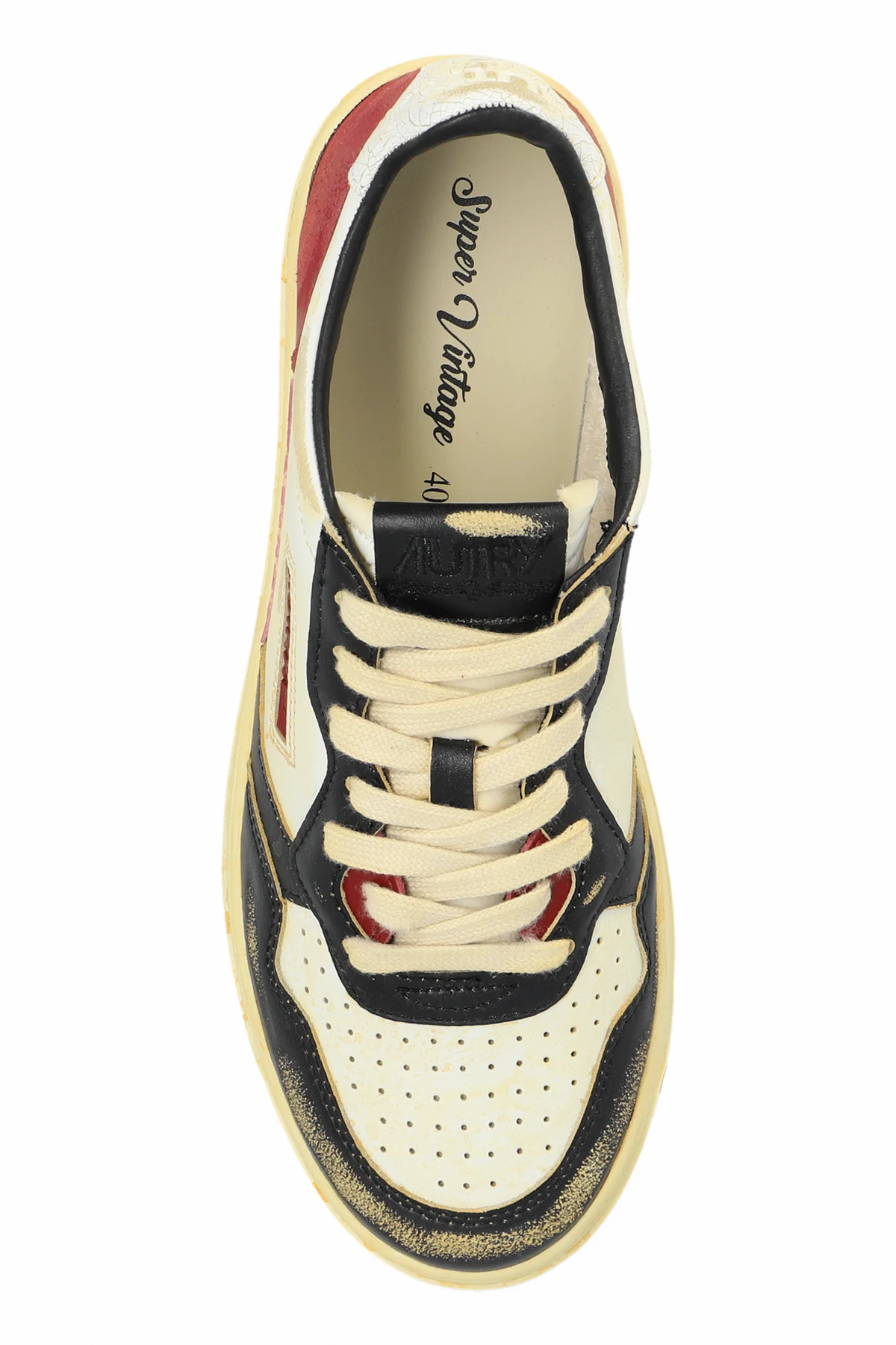 Introducing the exquisite Supvint Low sneakers from the illustrious fashion house Autry. These sneakers epitomize the perfect amalgamation of retro charm and contemporary elegance, meticulously crafted for the discerning modern woman. The Supvint Low sneakers boast a classic low-profile design, reminiscent of vintage athletic footwear. Externally, they feature a luxurious combination of premium leather and sumptuous suede, enveloped in a sophisticated cream hue, complemented by striking black accents and vibrant red detailing on the heel and sides. The thoughtfully perforated panels on the front enhance ventilation, ensuring comfort during wear. Signature touches include a designer logo patch on the side and a metallic inscription on the heel, with the inner lining proudly showcasing the phrase "Super Vintage." These sneakers are anchored by a distinctive dual-color sole, predominantly beige with a red-treaded bottom, and are secured with traditional cream laces. The retro aesthetic is further accentuated by their design, which pays homage to iconic sneaker styles of the 80s and 90s. Why Choose This Product? Timeless retro design with modern comfort. Crafted from high-quality leather and suede. Unique color palette with cream, black, and red accents. Enhanced breathability with perforated panels. Exclusive branding details and vintage-inspired elements. Versatile for various casual and sporty occasions.