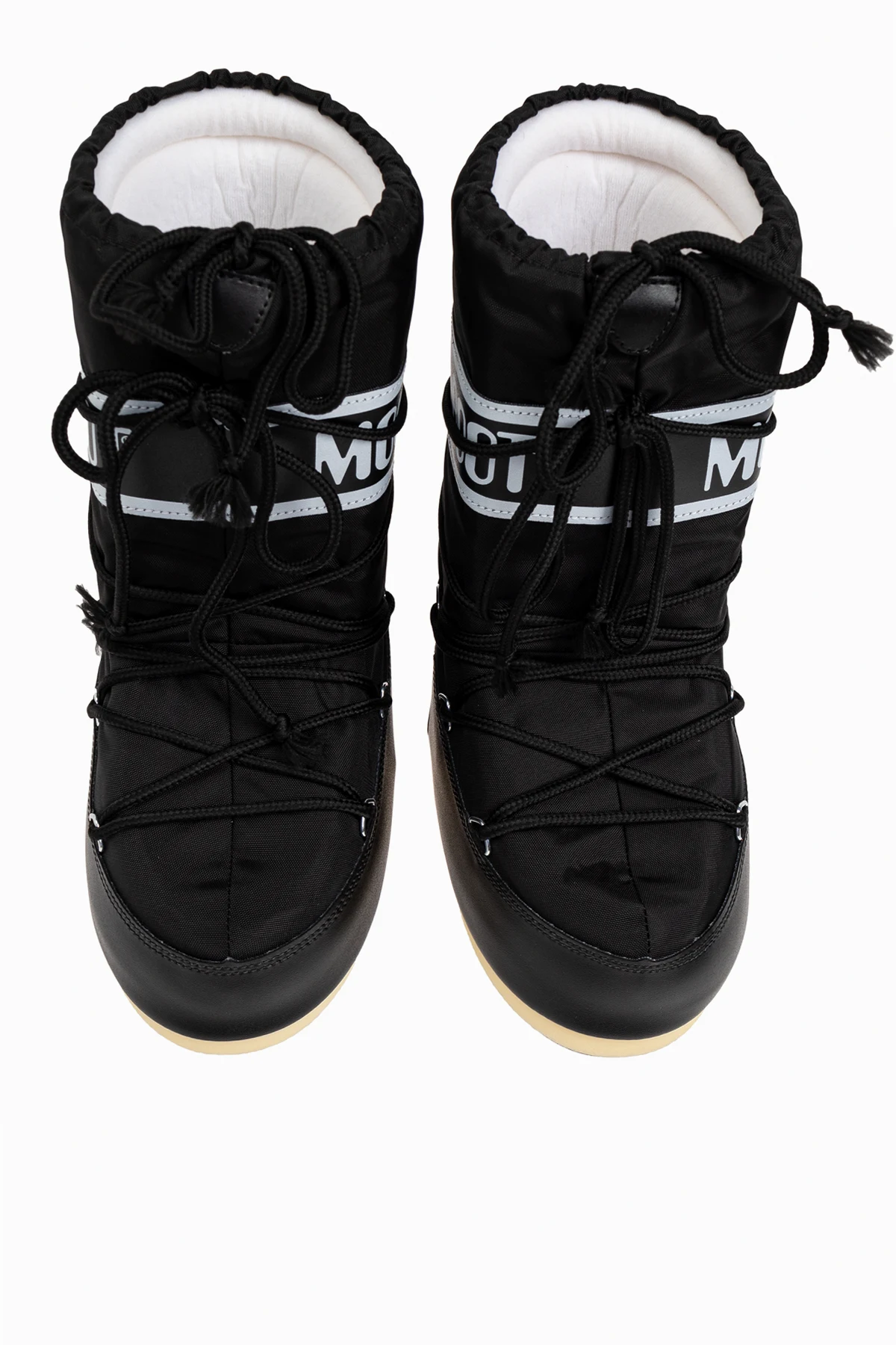 Introducing the Icon Nylon Snow Boots by the illustrious Moon Boot Kids collection. These black snow boots epitomize both style and functionality, making them the quintessential choice for your child's winter wardrobe. The high-cut design, extending above the ankle, offers exceptional protection against snow, while the robust construction, enhanced with prominent lacing, ensures a secure fit. Crafted from moisture-resistant nylon, these boots are designed to withstand the elements. The toe area and the section around the ankle are reinforced with a durable synthetic material, providing added resistance to wear and tear. A striking feature is the wide strap around the ankle, emblazoned with the "MOON BOOT" logo in contrasting white. This is complemented by additional white detailing, including vertical lines and the "MOON BOOT" inscription on the lower back of the boot, adding a touch of elegance and brand distinction. Inside, the boots are lined with a plush, white material that offers superior comfort and thermal insulation. The thick rubber sole ensures excellent grip on slippery surfaces, making these boots not only stylish but also highly practical. Why Choose This Product? High-cut design for superior snow protection Moisture-resistant nylon construction Durable synthetic reinforcements Comfortable, insulated interior lining Thick rubber sole for enhanced traction Iconic "MOON BOOT" branding and stylish detailing