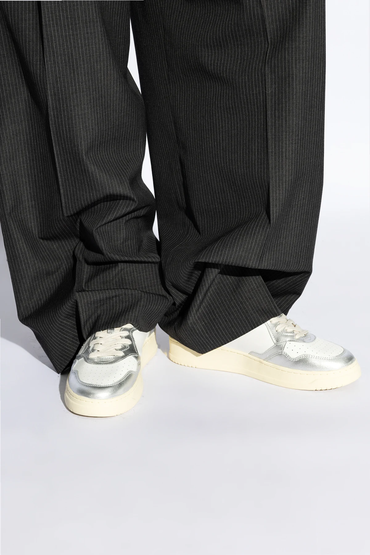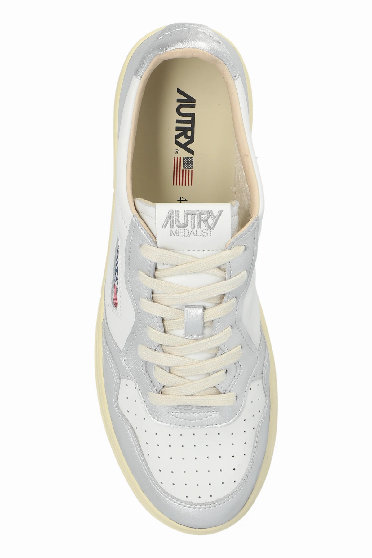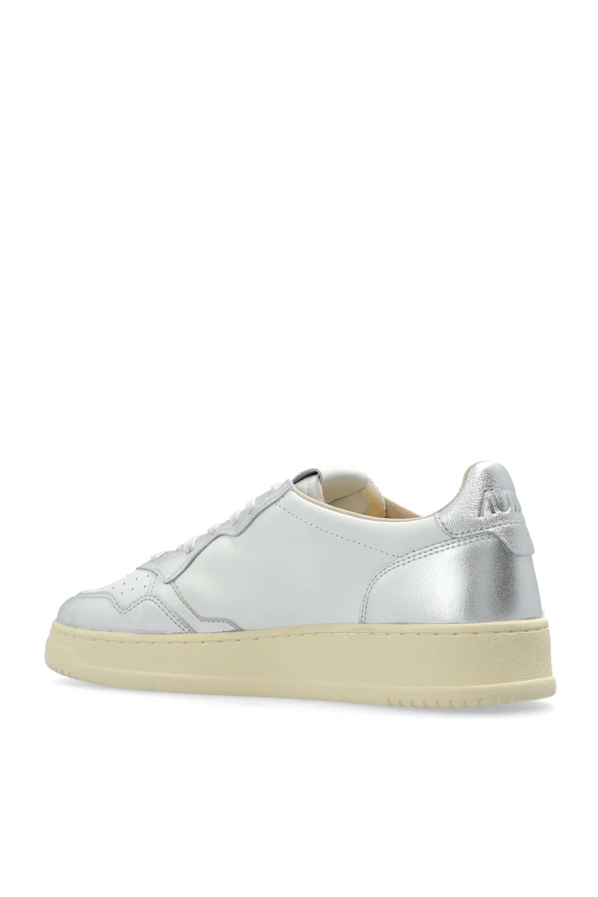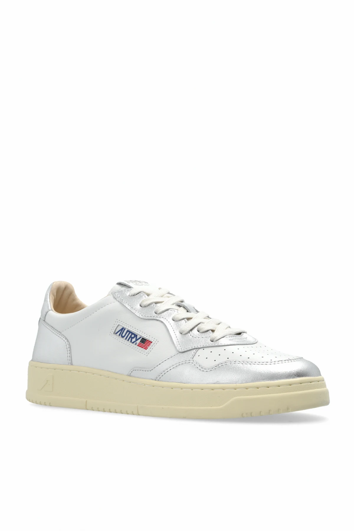 Introducing the Medalist Low sneakers by AUTRY, an epitome of elegance and functionality from our exclusive collection. These sneakers seamlessly blend classic design with contemporary flair, making them an impeccable choice for casual ensembles. Crafted with meticulous attention to detail, the Medalist Low features a low-cut silhouette and a robust, cream-colored rubber sole that offers superior traction. The sleek silver upper, adorned with the iconic AUTRY logo and the American flag on the side, exudes an air of sophistication. The sneakers are made from premium leather, ensuring durability and a luxurious feel. The cream-colored laces complement the sole, while the AUTRY logo and "Medalist" inscription on the tongue add a touch of distinction. The back of the shoe is embossed with the AUTRY logo, enhancing its unique identity. Perforations on the front provide ventilation, ensuring comfort even during extended wear. The interior is finished with light-toned materials, reflecting a commitment to both detail and comfort. Why Choose This Product? Exclusive design with a sophisticated silver finish High-quality leather construction for longevity Durable cream-colored rubber sole with excellent grip Distinctive AUTRY branding and American flag detail Perforated front for enhanced breathability Comfortable interior lining in a light shade