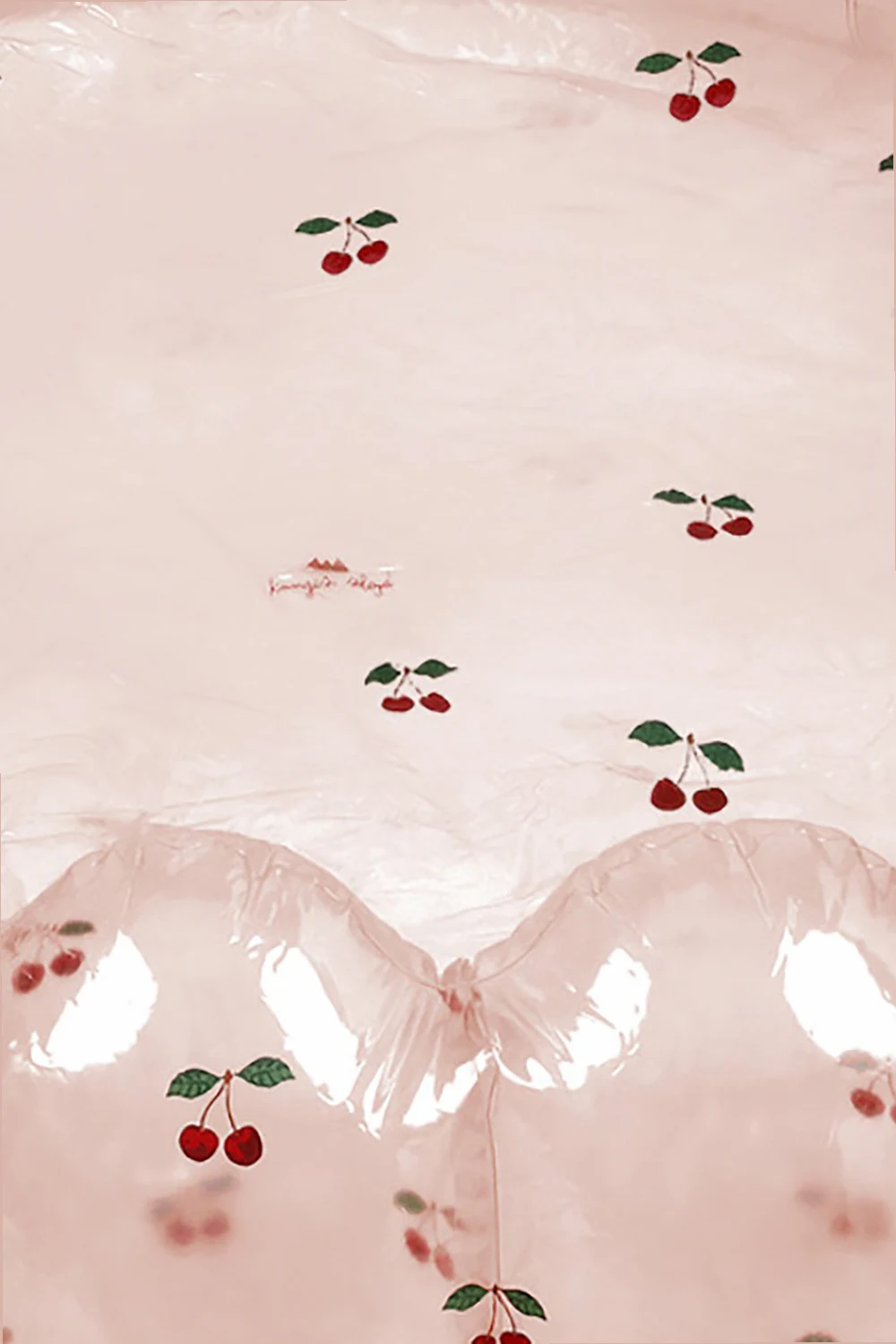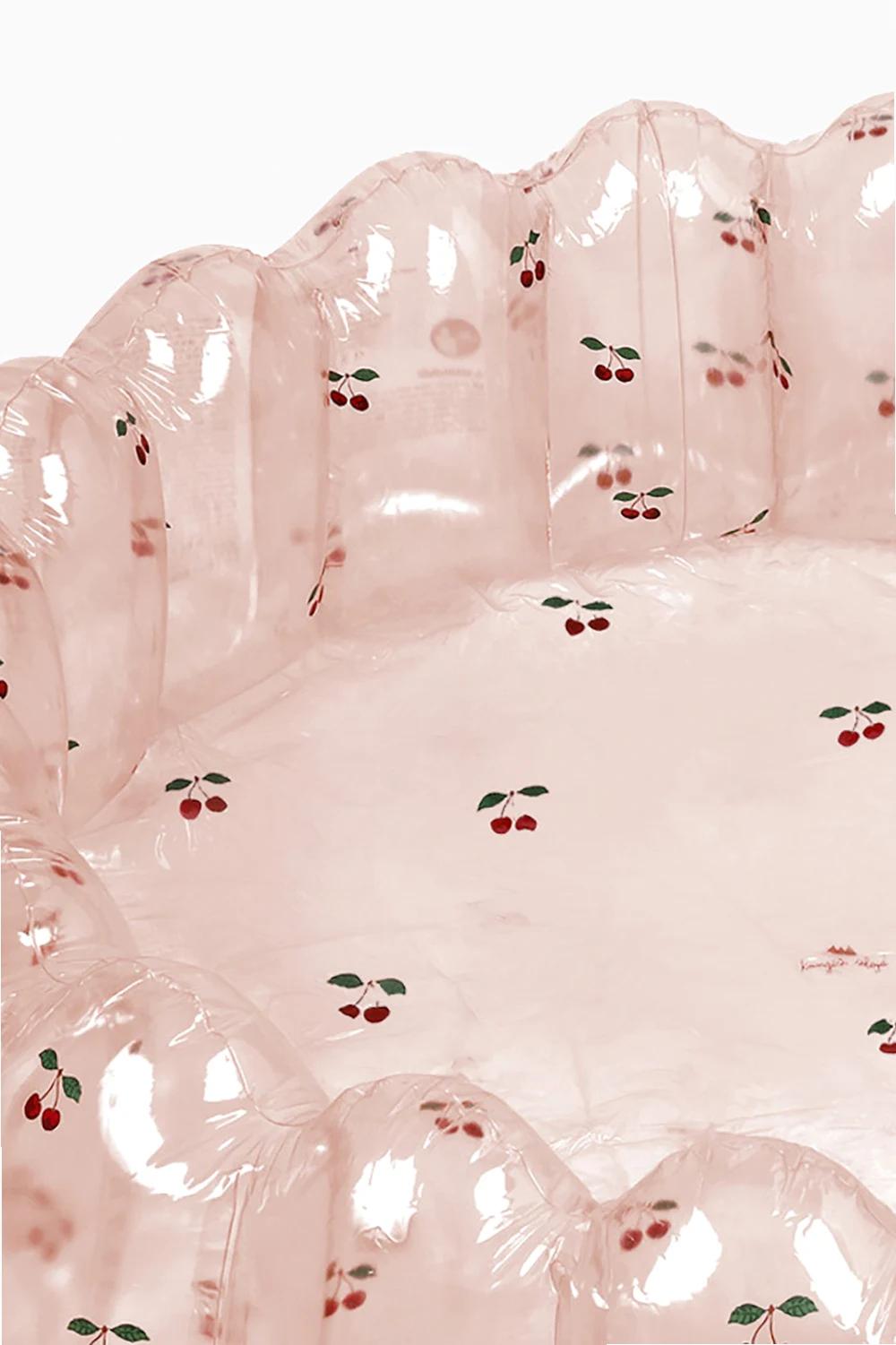 Large transparent inflatable pool from Konges Slojd. Made from durable PVC, this item is decorated with a cherry pattern. Water capacity at 80 percent filling: 403.2 liters
